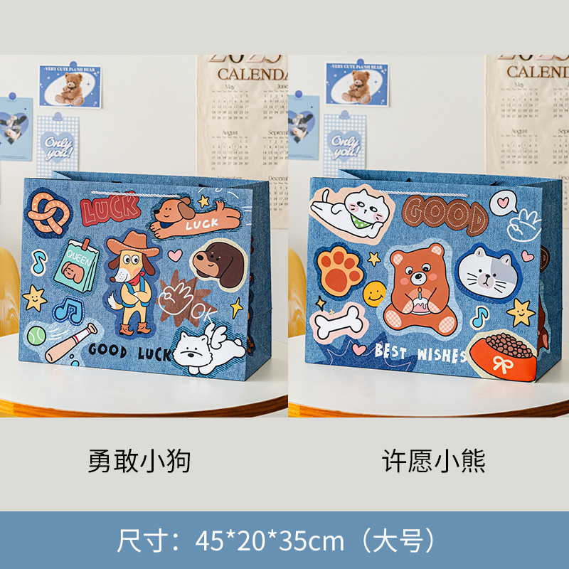 멋진 데님 선물 가방, 초대형 고가치 핸드백, 여학생 야외 휴대용 의류 포장 보관 가방스토어 가기