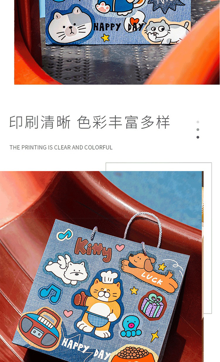 • Funny Cat/Wonderful Cat [소형], 흰색 판지, 가로 선물 가방
