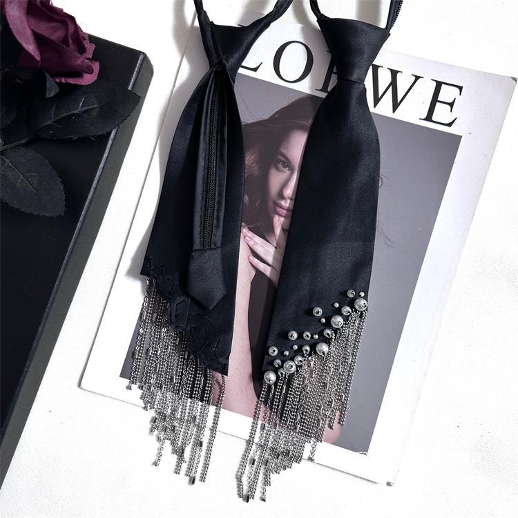 공장 직접 판매 매듭과 헤비 디자인 한국 스타일 진주 트렌디 셔츠 새로운 넥타이 여성 블랙스토어 가기