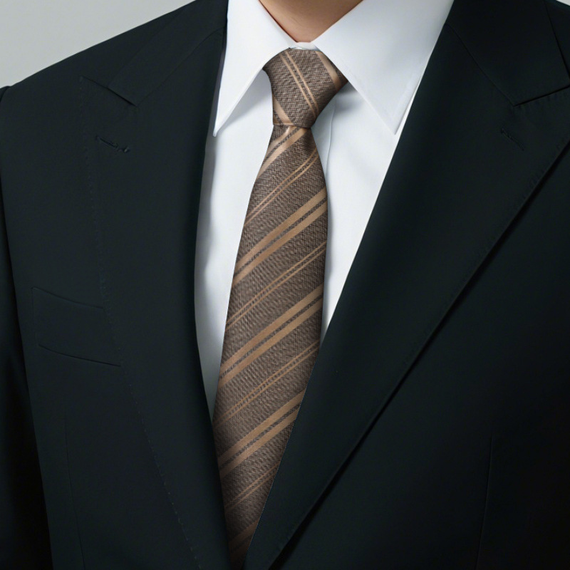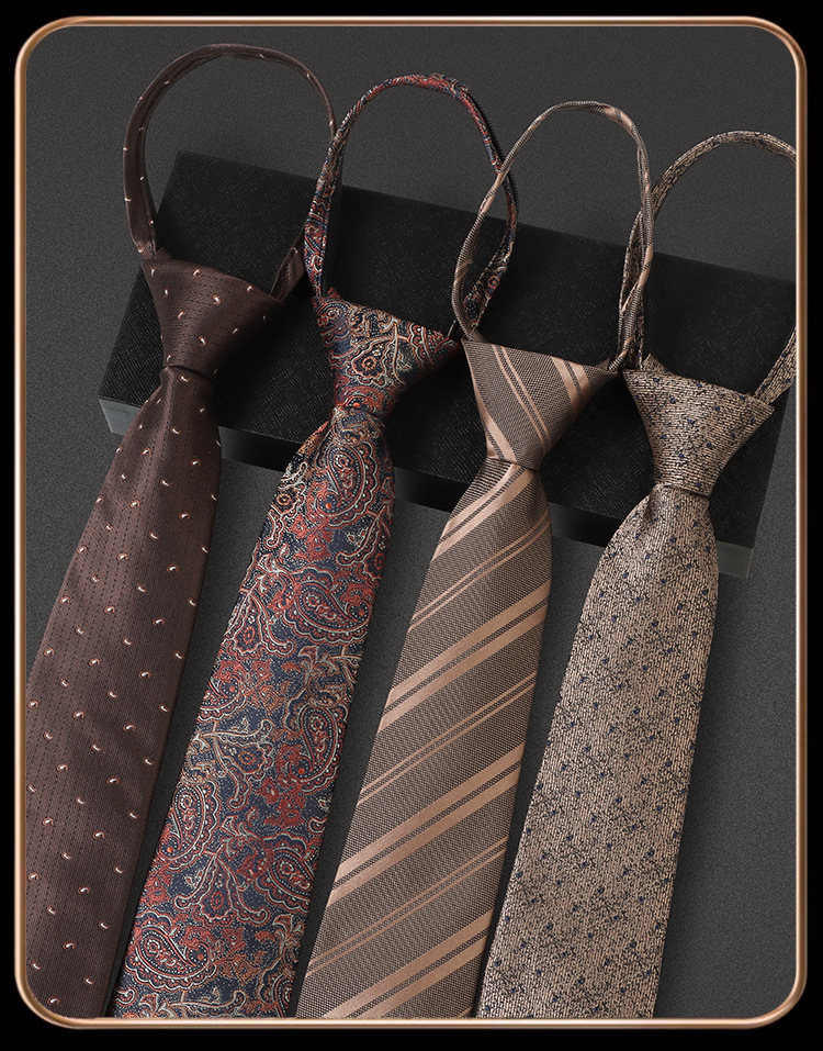 샴페인 컬러 넥타이 남성 커피 컬러 비즈니스 매듭없는 지퍼 스타일 복고풍 줄무늬 결혼식 신랑 손으로 묶인 게으른 갈색