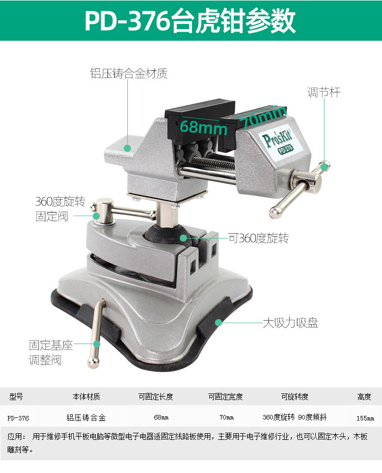 Baogong 바이스 소형 다기능 가정용 범용 흡착 바이스 테이블 바이스 미니 플랫 입 360도 PD-376