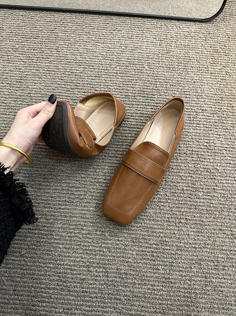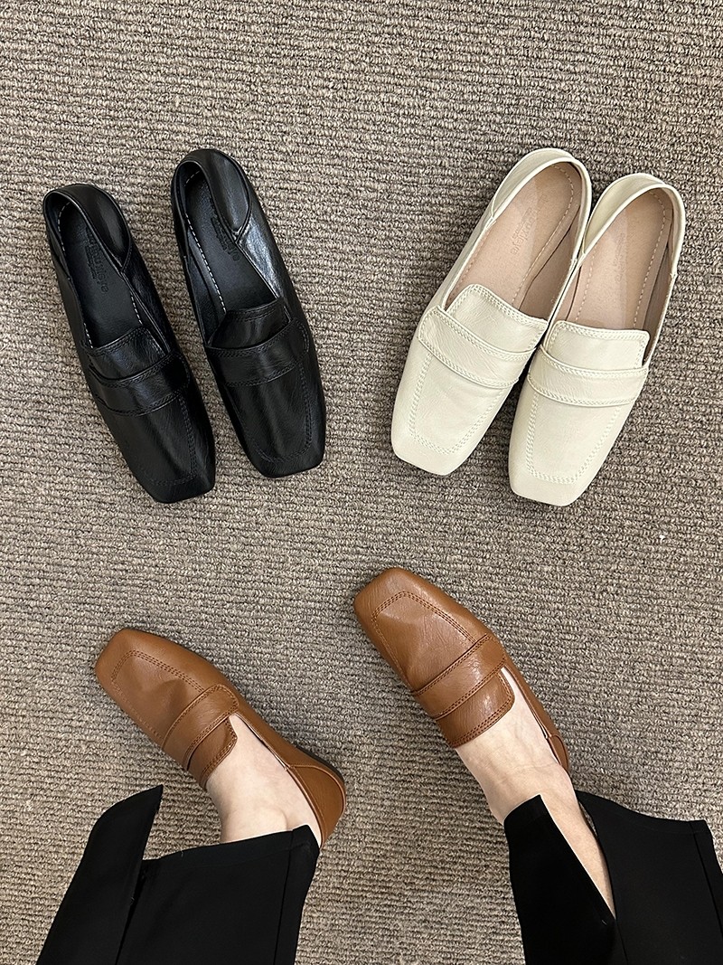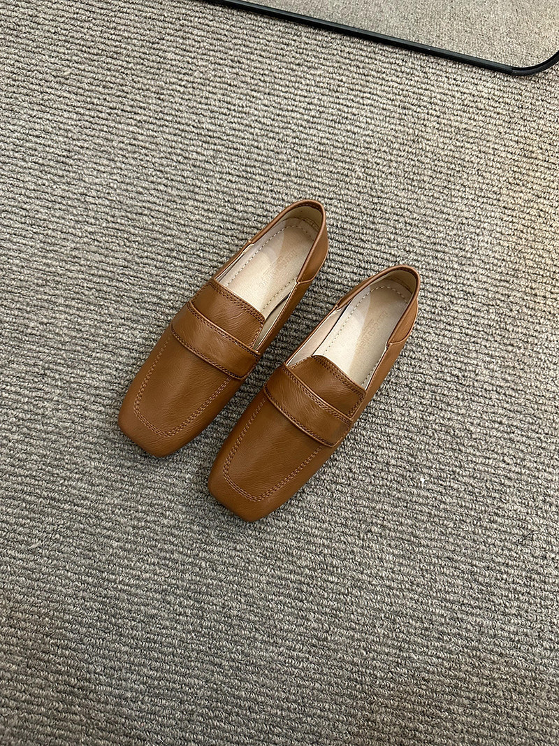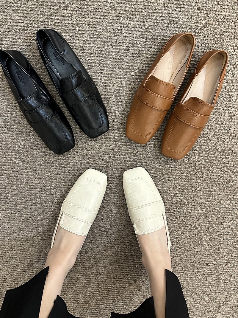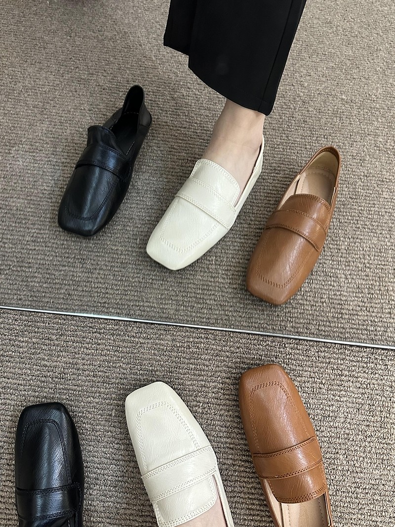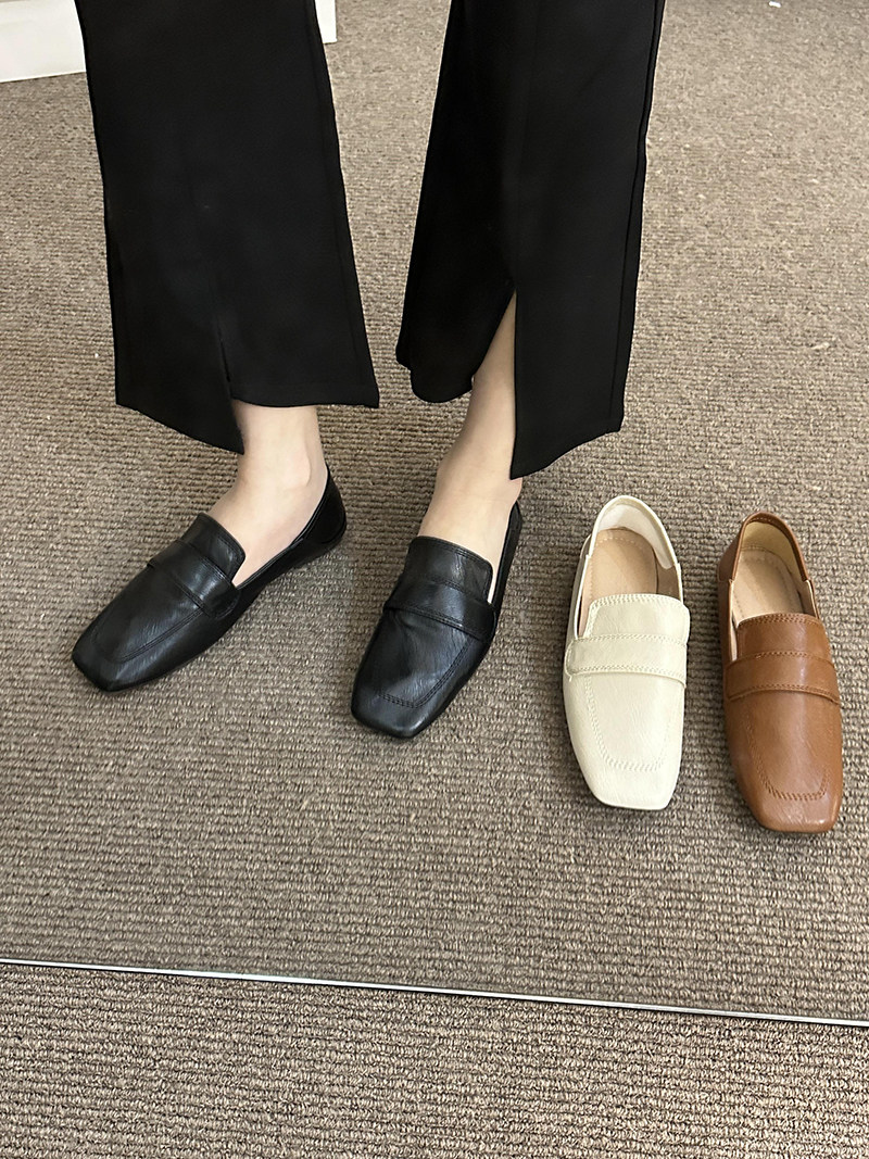 여성용 스퀘어토 비니슈즈, 프렌치 레트로 젠틀 플랫 캐주얼 슈즈, 부드러운 가죽, 부드러운 밑창, 슬립온 로퍼, 스몰 가죽슈즈스토어 가기