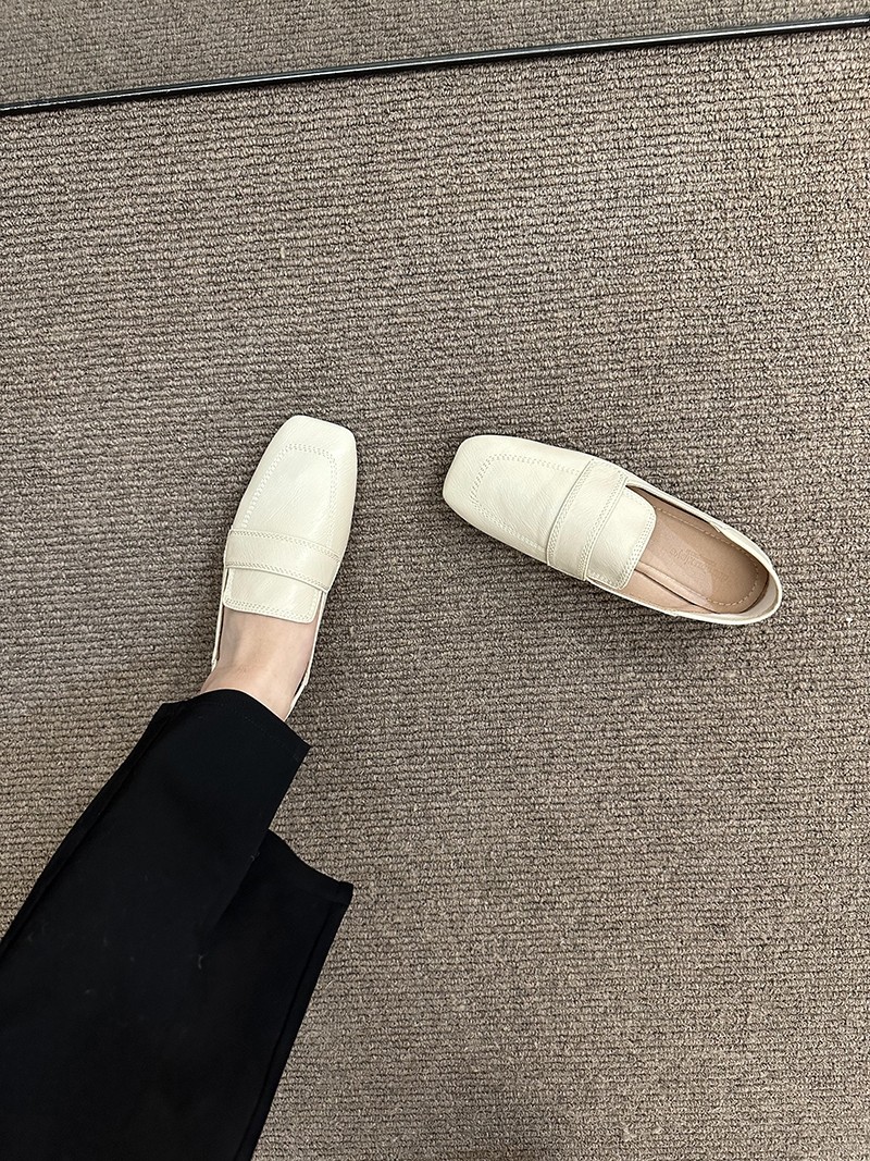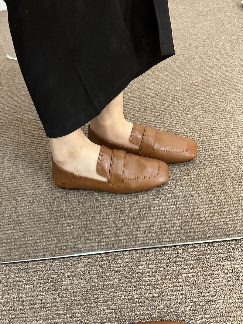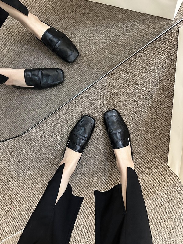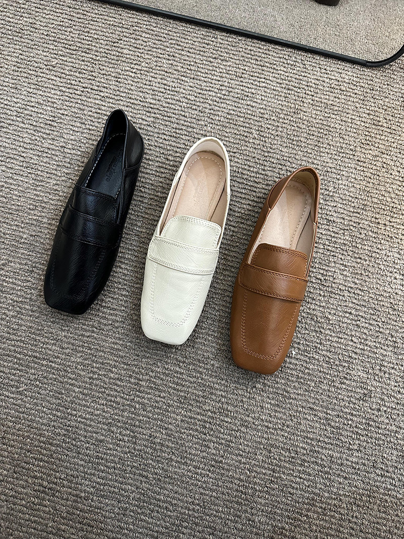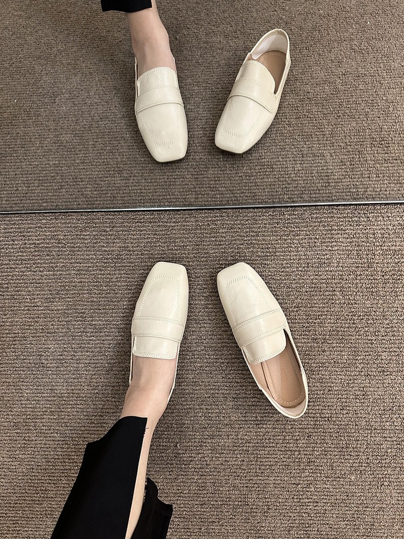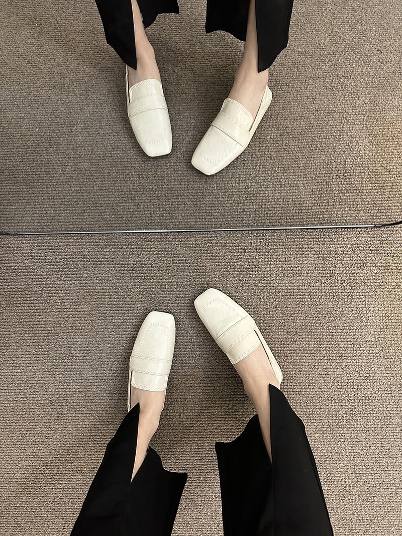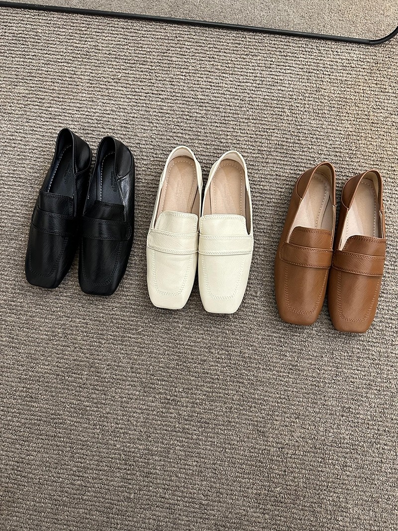 여성용 스퀘어토 비니슈즈, 프렌치 레트로 젠틀 플랫 캐주얼 슈즈, 부드러운 가죽, 부드러운 밑창, 슬립온 로퍼, 스몰 가죽슈즈스토어 가기
