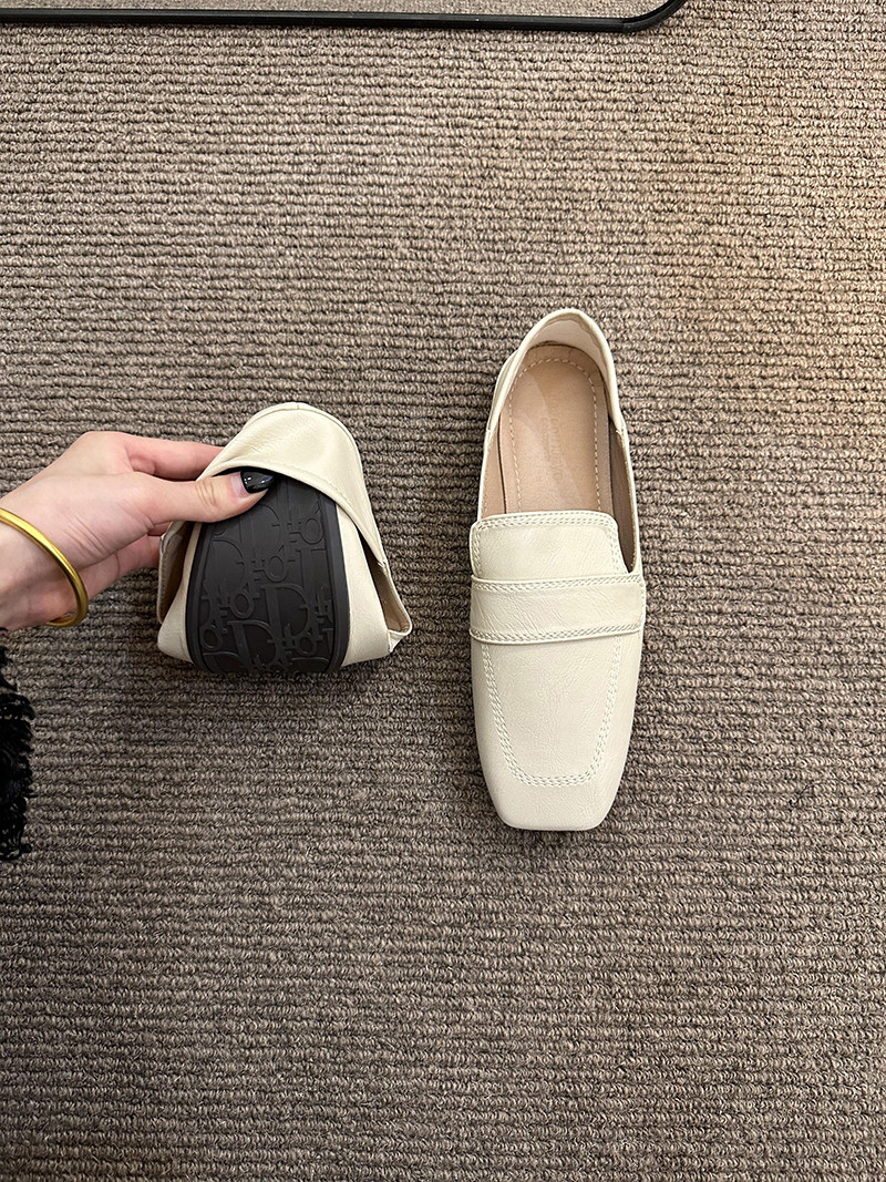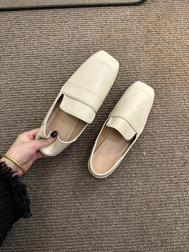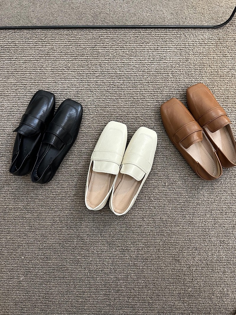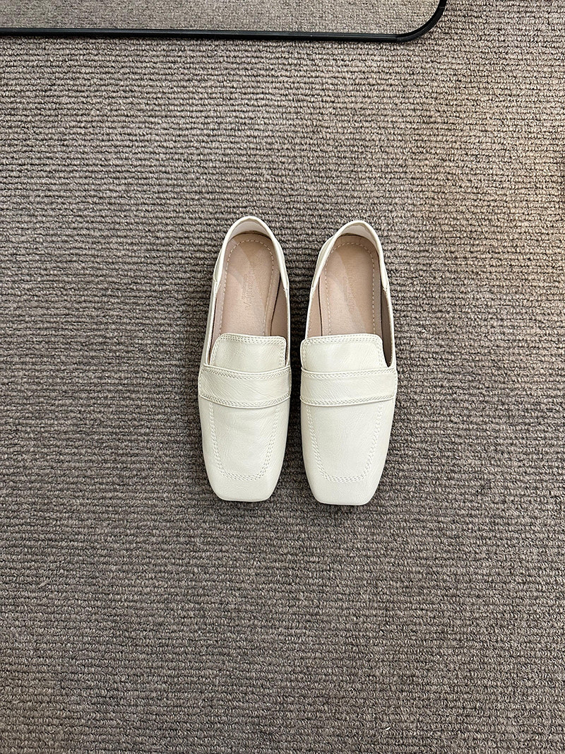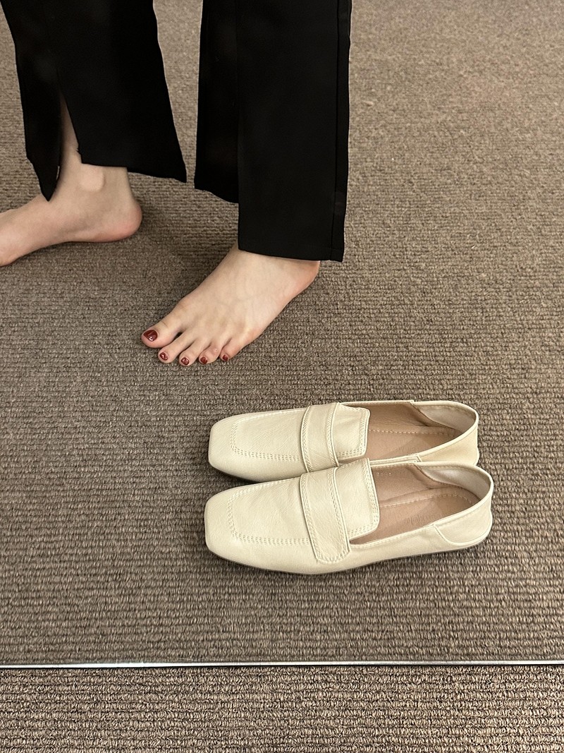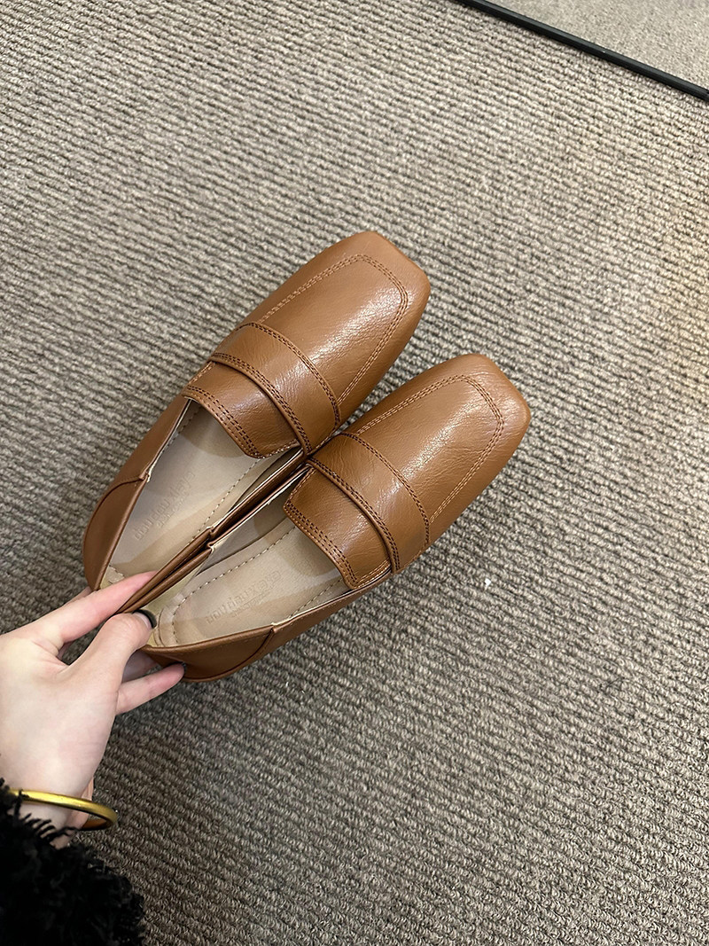 여성용 스퀘어토 비니슈즈, 프렌치 레트로 젠틀 플랫 캐주얼 슈즈, 부드러운 가죽, 부드러운 밑창, 슬립온 로퍼, 스몰 가죽슈즈스토어 가기