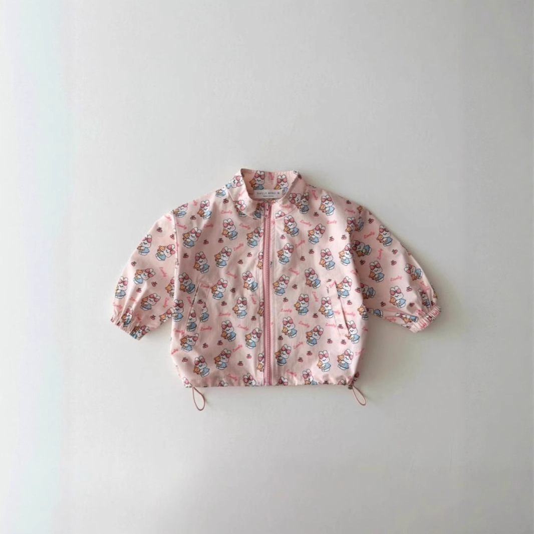 한국어 버전 ins 봄과 가을 다목적 패션 프린트 스탠드 칼라 방풍 재킷 드로스트링 재킷 귀여운 만화 지퍼 탑