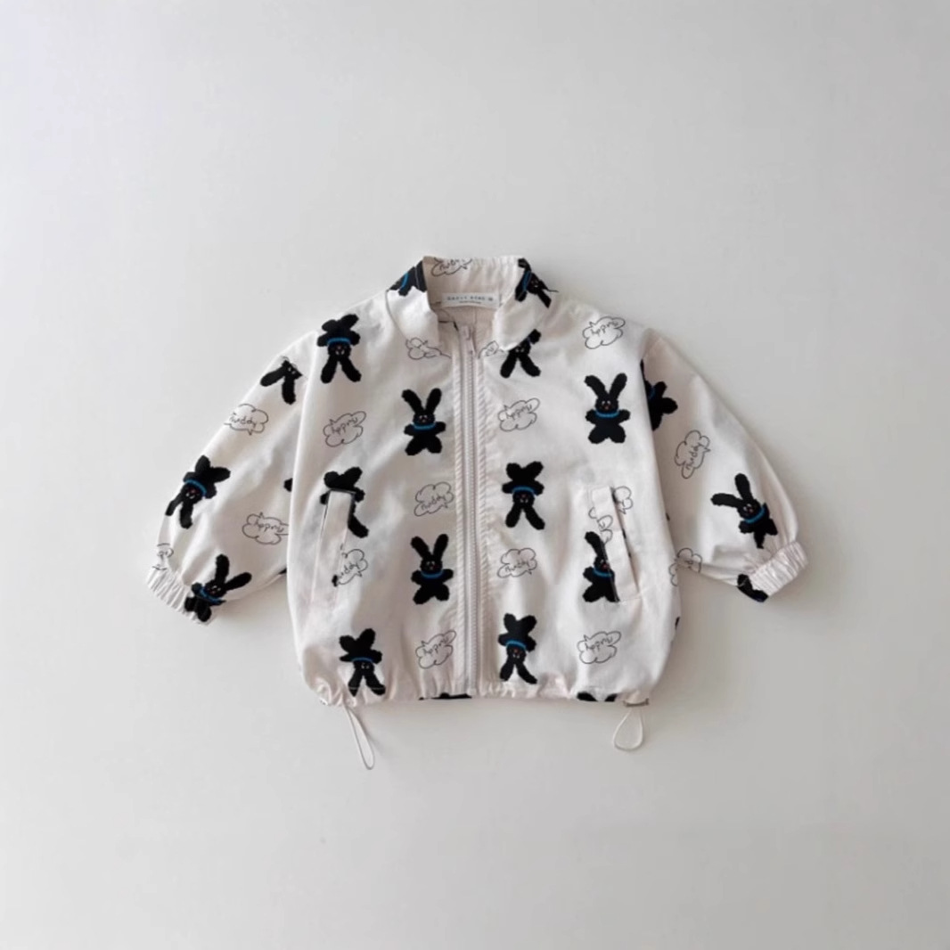 한국어 버전 ins 봄과 가을 다목적 패션 프린트 스탠드 칼라 방풍 재킷 드로스트링 재킷 귀여운 만화 지퍼 탑스토어 가기