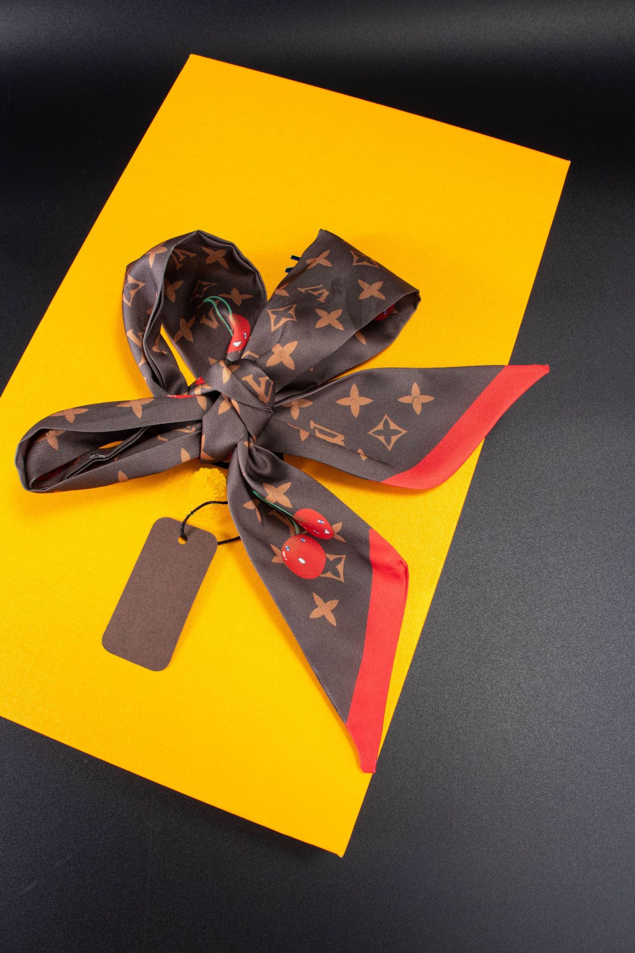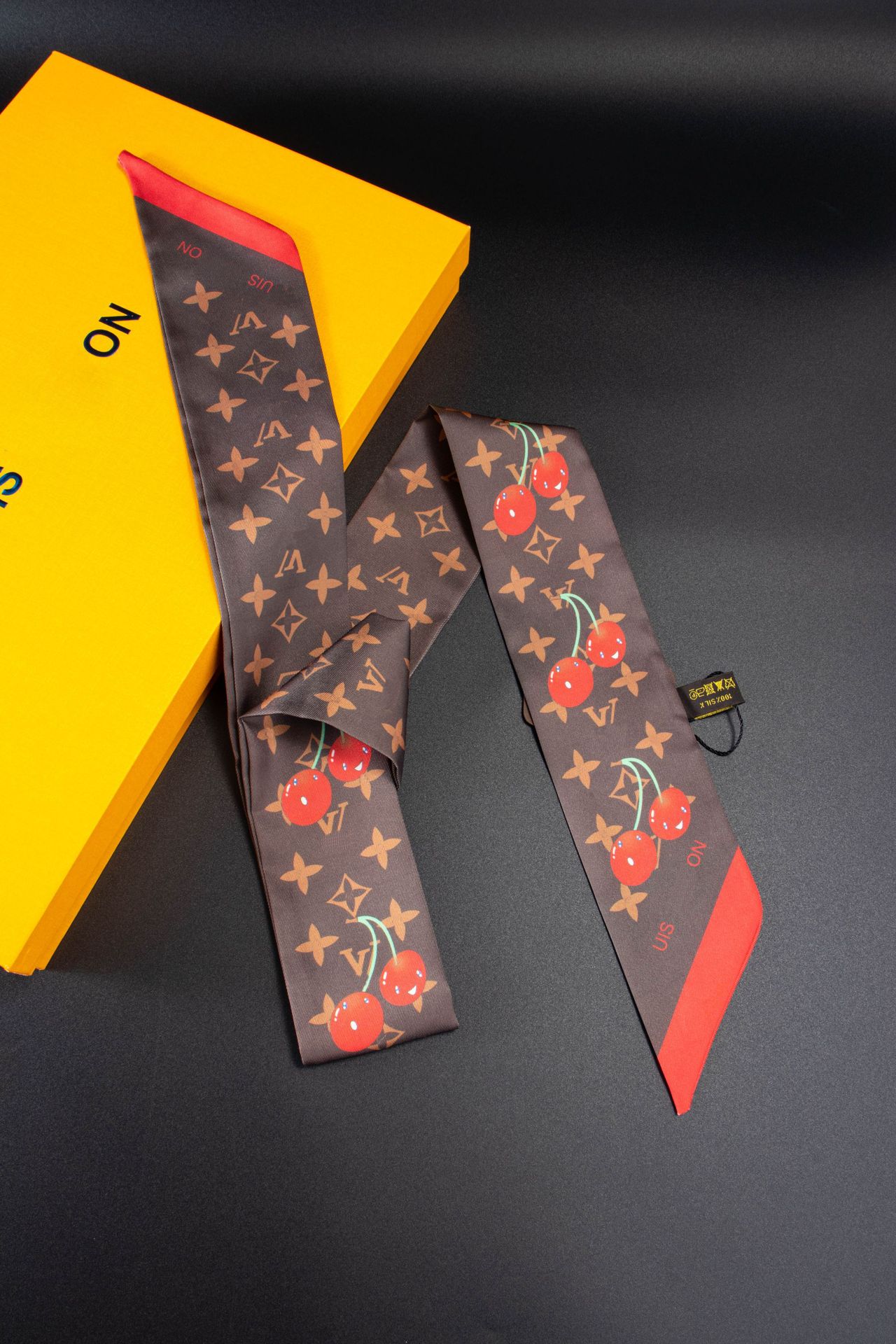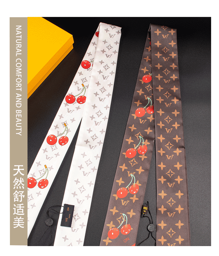 오우양나나와 같은 스타일의 체리 리본 머리띠, 작은 스카프, 가방 장식용 리본