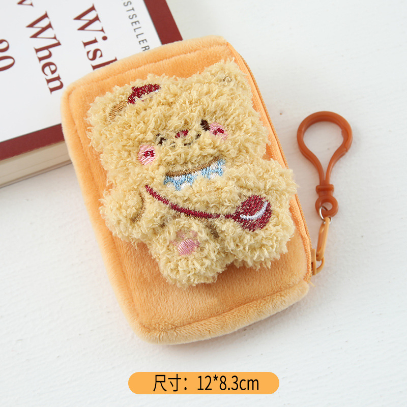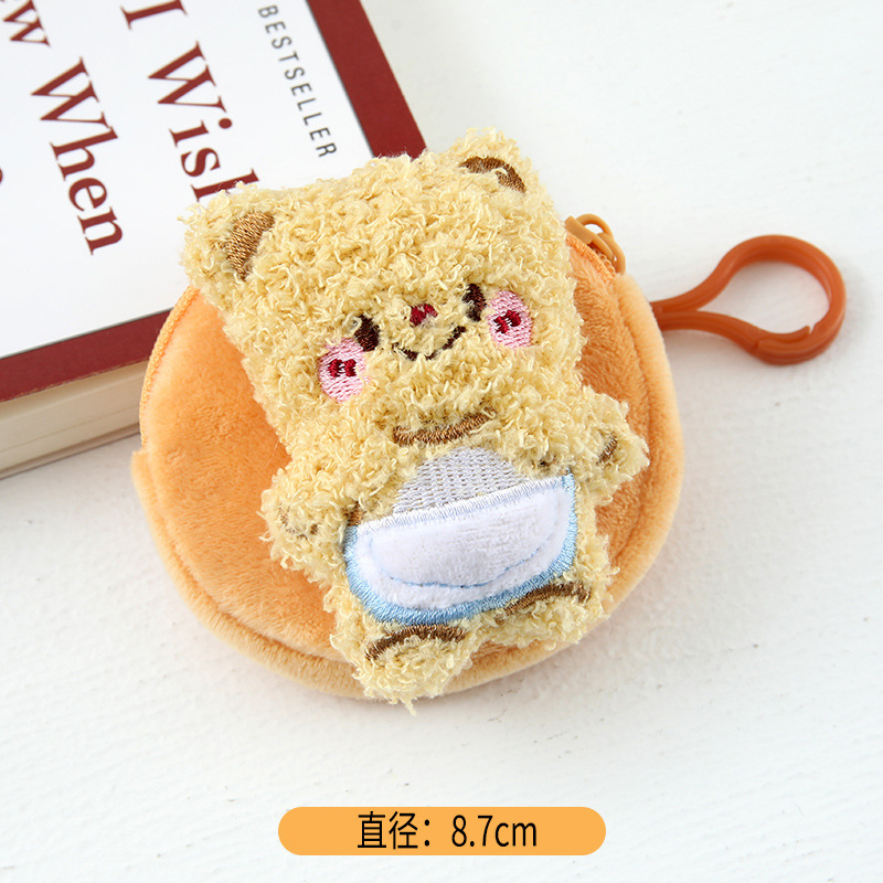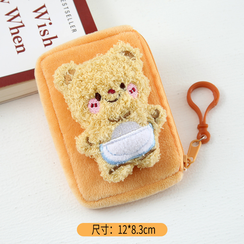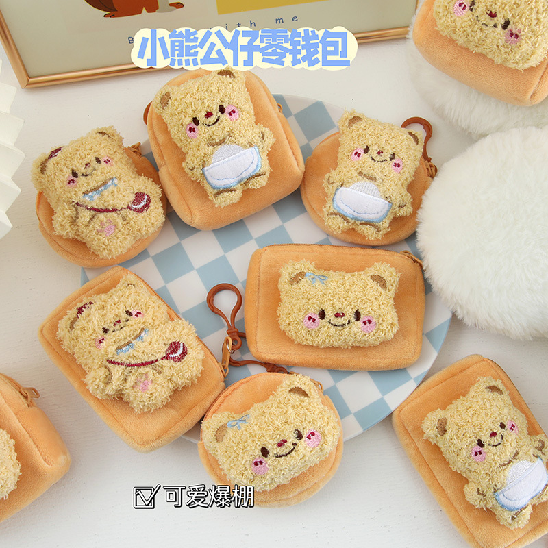 만화 귀여운 버터 곰 플러시 미니 동전 지갑 여자 학생 학교 가방 키 체인 휴대용 헤드폰 가방스토어 가기