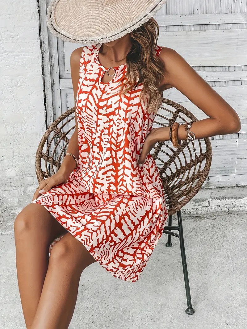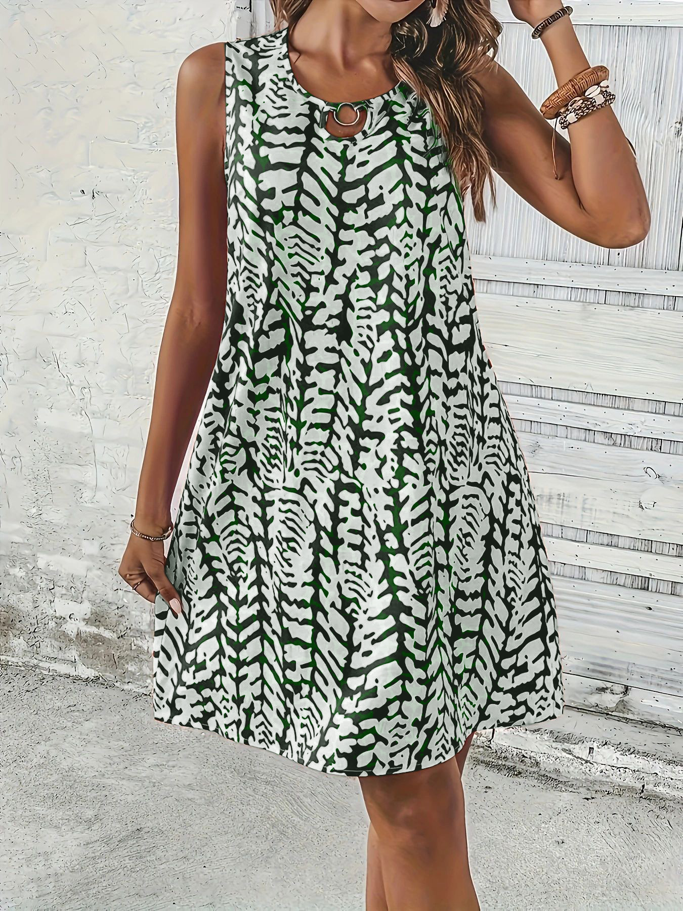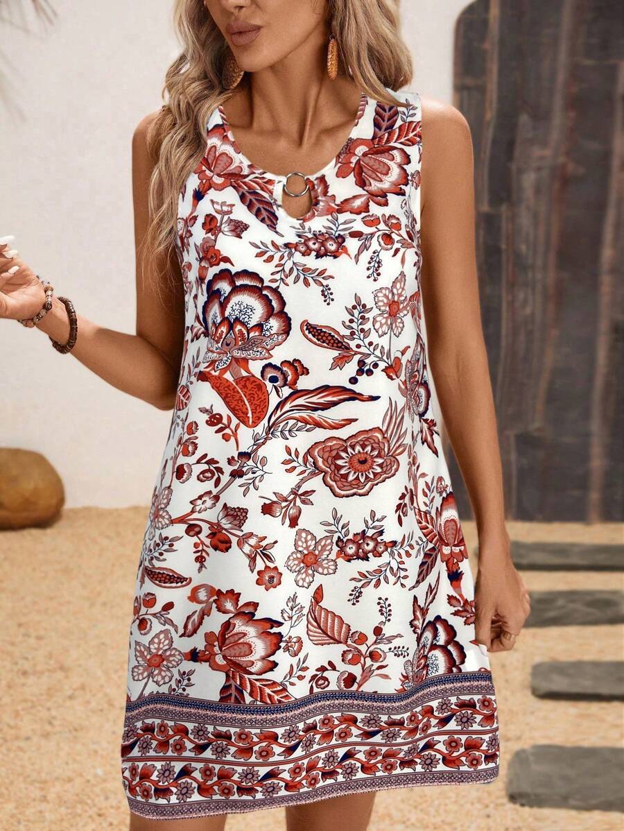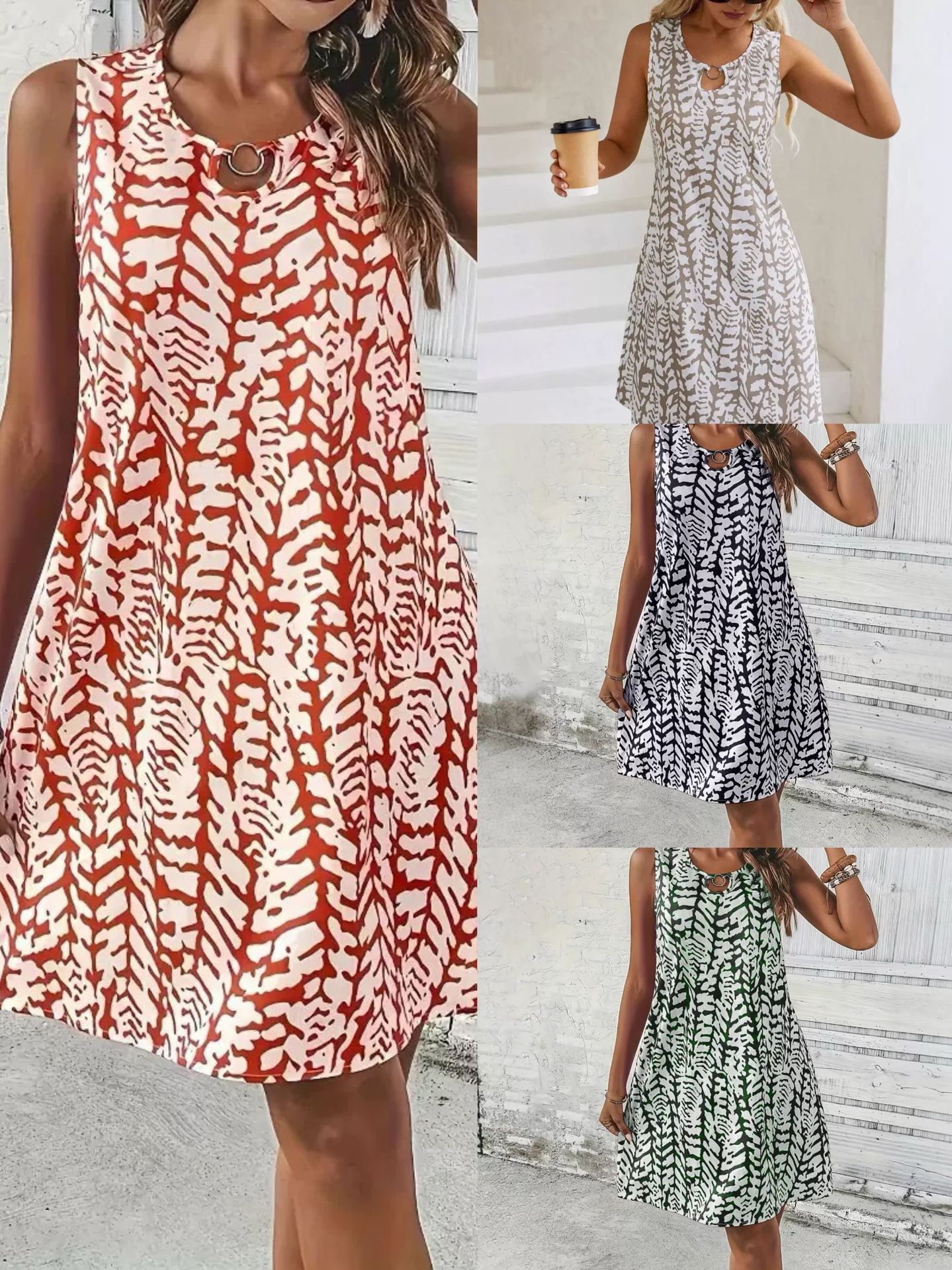 2025 유럽과 미국의 국경 간 새로운 스타일의 프린트 링 민소매 스커트 휴가 캐주얼 다목적 패션 드레스 여성 의류