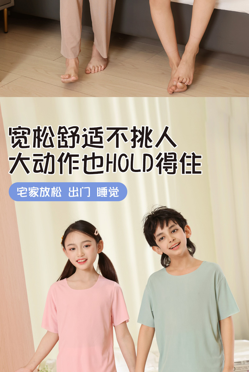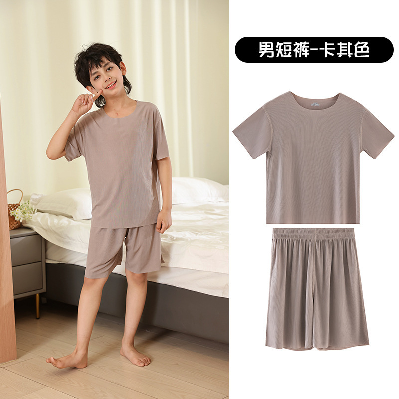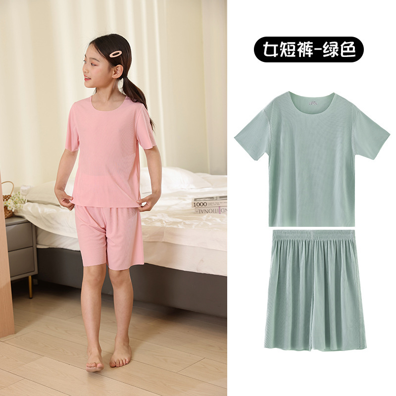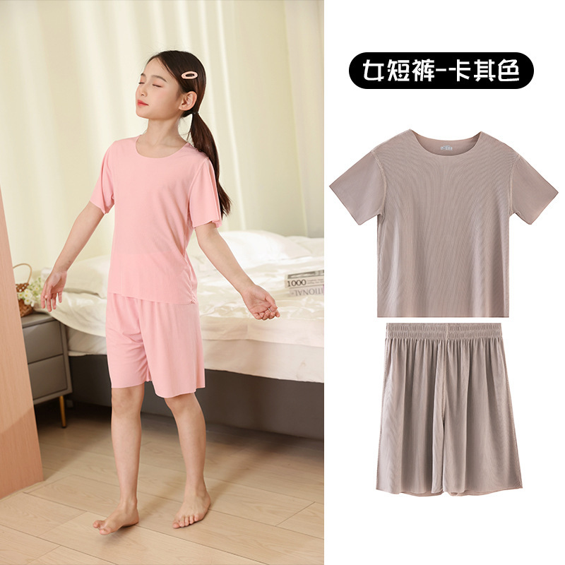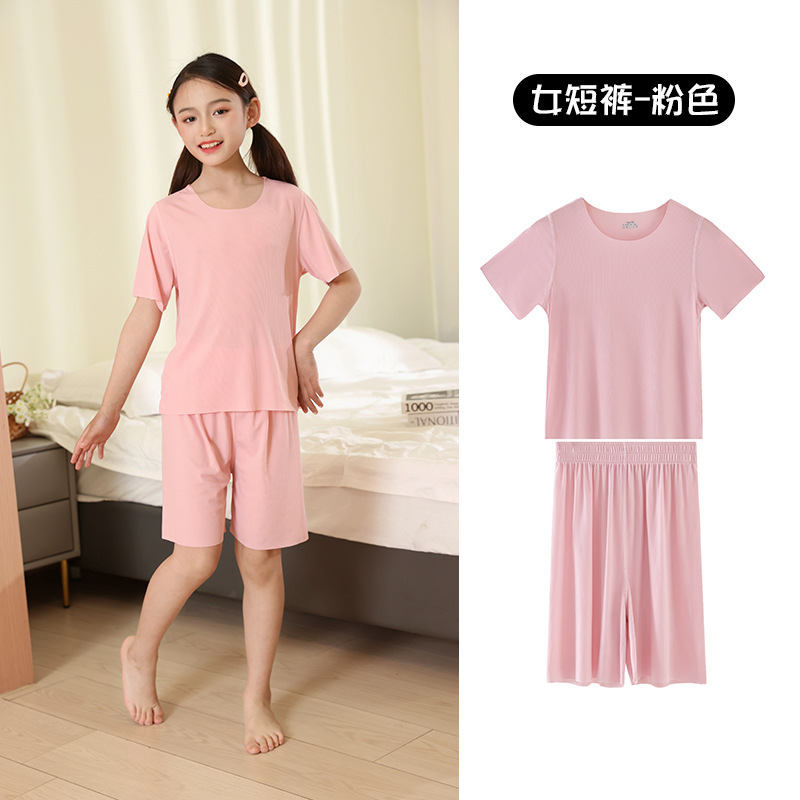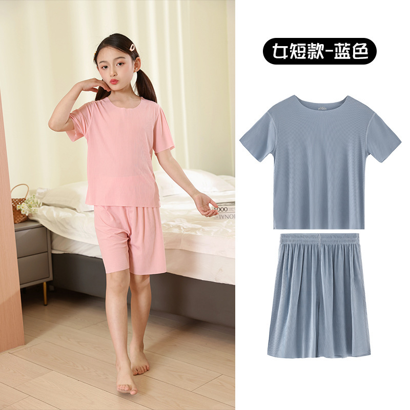 소년과 소녀 잠옷 여름 반팔 반바지 2025 어린이 새로운 얇은 학생 청소년 멋진 가정 의류 세트스토어 가기
