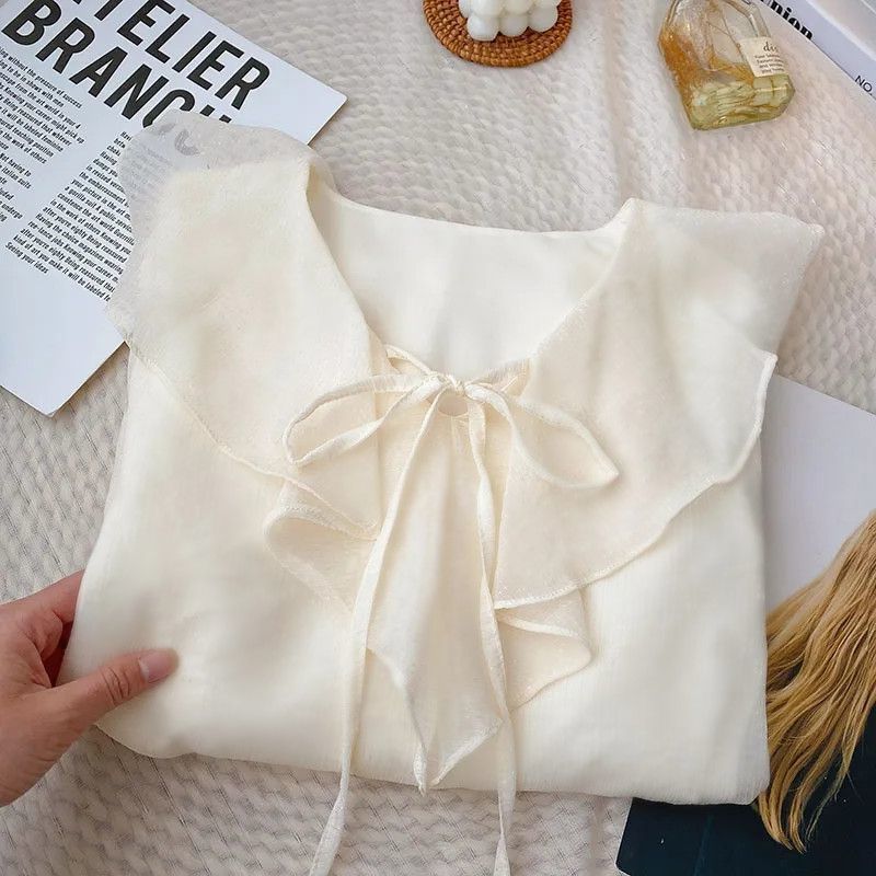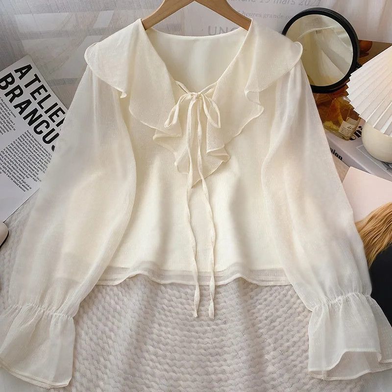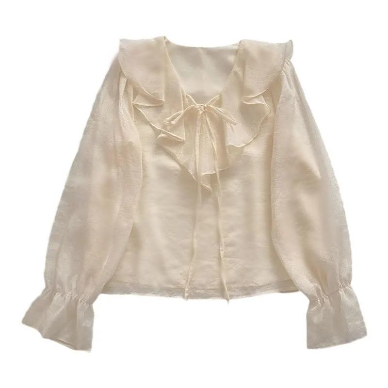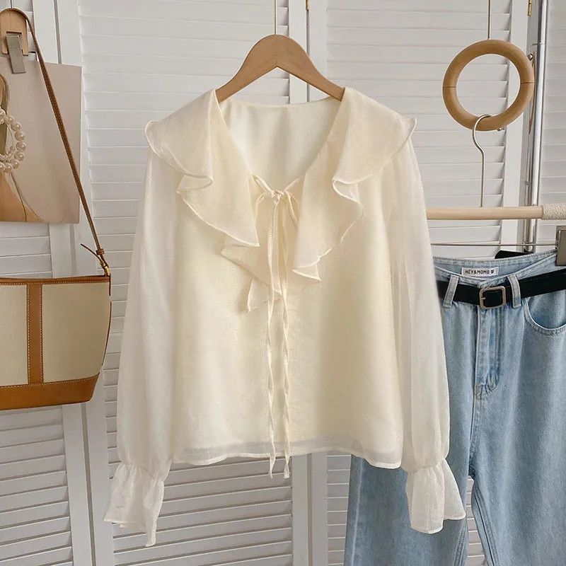 2025 봄 여름 새로운 스타일의 작은 디자인 틈새 셔츠 탑 여성 다재다능하고 부드럽고 달콤한 긴팔 셔츠