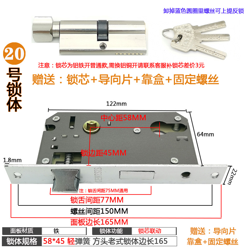 • 22 잠금 실린더 + 강철 5845 혀 77 리바운드 165-35-45MM-범용 유형-키 포함