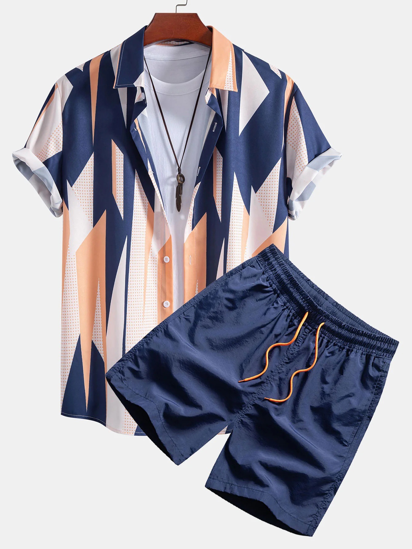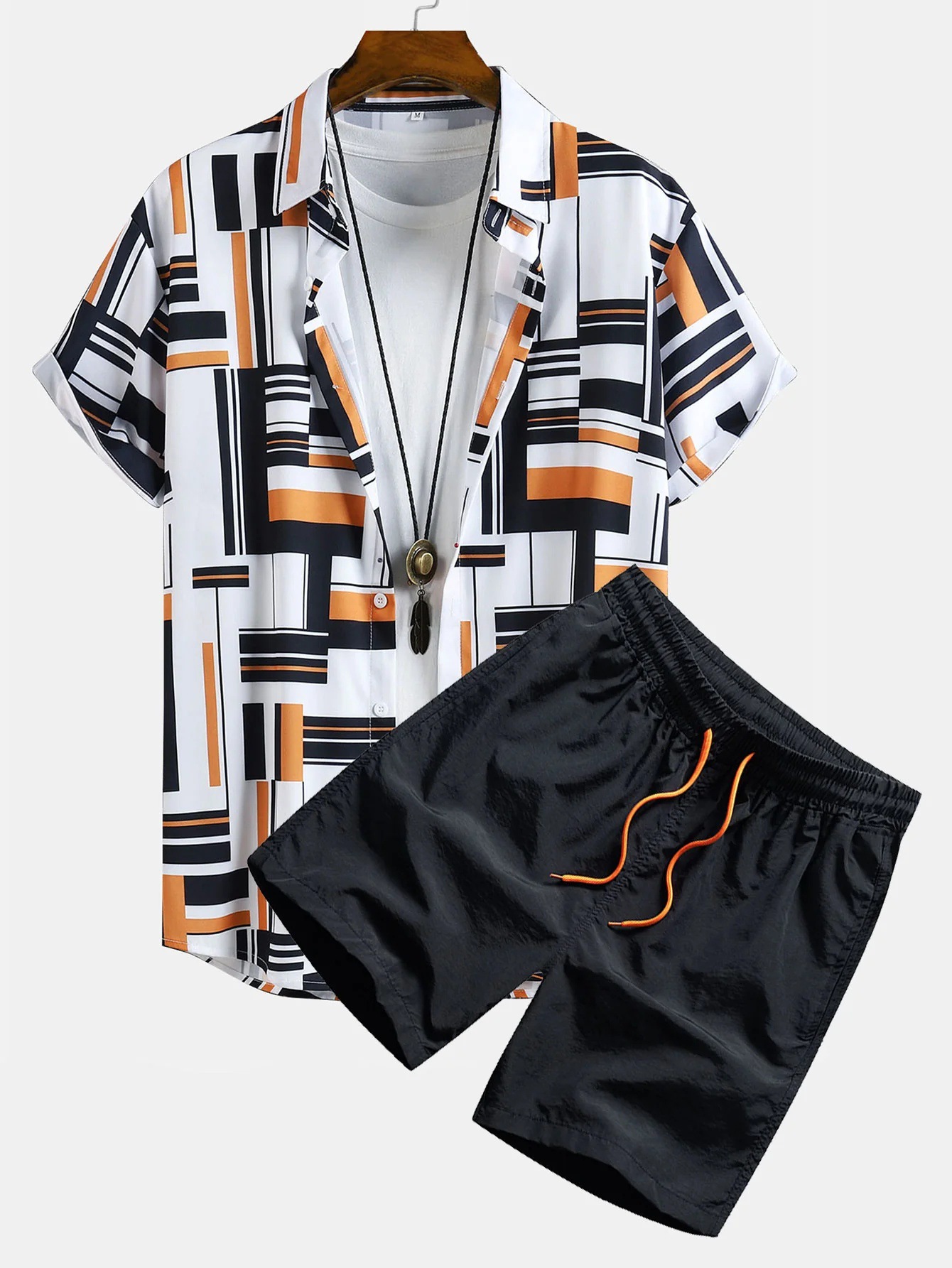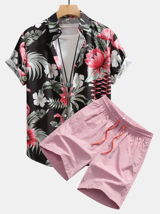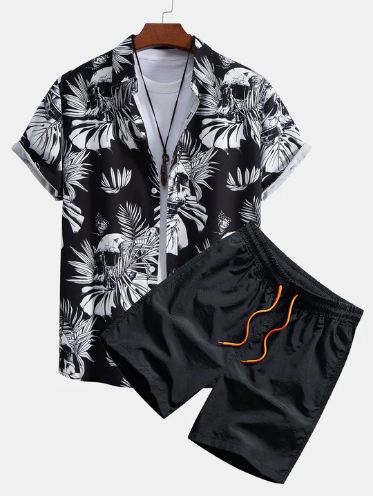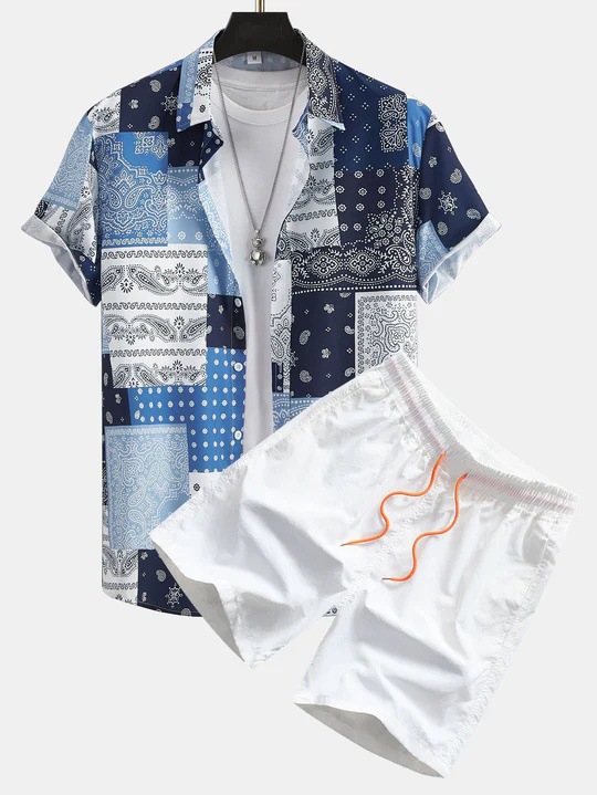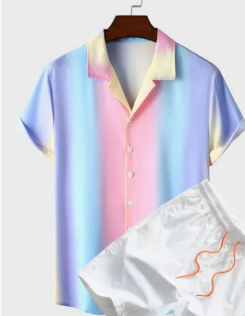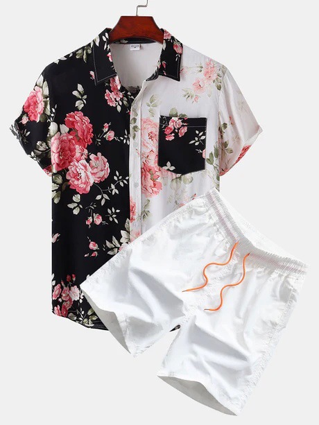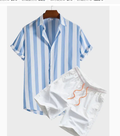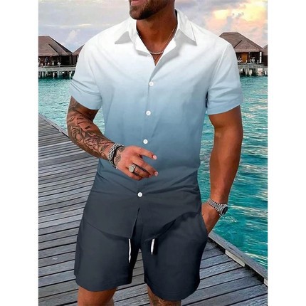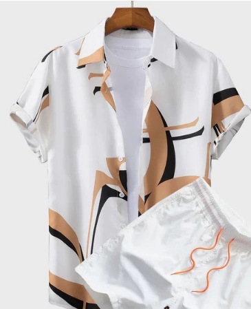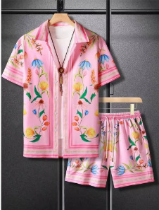 여름 3D 디지털 프린트 남성용 고급 통근 셔츠 자카드 반팔 비치 바지 공급 캐주얼 스포츠 슈트스토어 가기