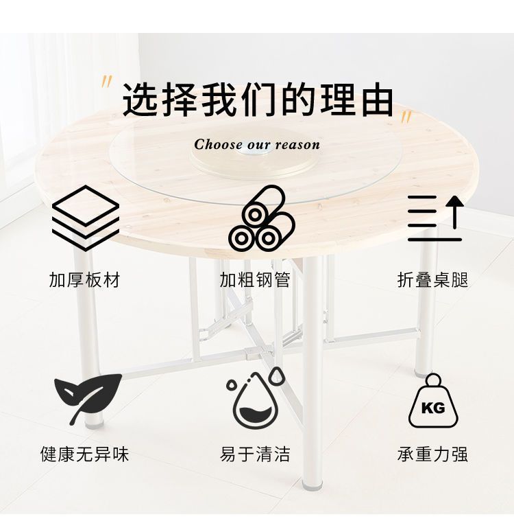 두꺼운 대형 원형 데스크탑 호텔 가정용 전나무 단단한 나무 식탁 원형 접이식 테이블 다리 20인 호텔 원형 테이블 패널스토어 가기