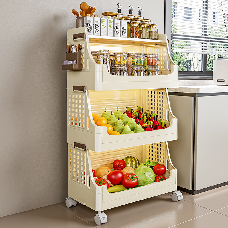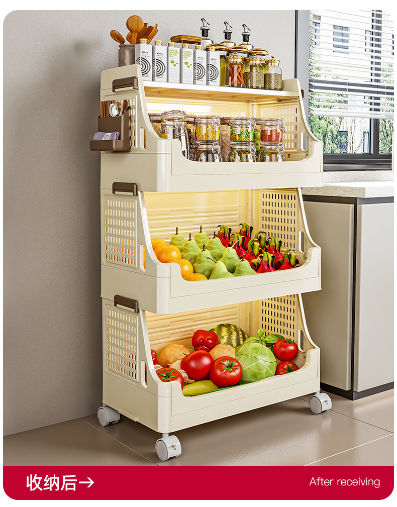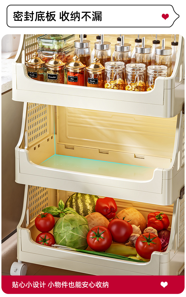 주방 랙 야채 조미료 병 가정용 바퀴 달린 접이식 대용량 다층 스토리지 랙 트롤리