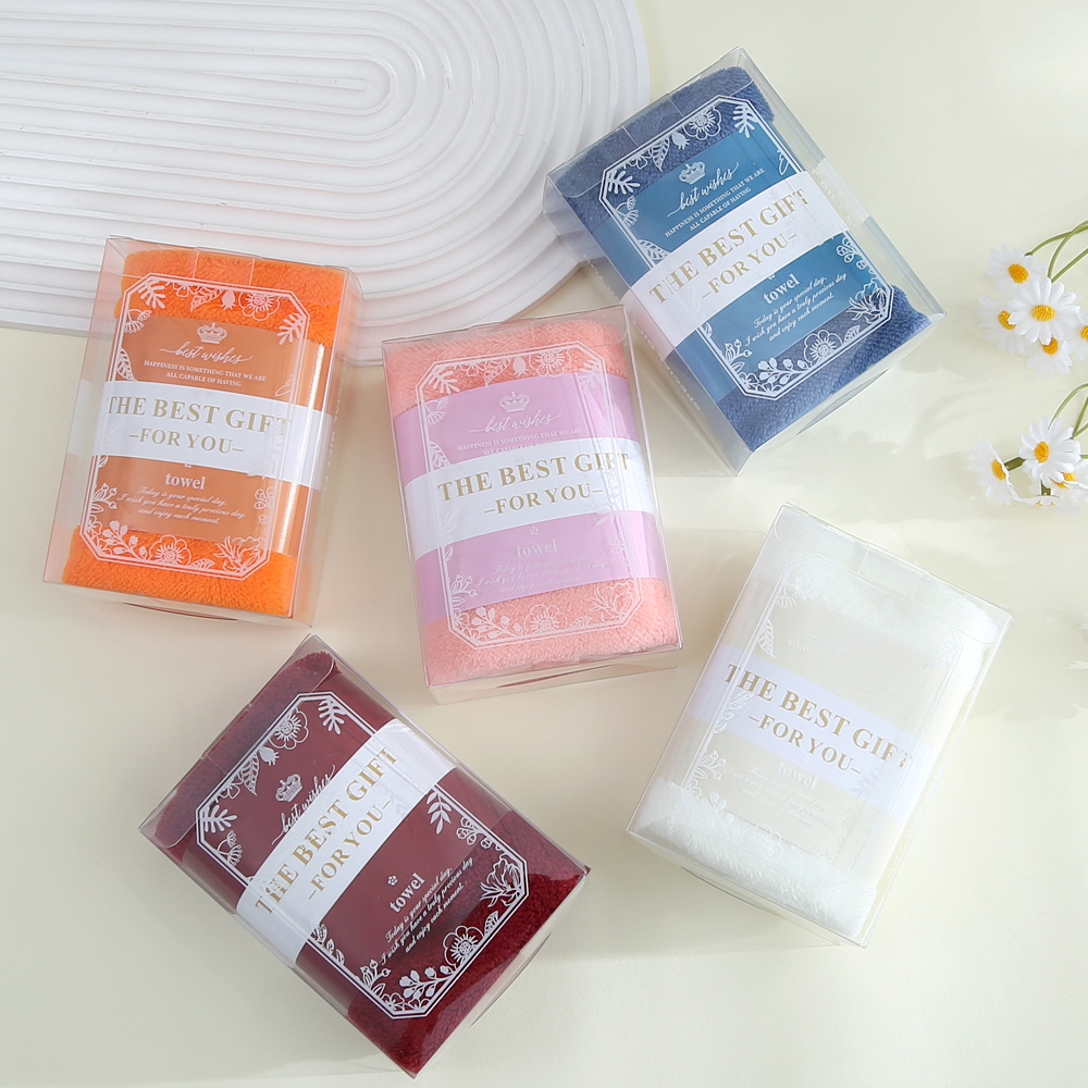 산호 벨벳 수건 PVC 선물 상자 허리 씰 기념품 답례 선물 보름달 선물 웨딩 선물 30*40