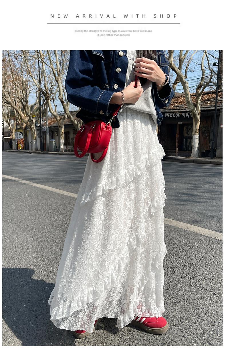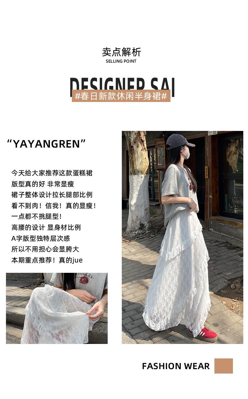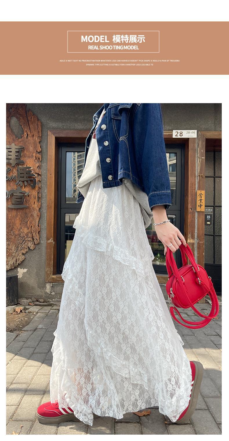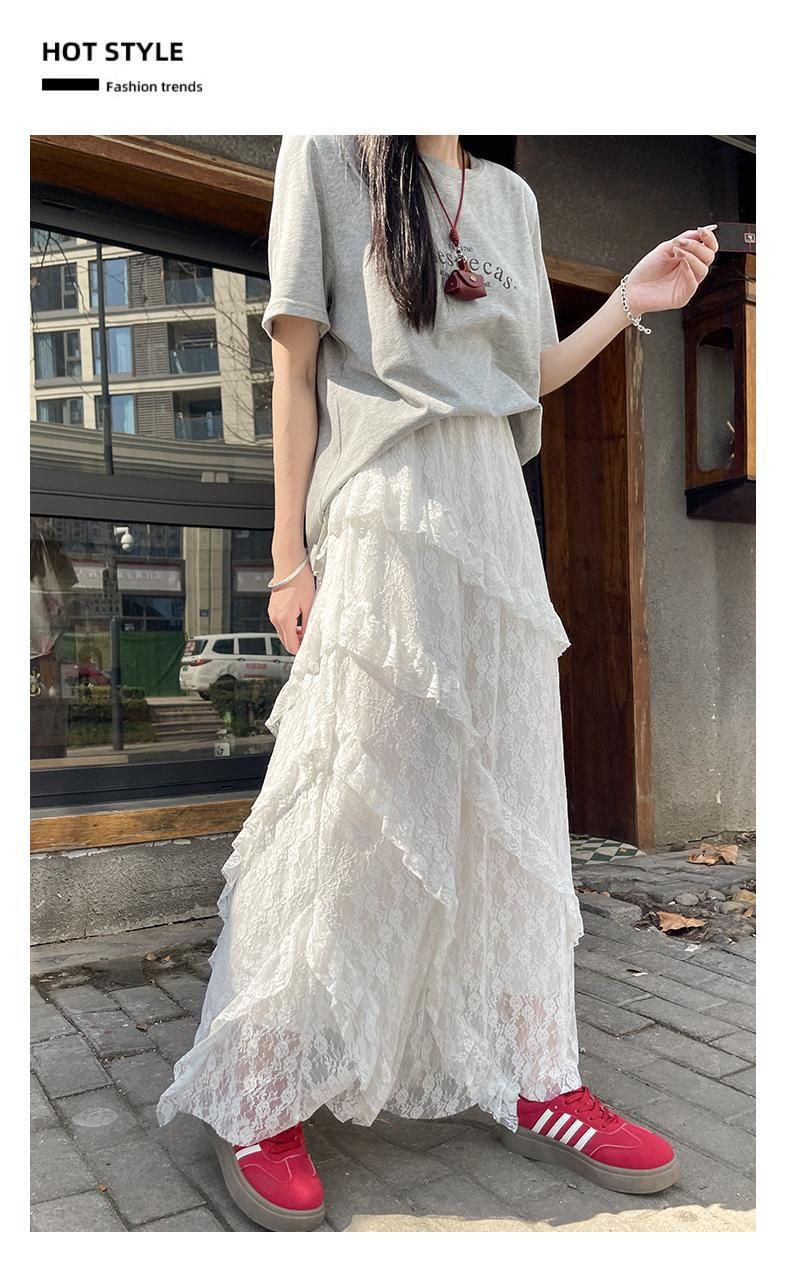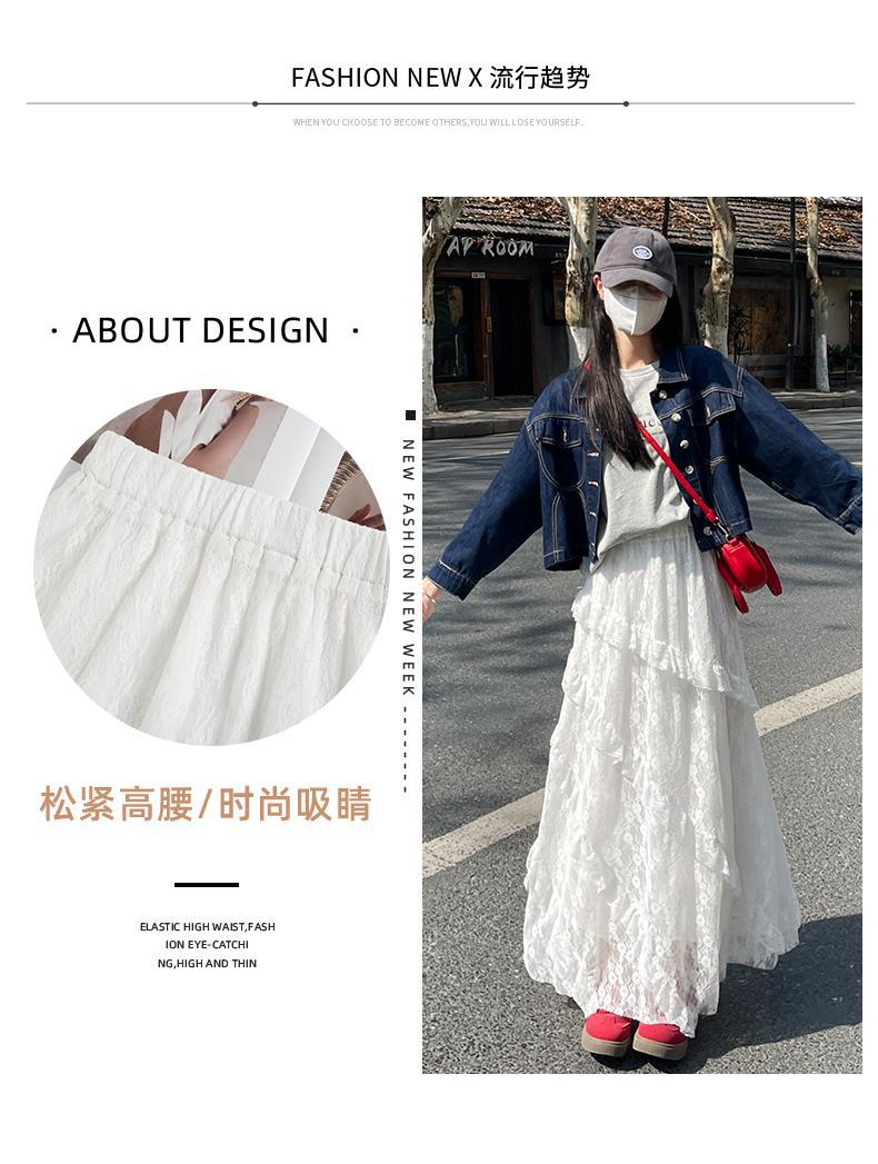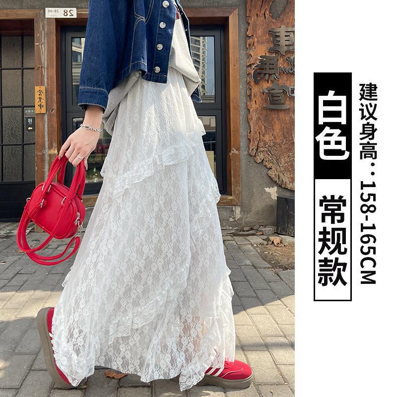 투명하지 않은 화이트 레이스 스커트 2025 신작 여름 여성 슬림 A라인 롱 스커트 드레이프 레이스 케이크 스커트스토어 가기