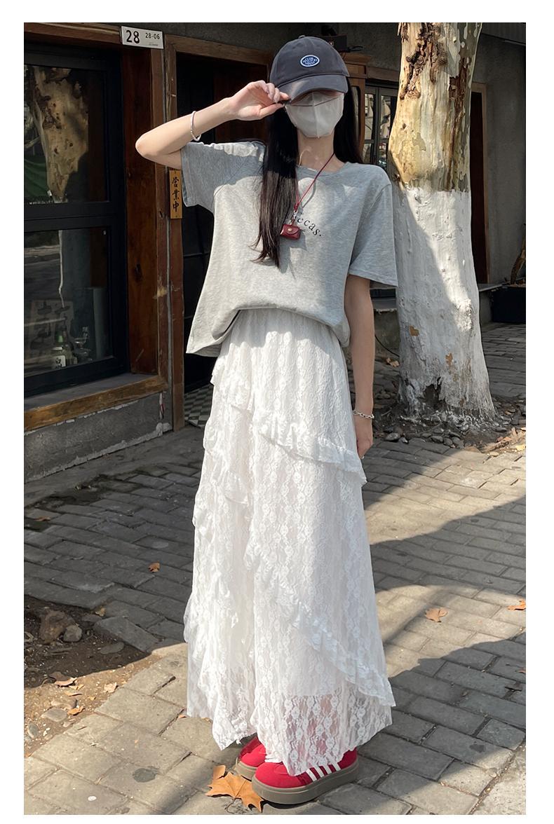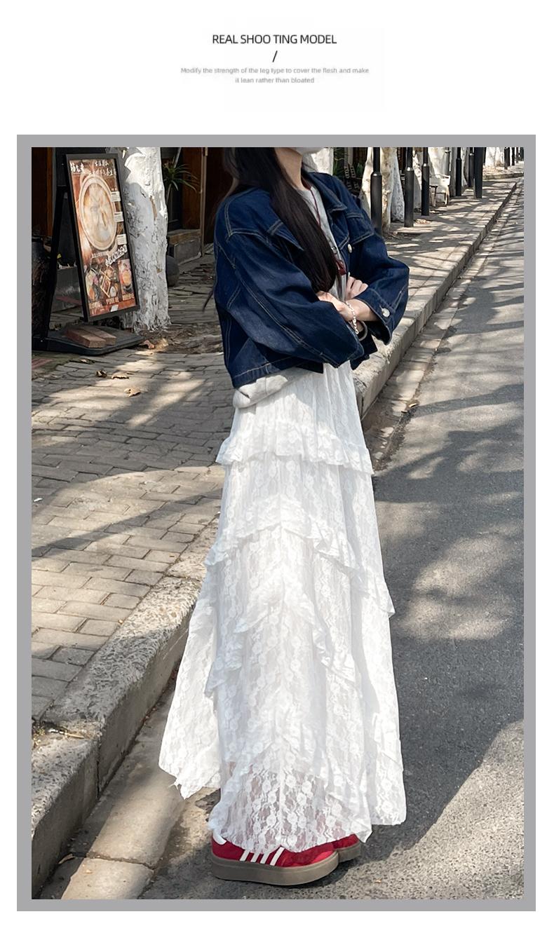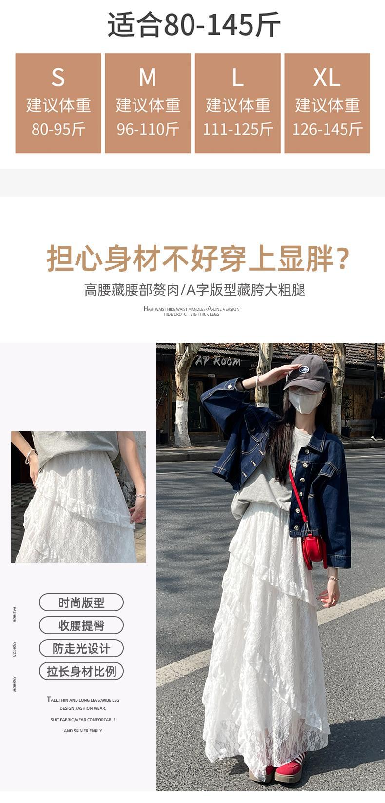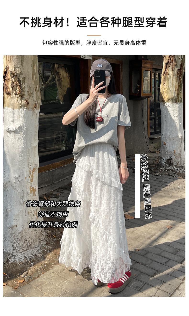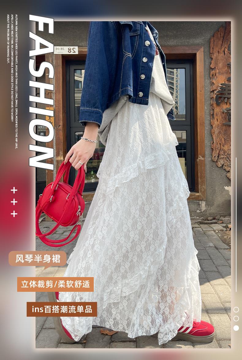 투명하지 않은 화이트 레이스 스커트 2025 신작 여름 여성 슬림 A라인 롱 스커트 드레이프 레이스 케이크 스커트스토어 가기