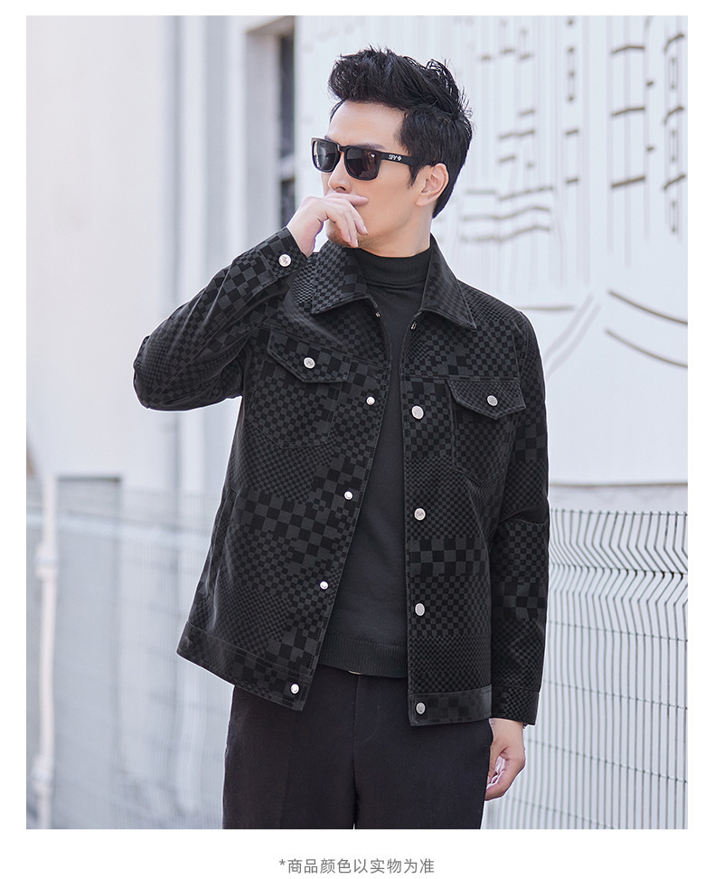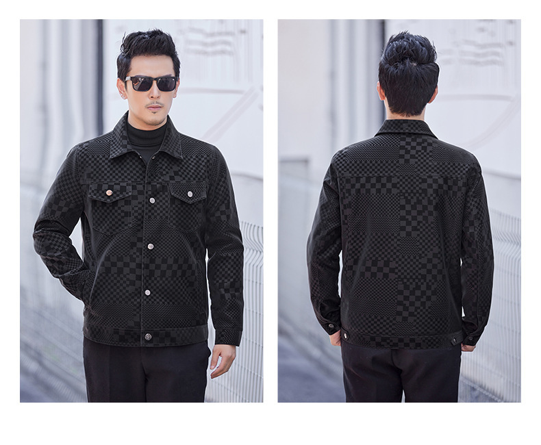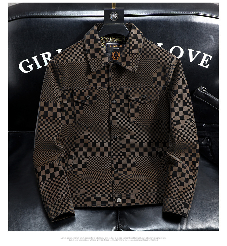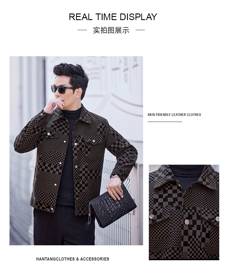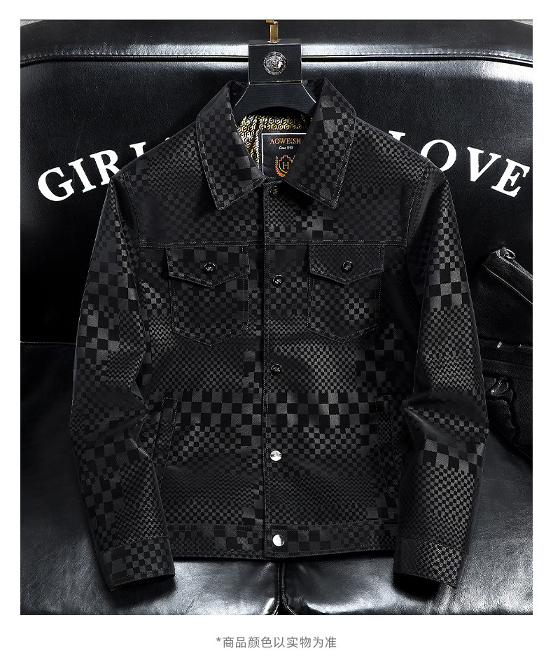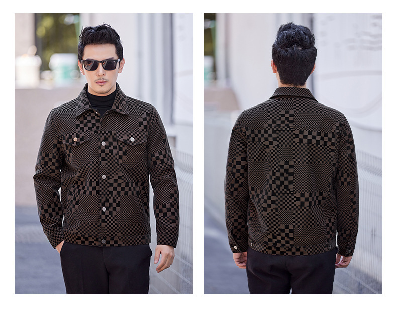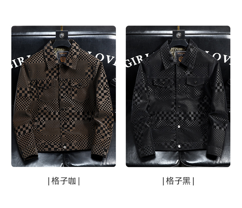 체커보드 재킷 가죽 재킷 남성 봄, 가을 하이 엔드 비즈니스 캐주얼 재킷 스웨이드 가을, 겨울 유행 남성 의류스토어 가기