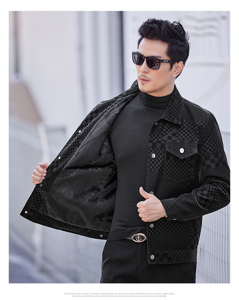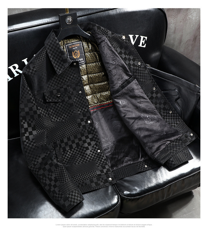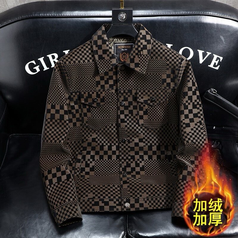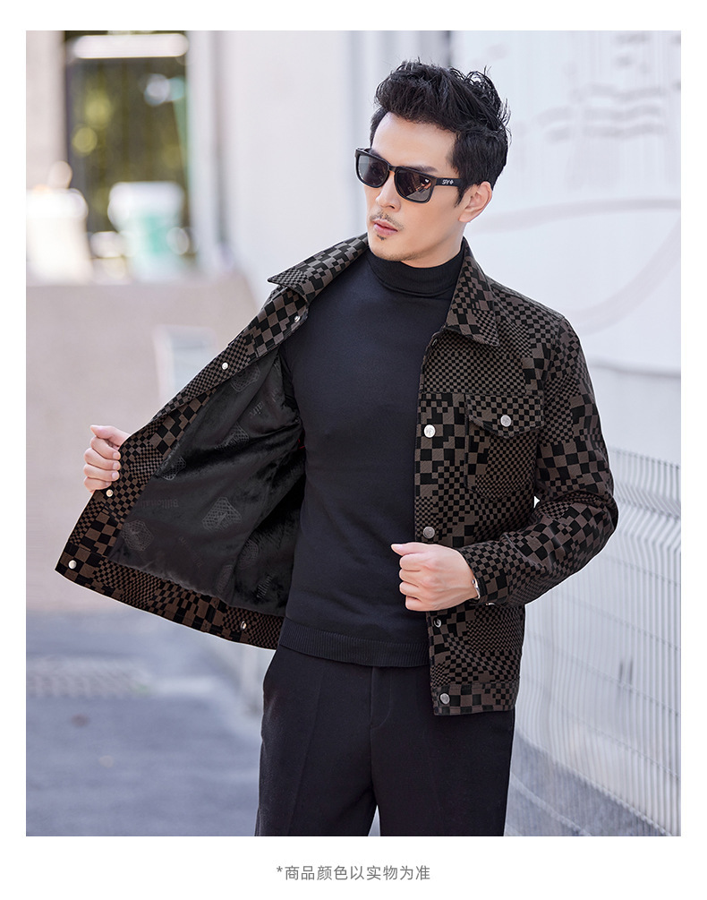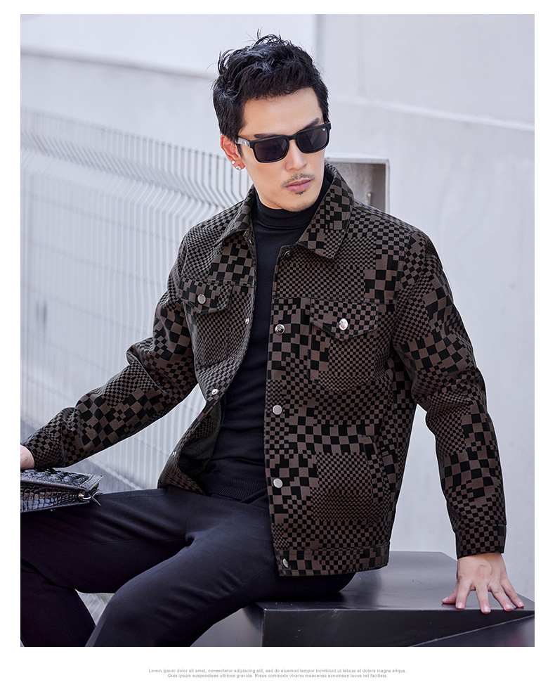 체커보드 재킷 가죽 재킷 남성 봄, 가을 하이 엔드 비즈니스 캐주얼 재킷 스웨이드 가을, 겨울 유행 남성 의류스토어 가기