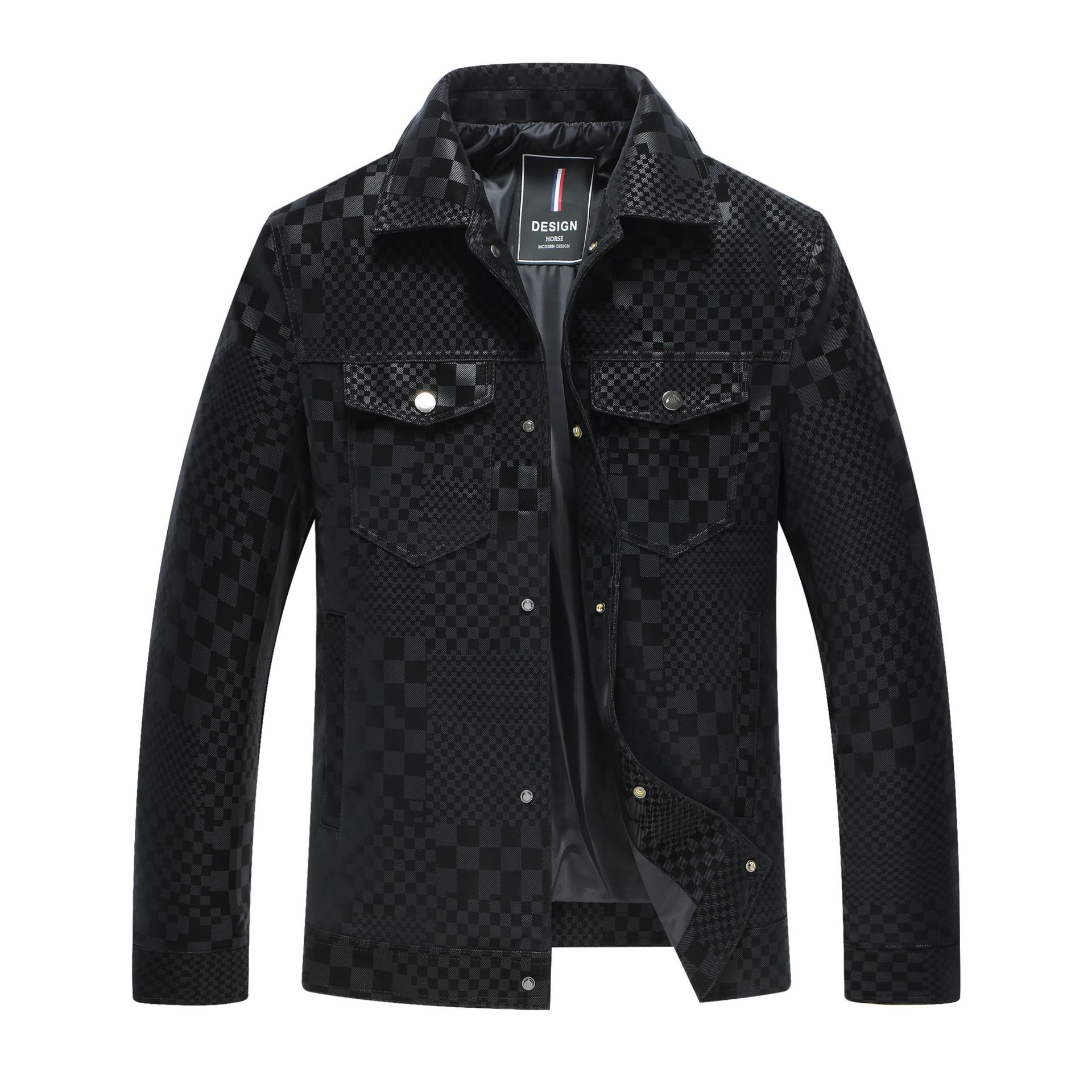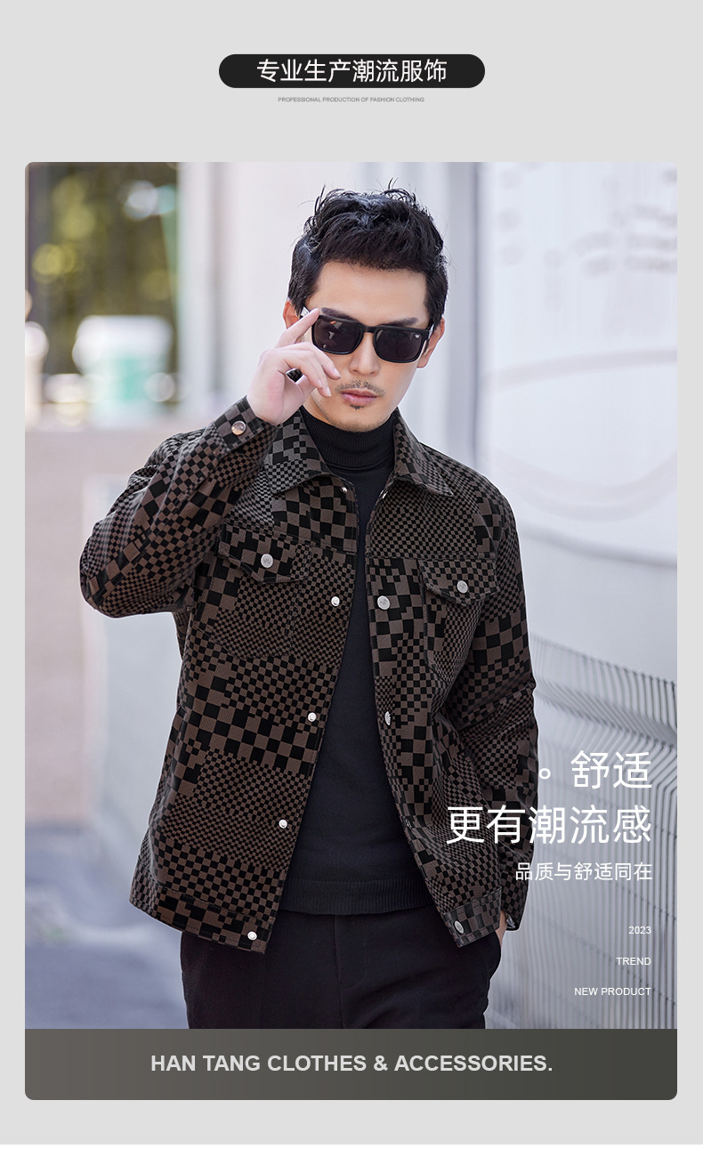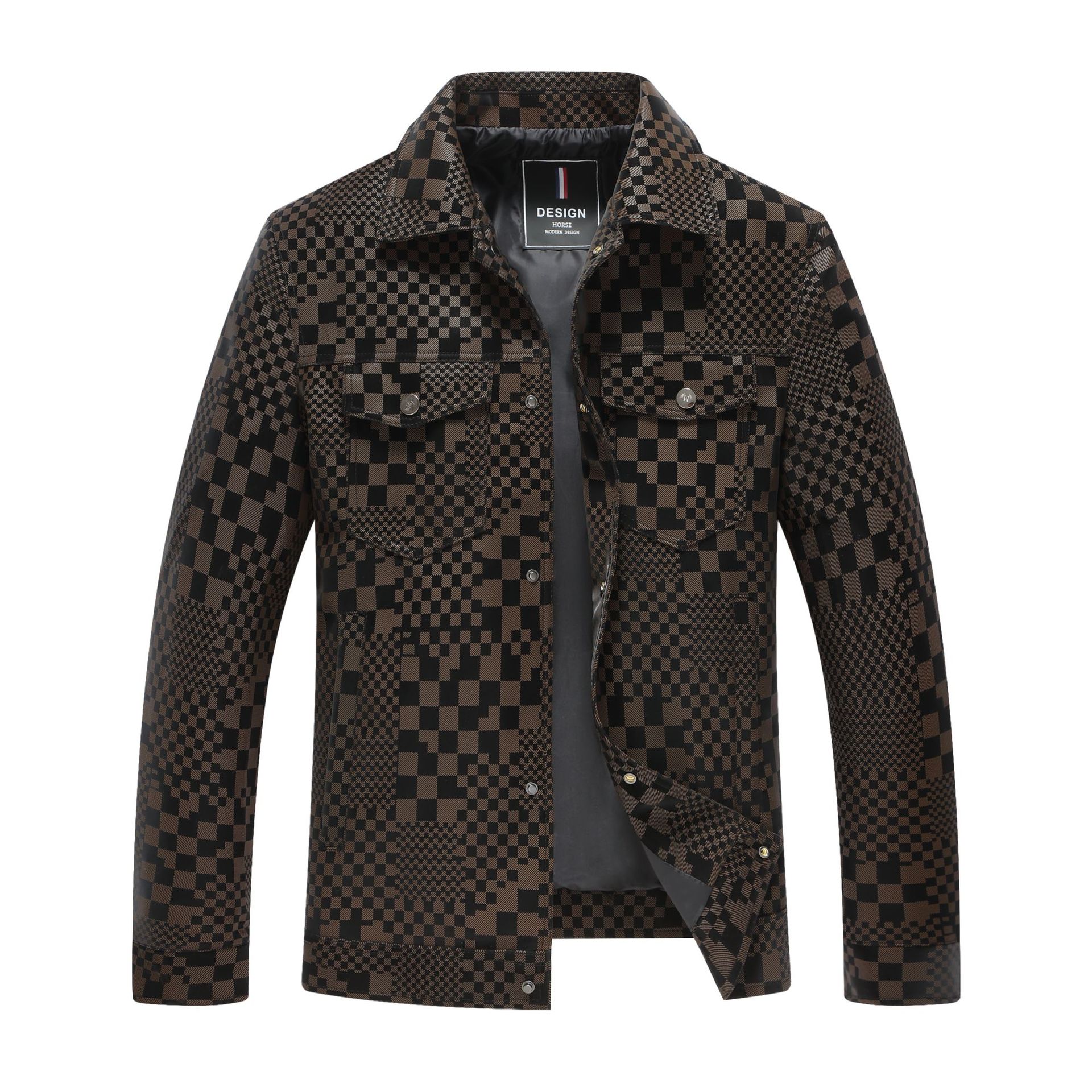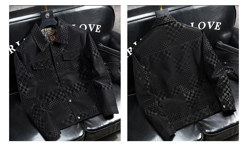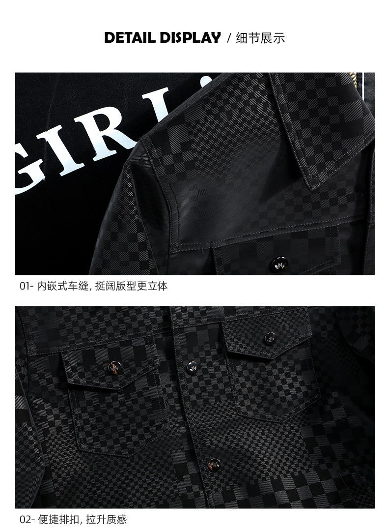 체커보드 재킷 가죽 재킷 남성 봄, 가을 하이 엔드 비즈니스 캐주얼 재킷 스웨이드 가을, 겨울 유행 남성 의류스토어 가기