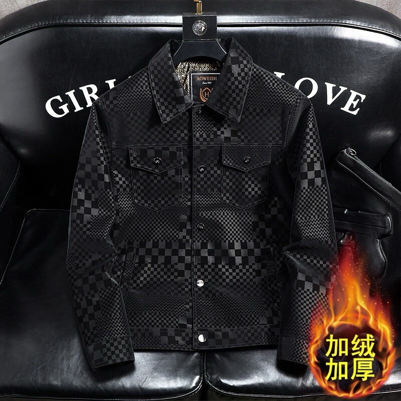 체커보드 재킷 가죽 재킷 남성 봄, 가을 하이 엔드 비즈니스 캐주얼 재킷 스웨이드 가을, 겨울 유행 남성 의류