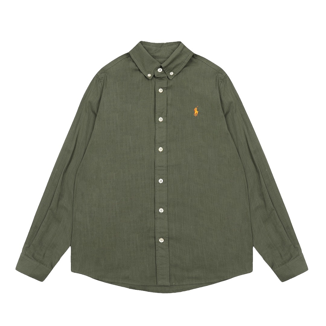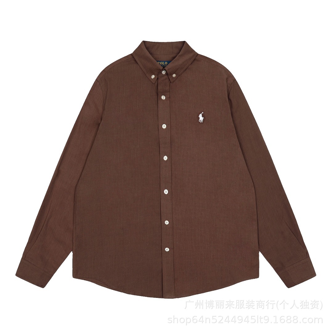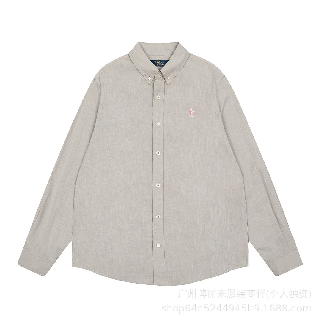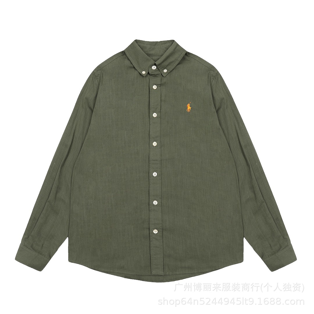 스캔 가능~ 25가지 새로운 스타일의 러프 RL 클래식 린넨 로고 자수 브레스트 라펠 클래식 긴팔 캐주얼 셔츠