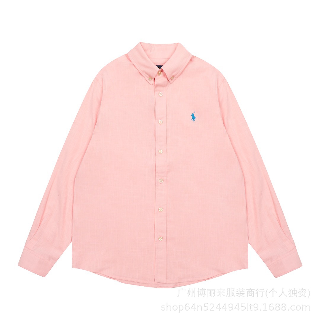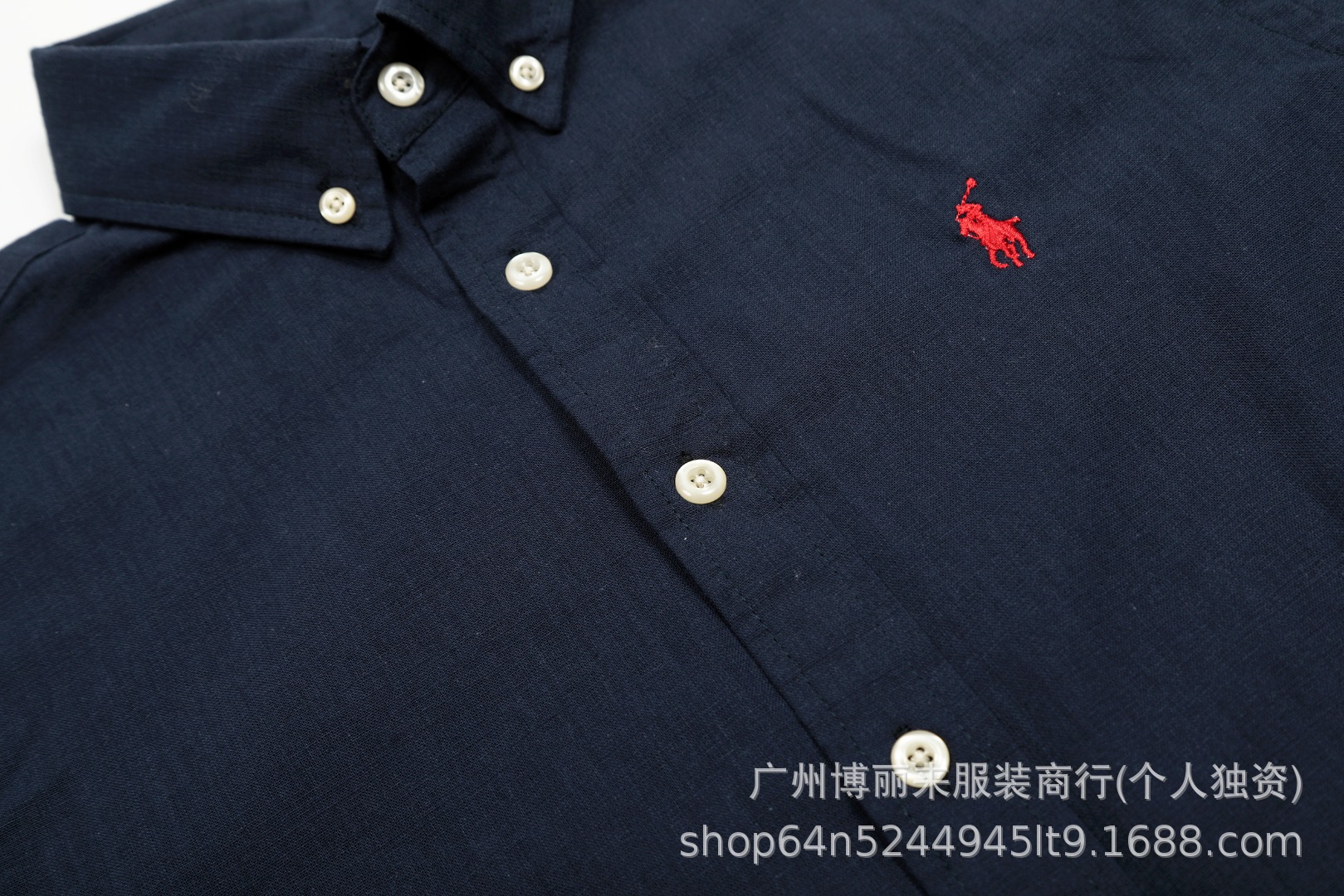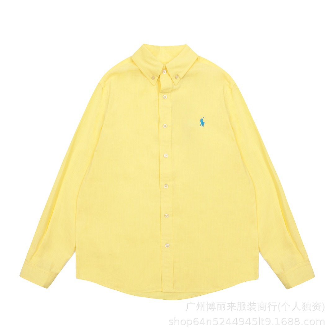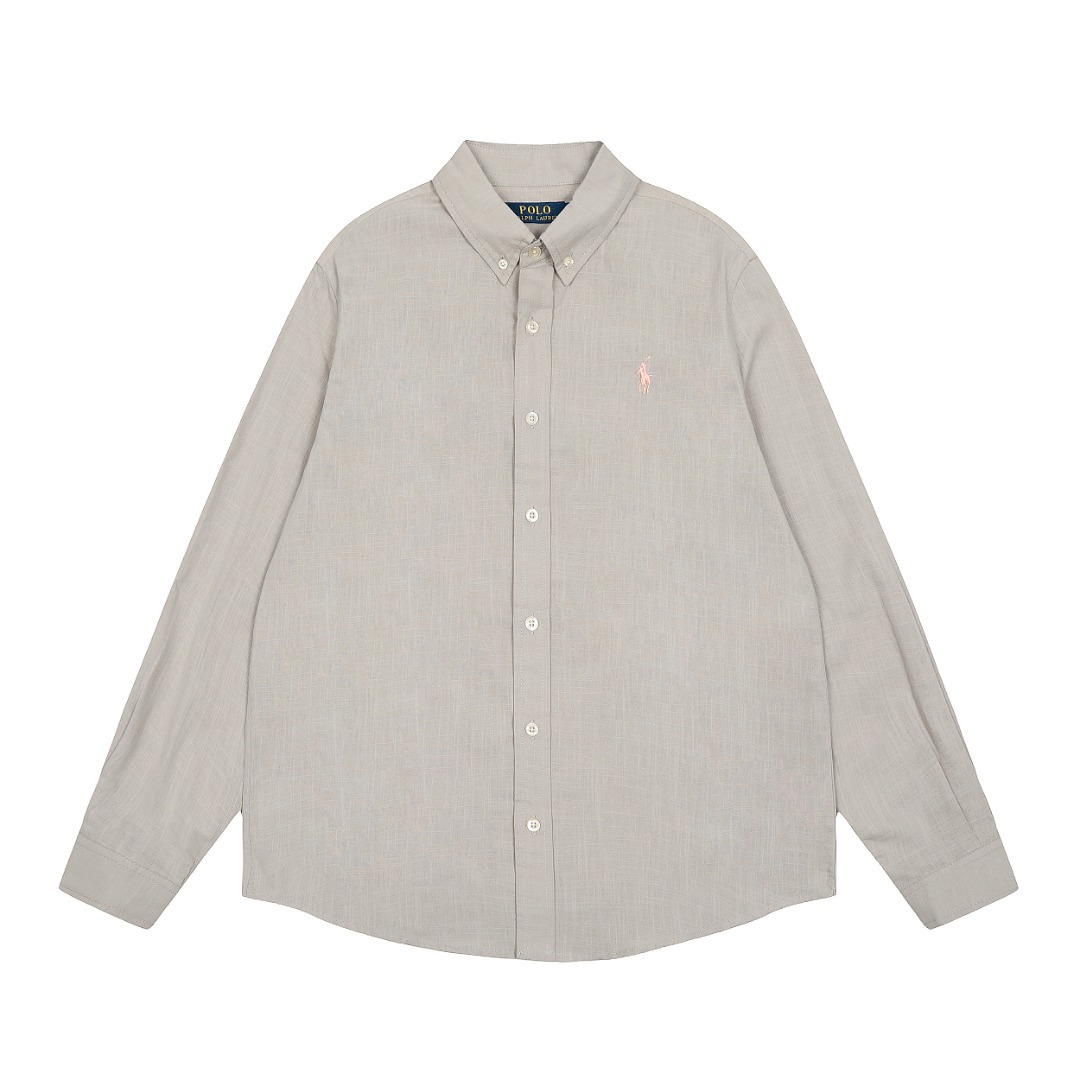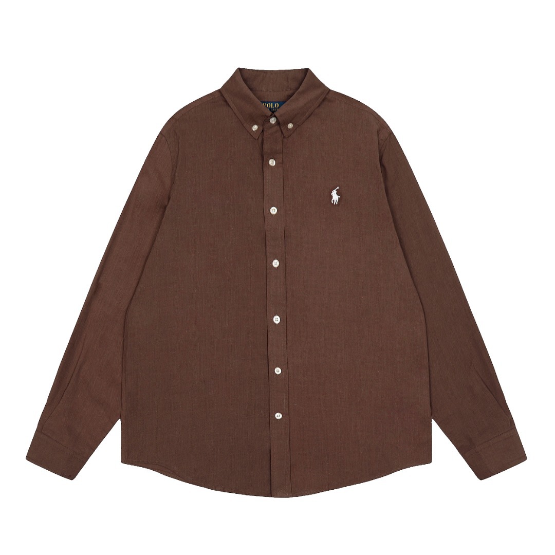 스캔 가능~ 25가지 새로운 스타일의 러프 RL 클래식 린넨 로고 자수 브레스트 라펠 클래식 긴팔 캐주얼 셔츠