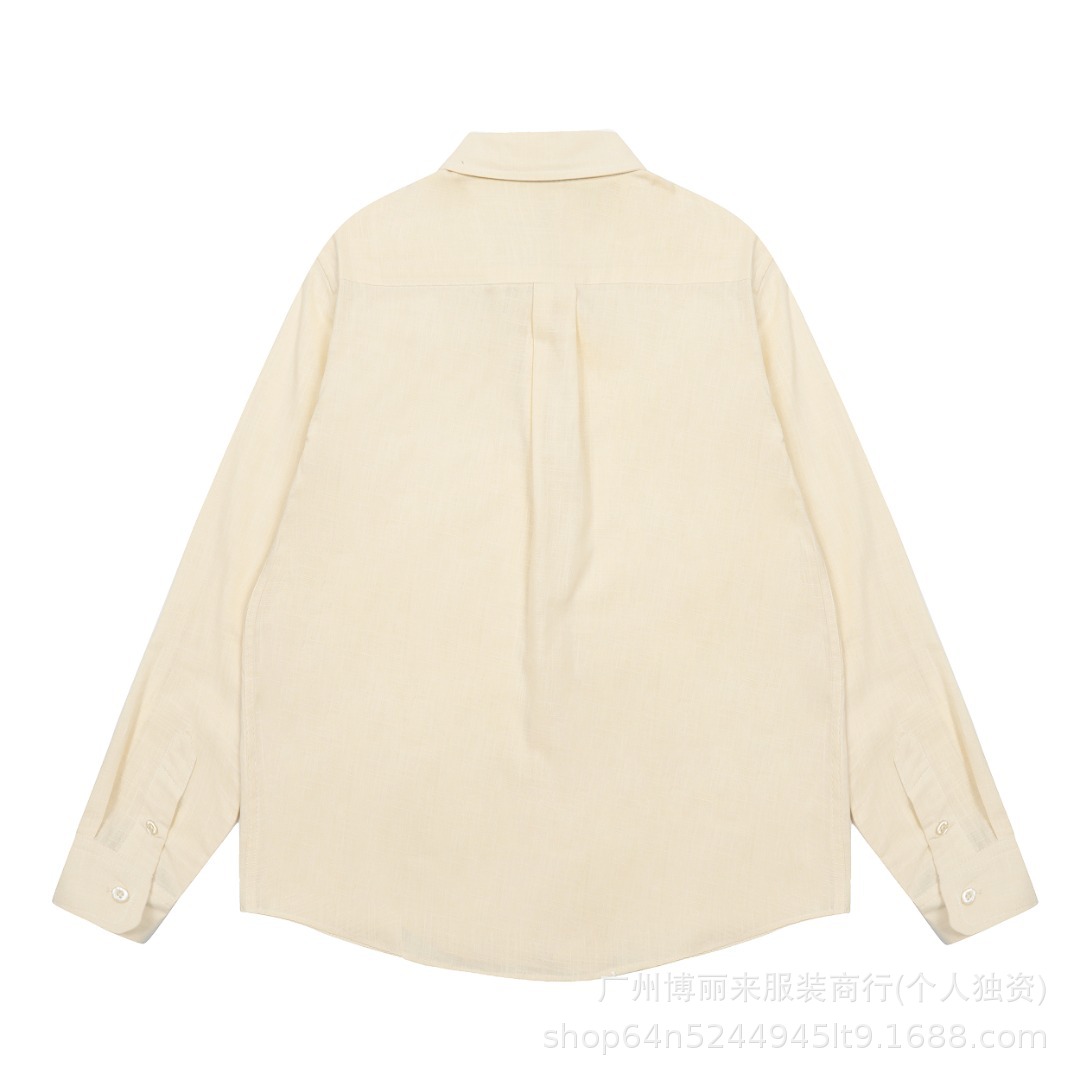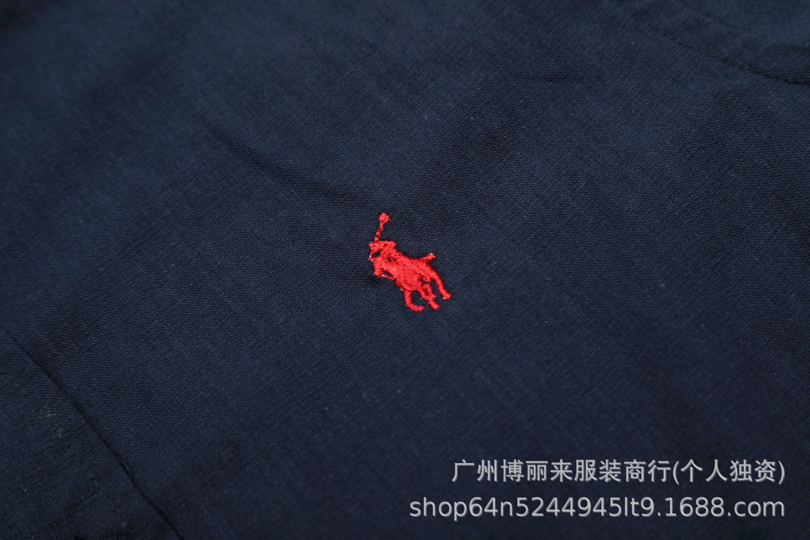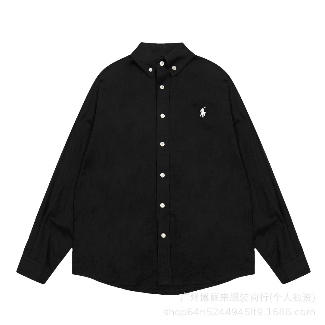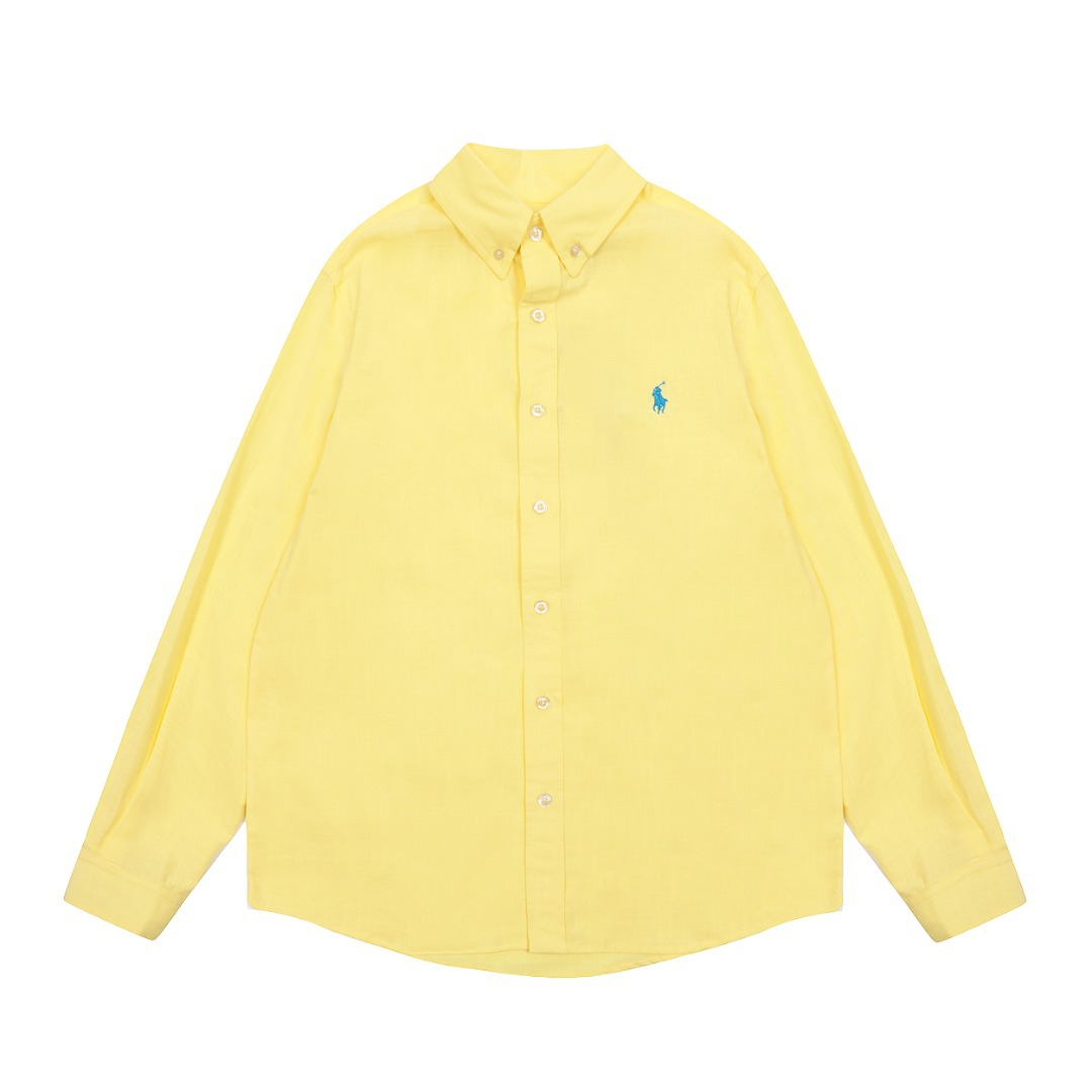 스캔 가능~ 25가지 새로운 스타일의 러프 RL 클래식 린넨 로고 자수 브레스트 라펠 클래식 긴팔 캐주얼 셔츠