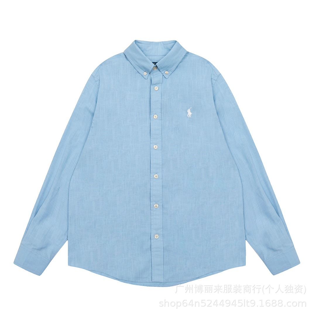 스캔 가능~ 25가지 새로운 스타일의 러프 RL 클래식 린넨 로고 자수 브레스트 라펠 클래식 긴팔 캐주얼 셔츠스토어 가기