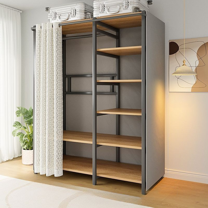 옷장 간단한 가정용 침실 바닥 옷걸이 오픈 천 옷장 강철과 목재 조합 임대 주택 보관 Ouyue스토어 가기