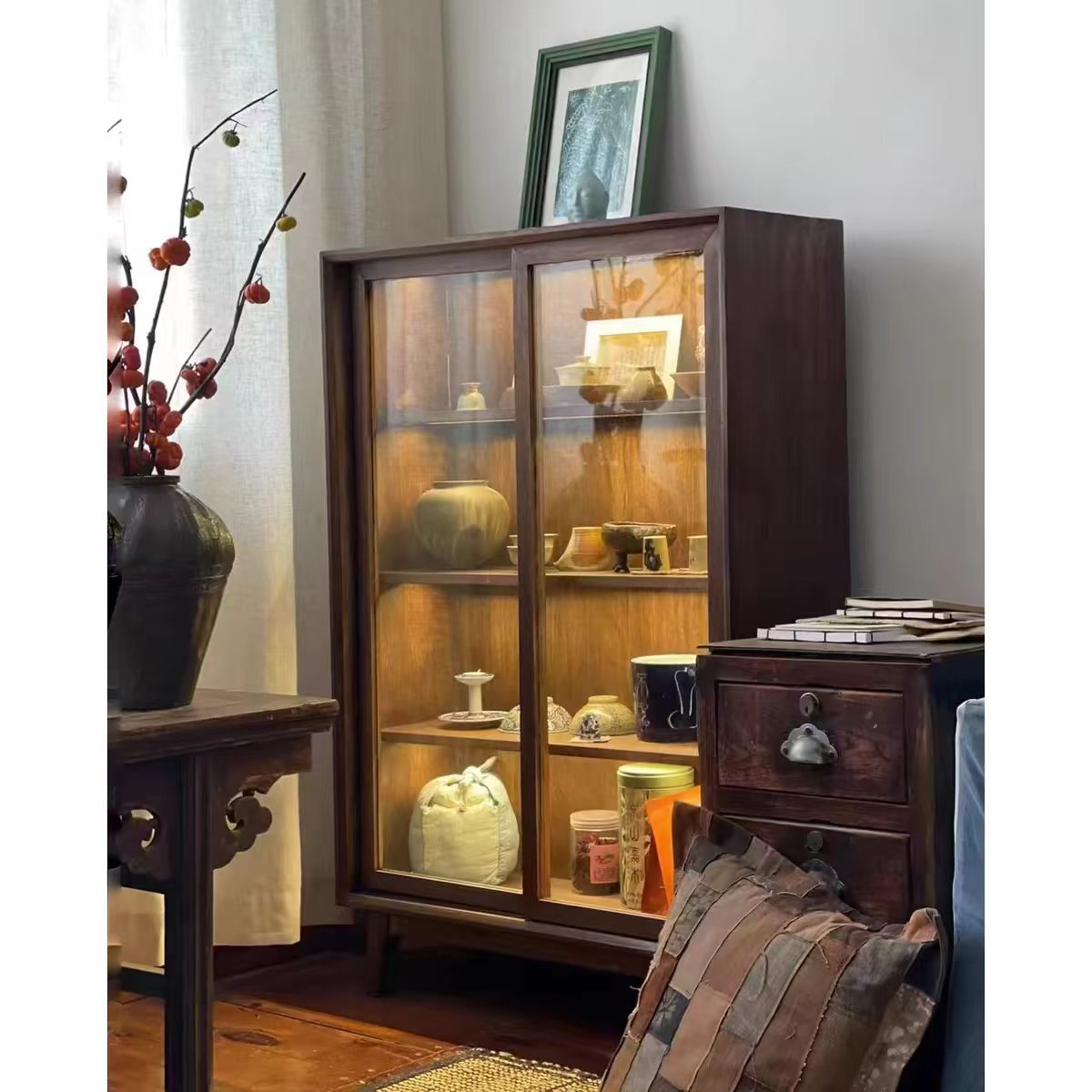 북유럽 단단한 나무 찬장 홈 주방 벽 체리 나무 캐비닛 거실 차 캐비닛 일본식 스토리지 스토리지 캐비닛스토어 가기