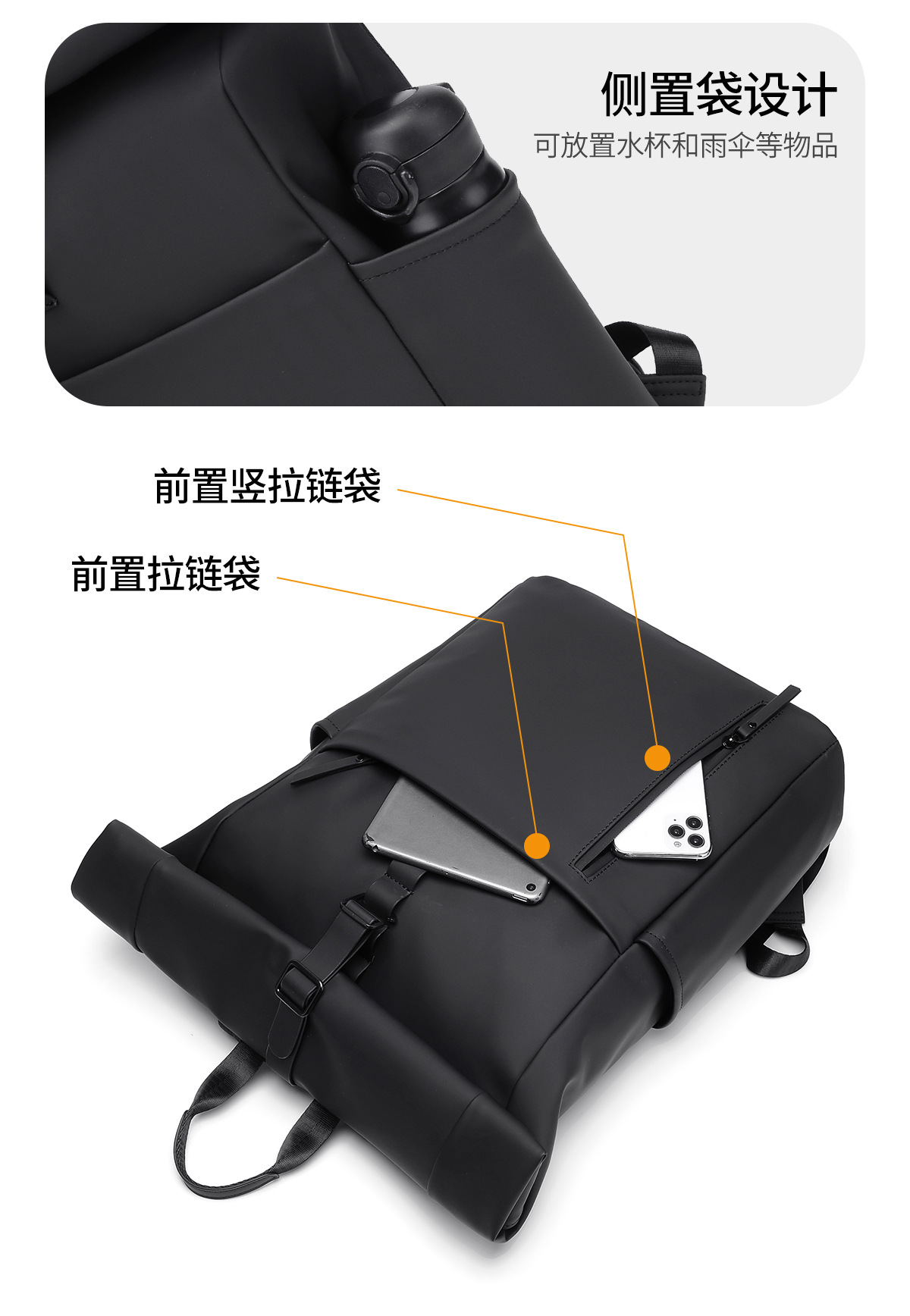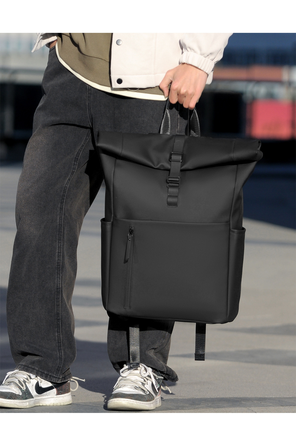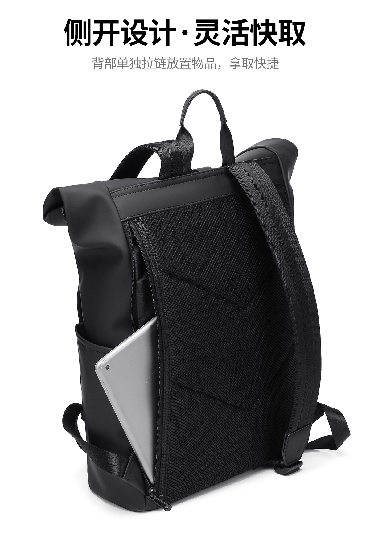 새로운 남성용 롤탑 백팩 캐주얼 비즈니스 대용량 여행 백팩 통근용 컴퓨터 가방 대학생 가방