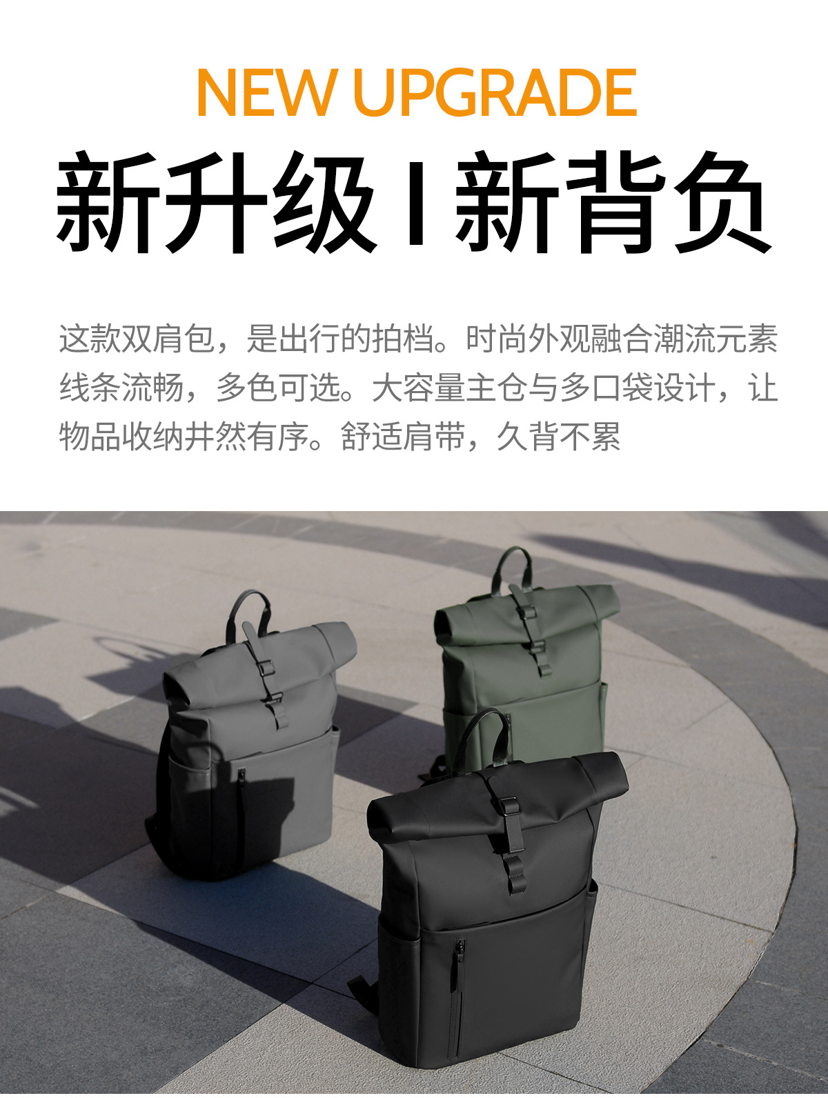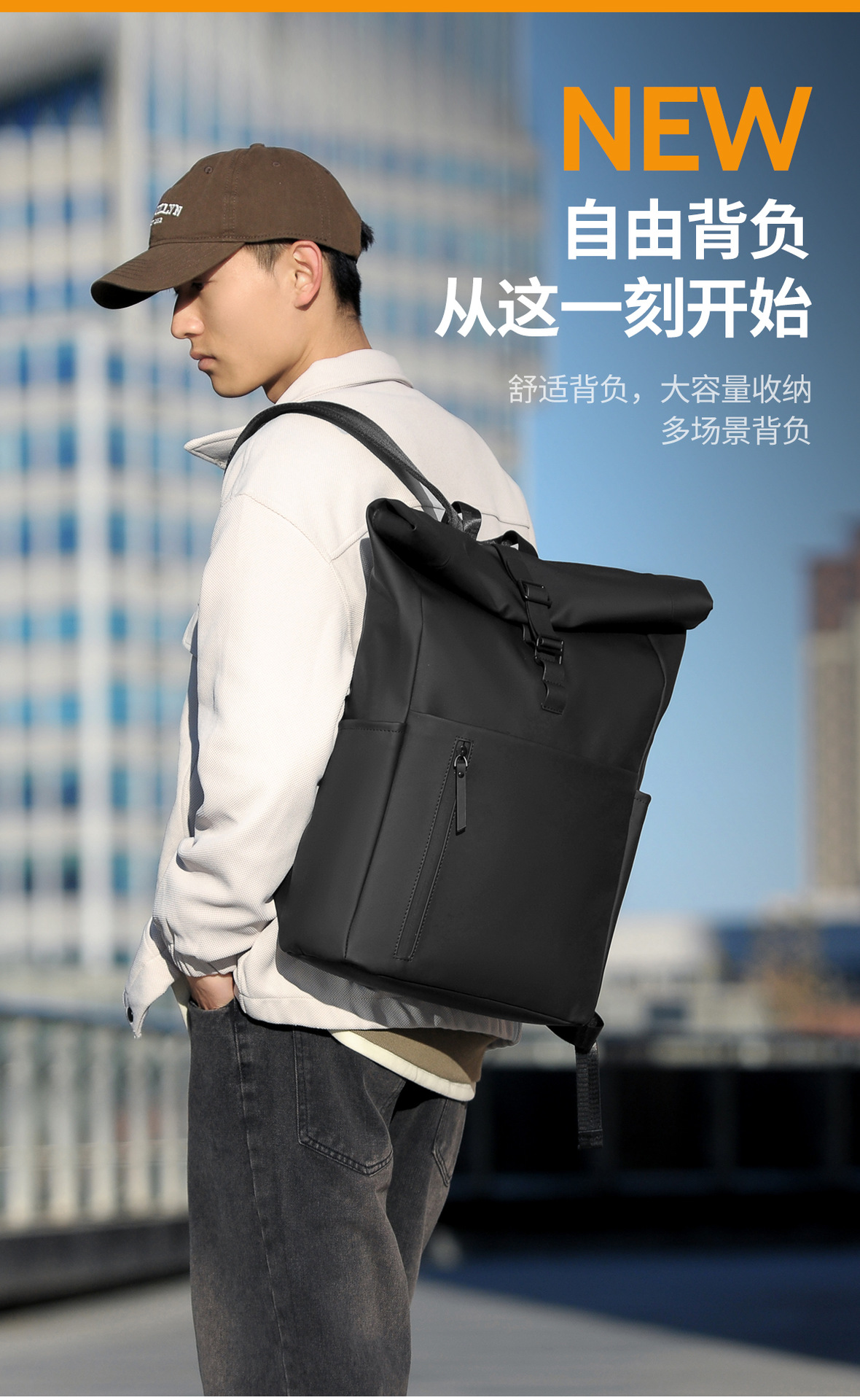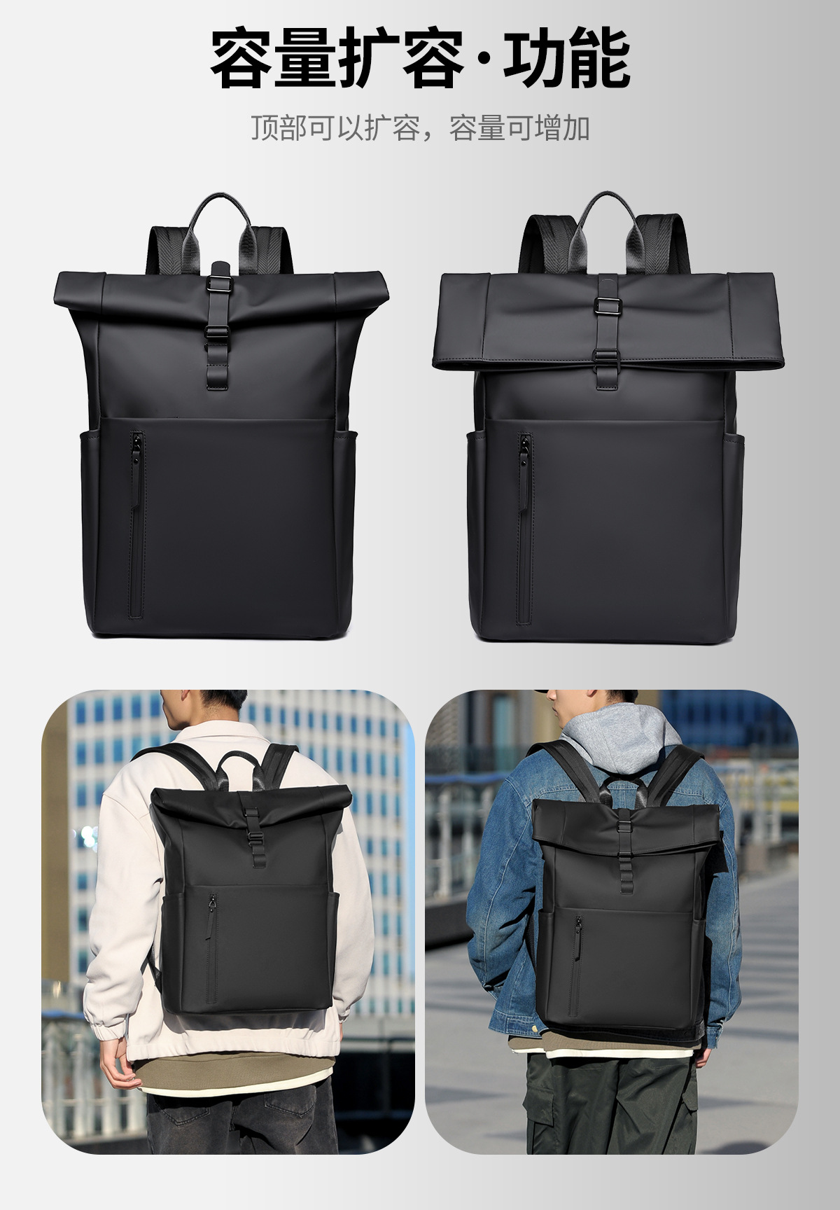 새로운 남성용 롤탑 백팩 캐주얼 비즈니스 대용량 여행 백팩 통근용 컴퓨터 가방 대학생 가방스토어 가기