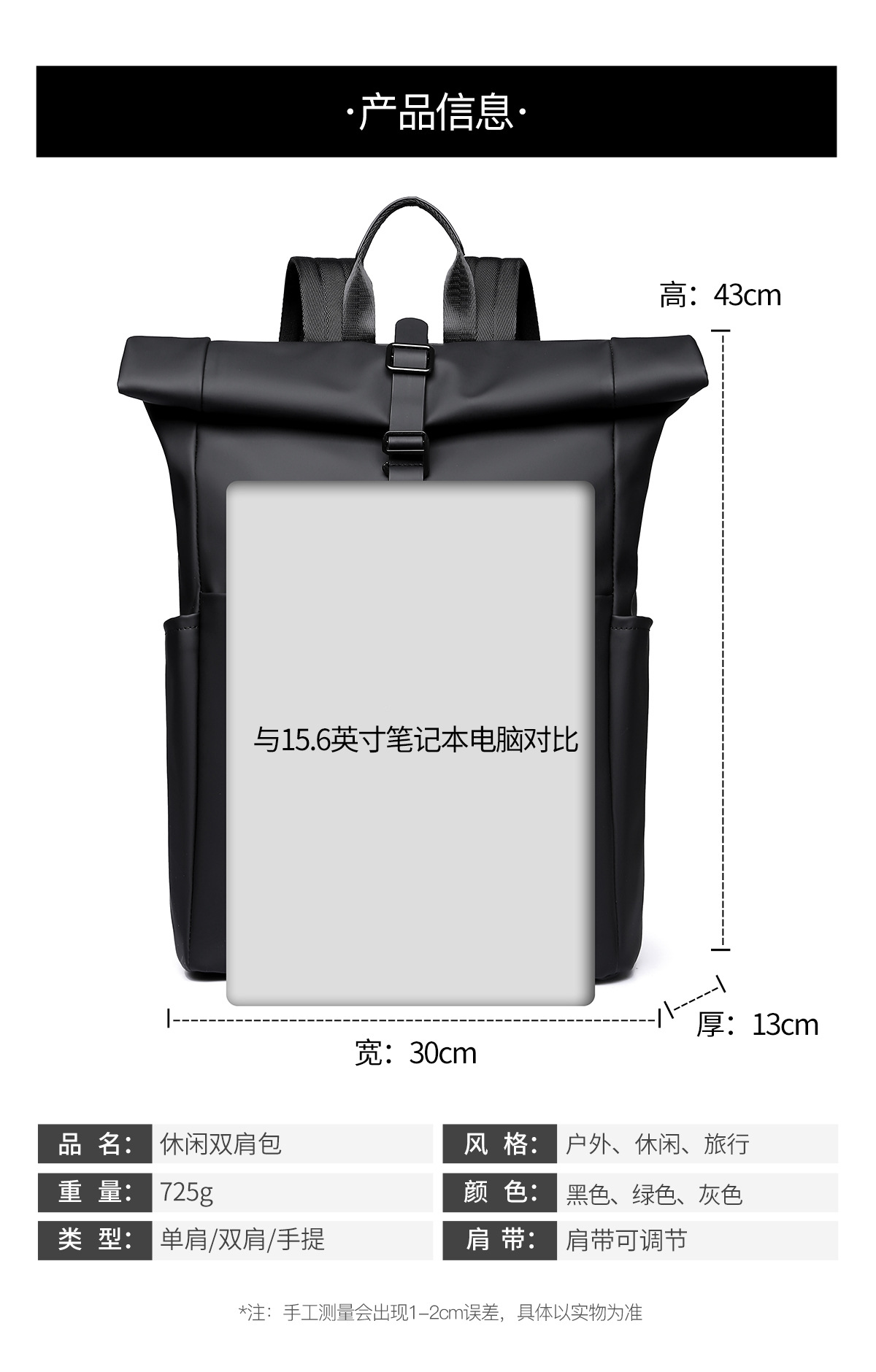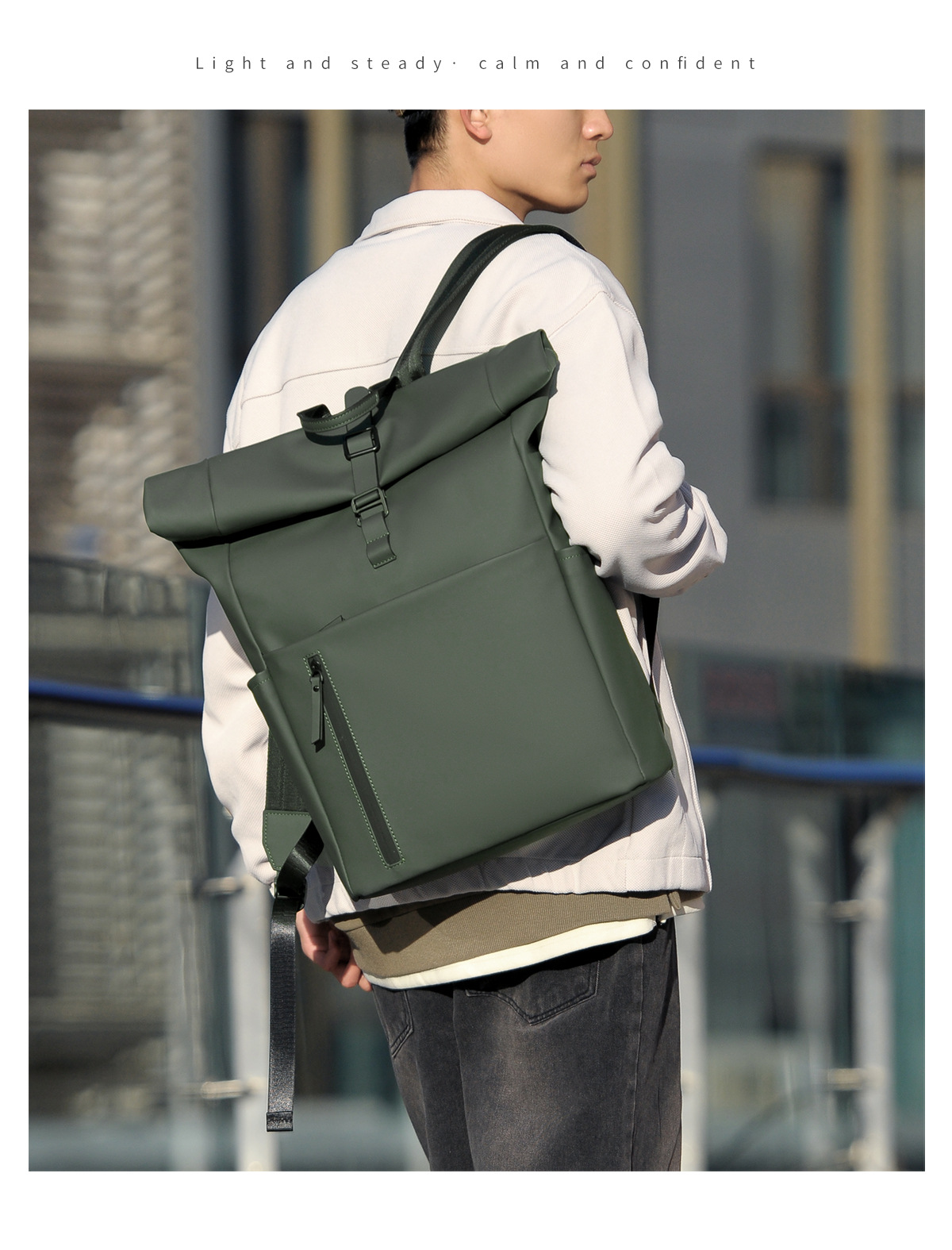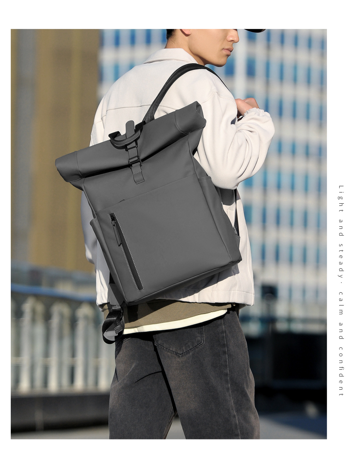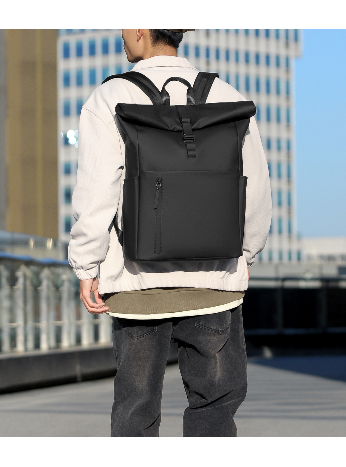 새로운 남성용 롤탑 백팩 캐주얼 비즈니스 대용량 여행 백팩 통근용 컴퓨터 가방 대학생 가방스토어 가기