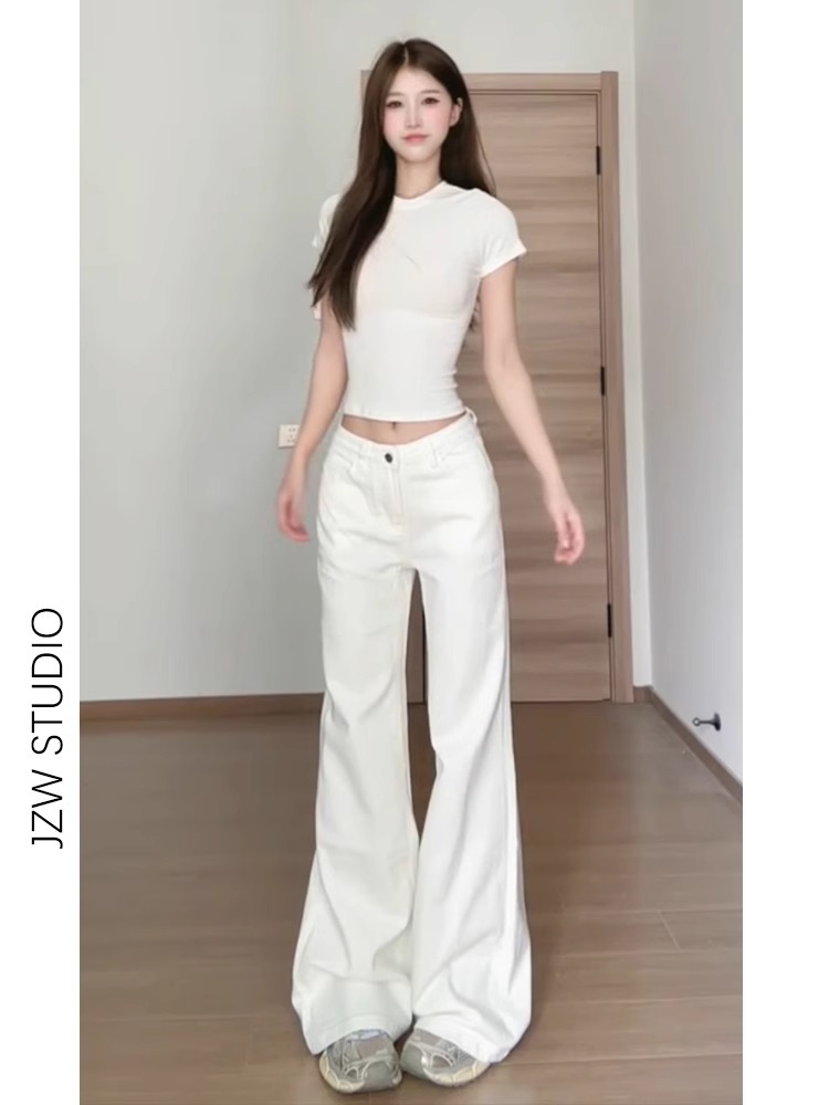 여름 여성을 위한 화이트 로우 웨이스트 다용도 스트레치 부츠컷 청바지 새로운 스타일 루즈하고 다리에 꼭 맞지 않는 슬리밍 바닥 길이 말굽 바지스토어 가기