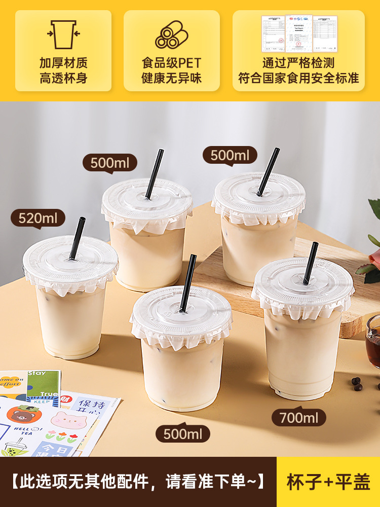 Leshan 밀크 티 컵 일회용 차가운 음료 컵 뚜껑이있는 투명 홈 메이드 커피 컵 음료 컵 음료 컵 플라스틱스토어 가기