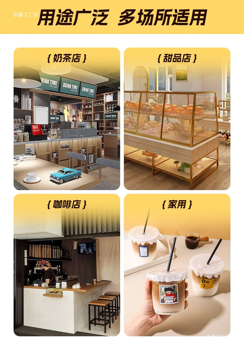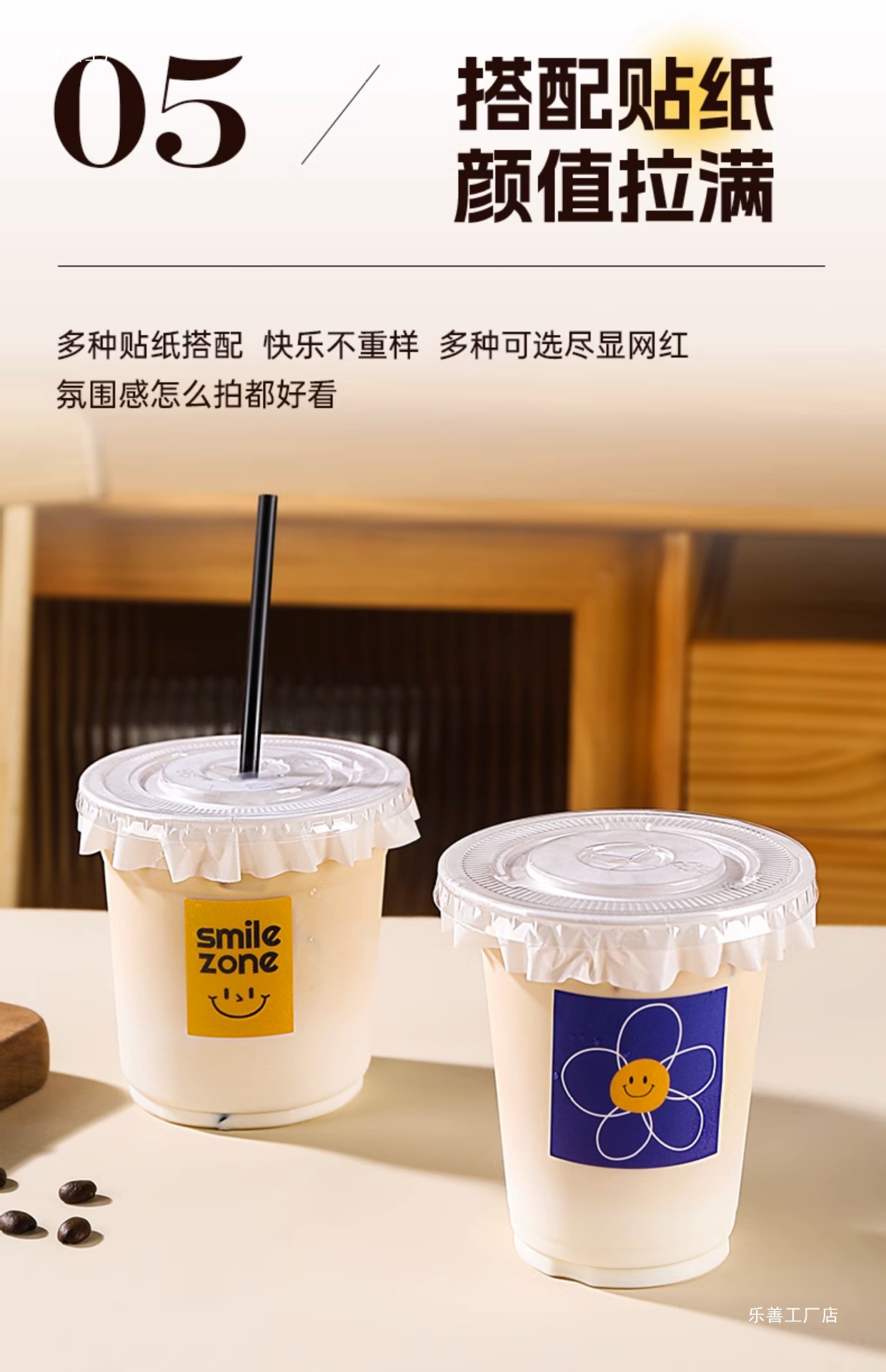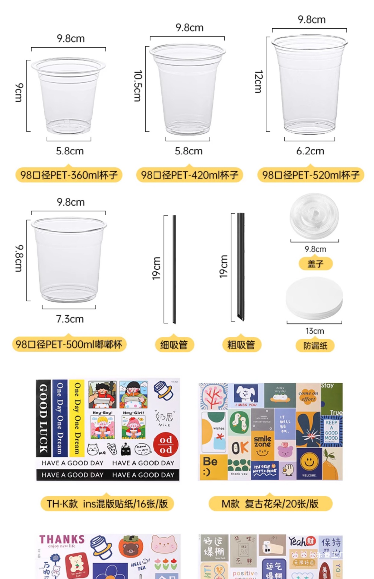 • 귀여운 스티커컵+뚜껑+얇은 빨대+누수방지지-100개-420ml
