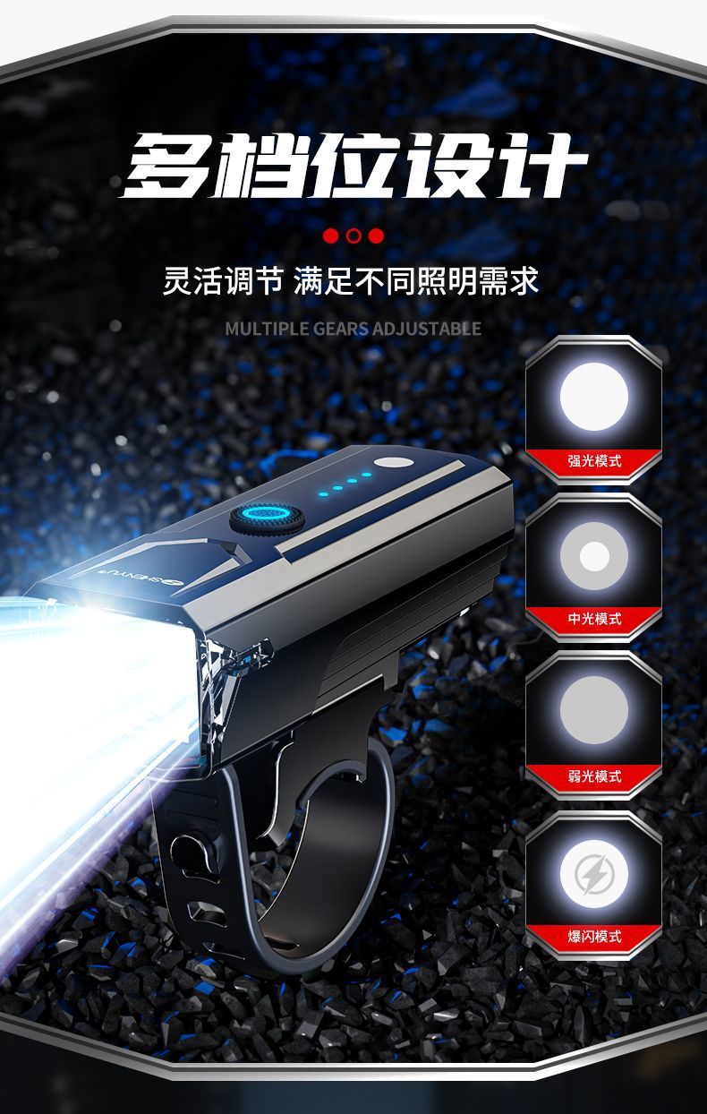 강한 빛 손전등 충전식 초고휘도 장거리 사이클링 라이트 자전거 라이트 야간 사이클링 산악 자전거 유도 방수 전면 라이트