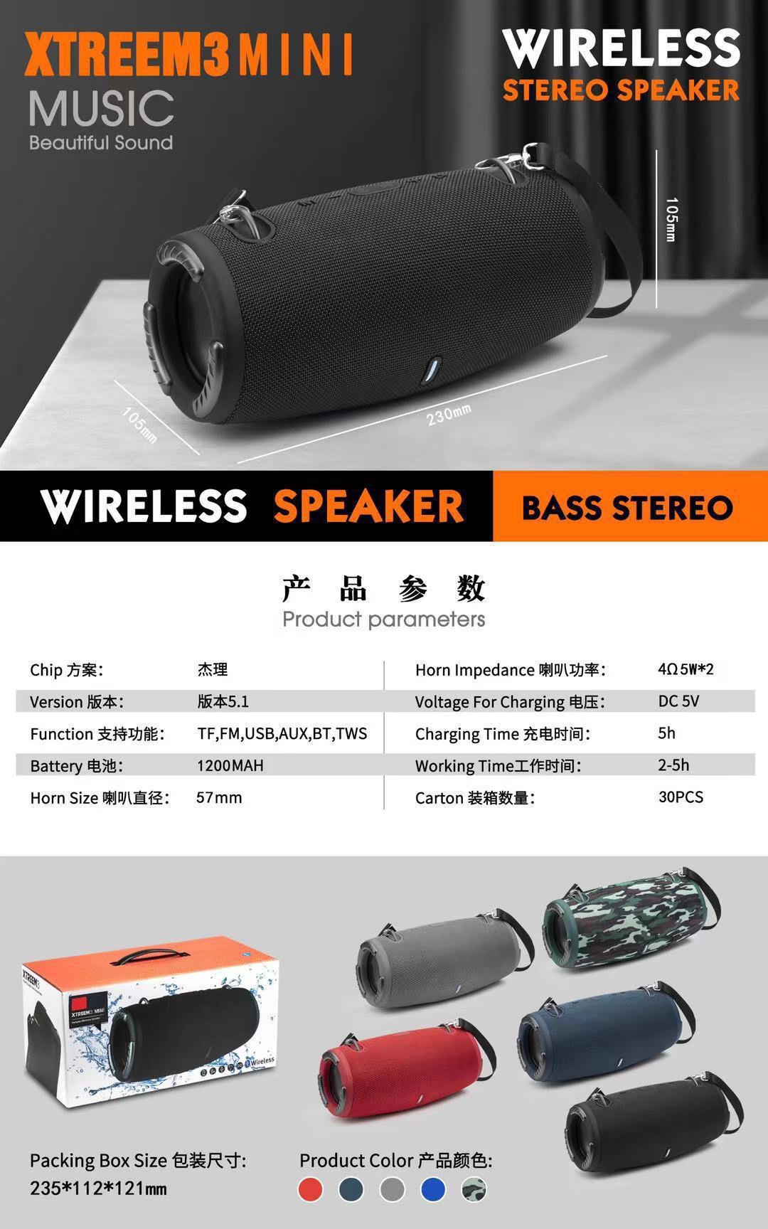 대외 무역 국경 간 인기 MINI-XTREME3 야외 휴대용 소형 전투 드럼 무선 블루투스 스피커 카드 서브 우퍼