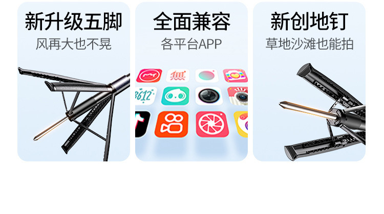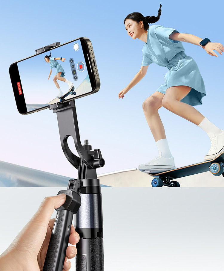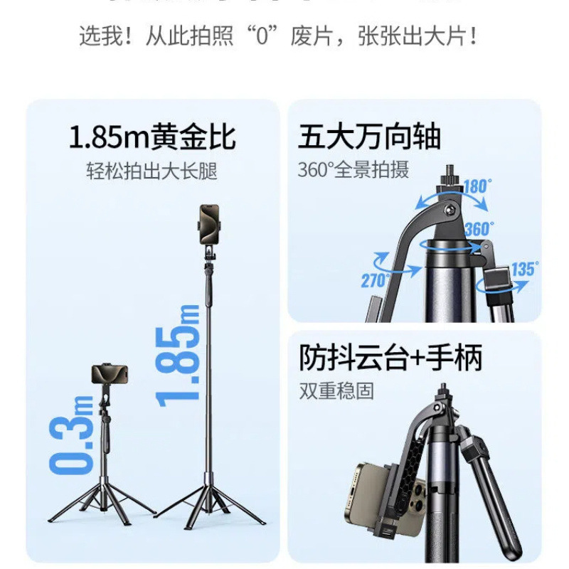 • [1.85m 플래그십 모델] 손떨림 방지 짐벌 + 안정적인 핸들 - [360도 파노라마 촬영, 다양한 장면에 적합한 내장형 그라운드 네일]