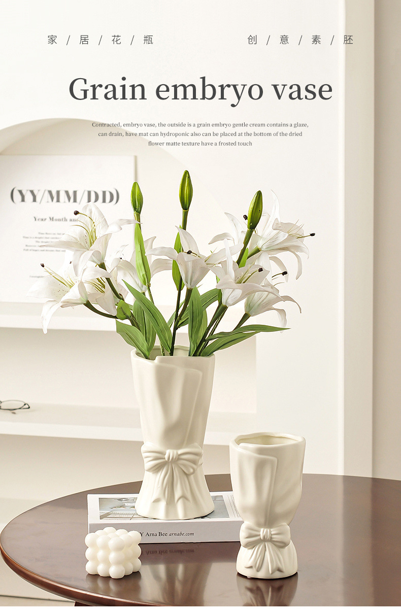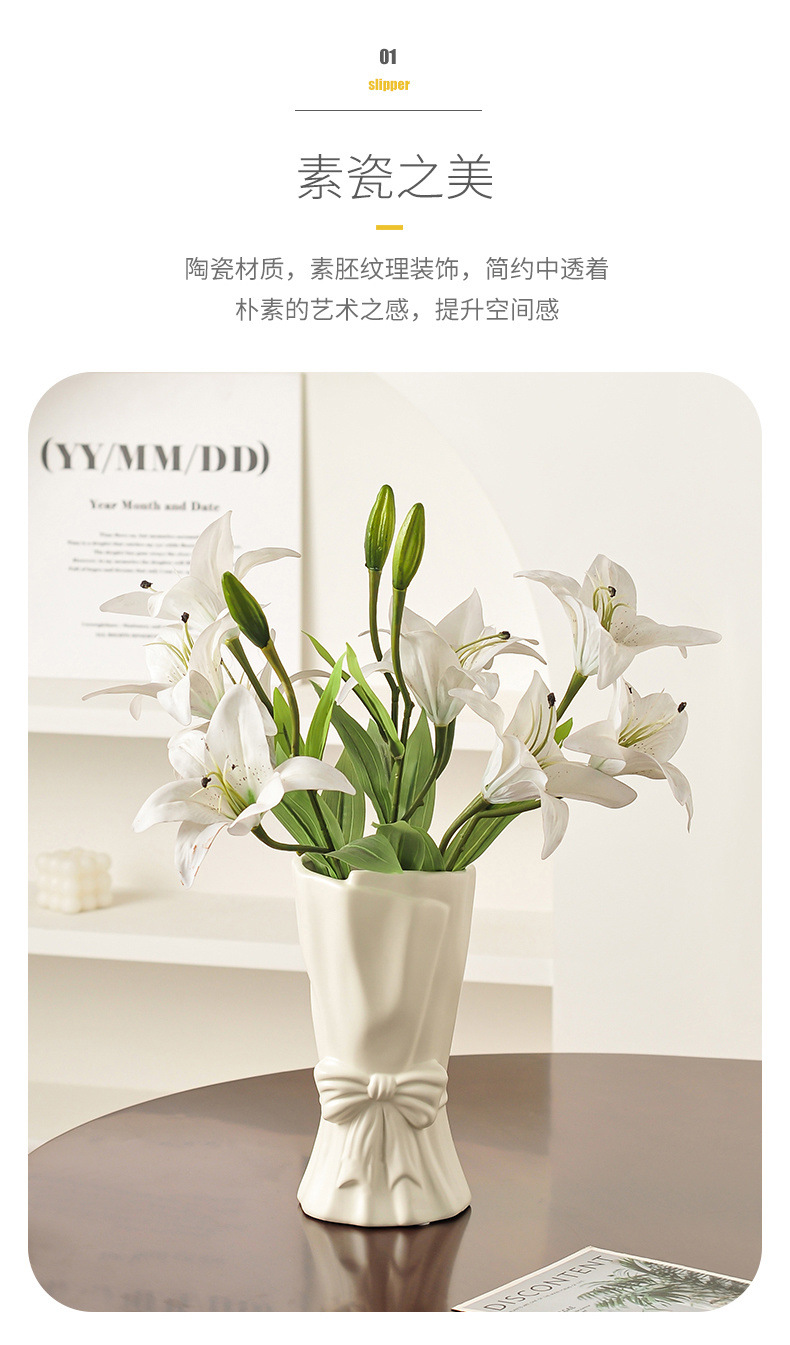 손에 들고 있는 꽃다발, 세라믹 꽃병 장식품, 현대적이고 심플한 거실 TV 캐비닛, 꽃꽂이, 식탁, 수경 백합 꽃스토어 가기