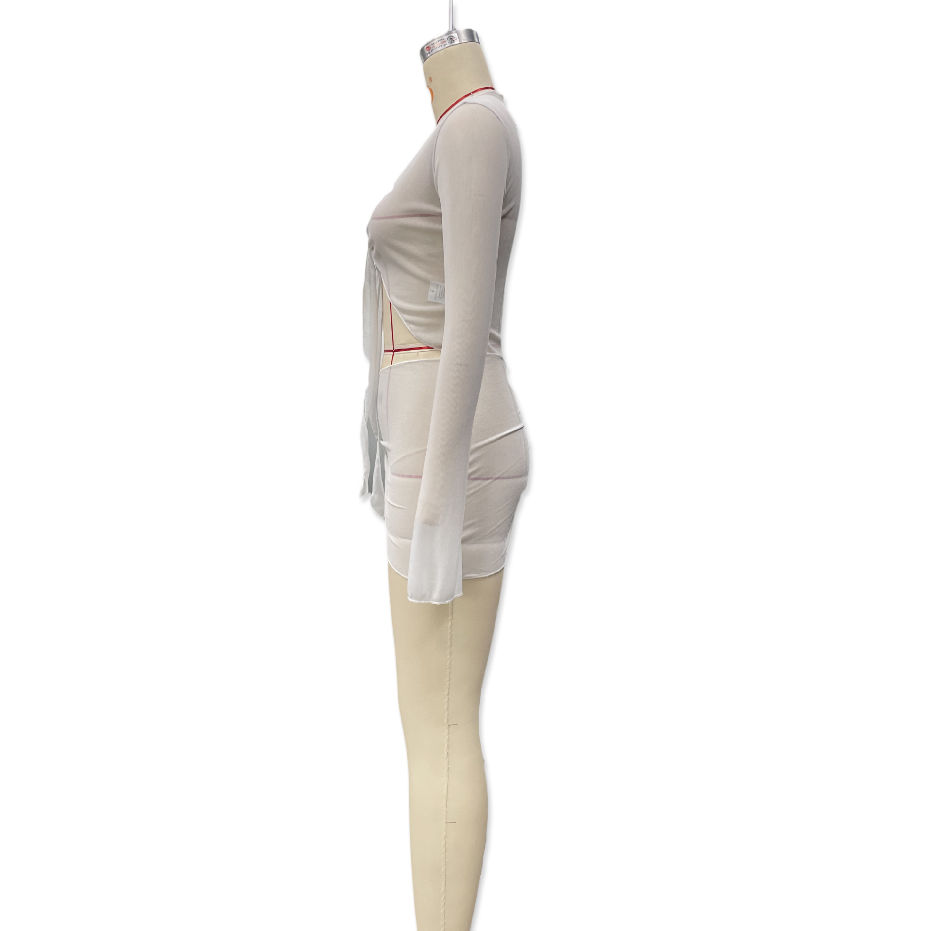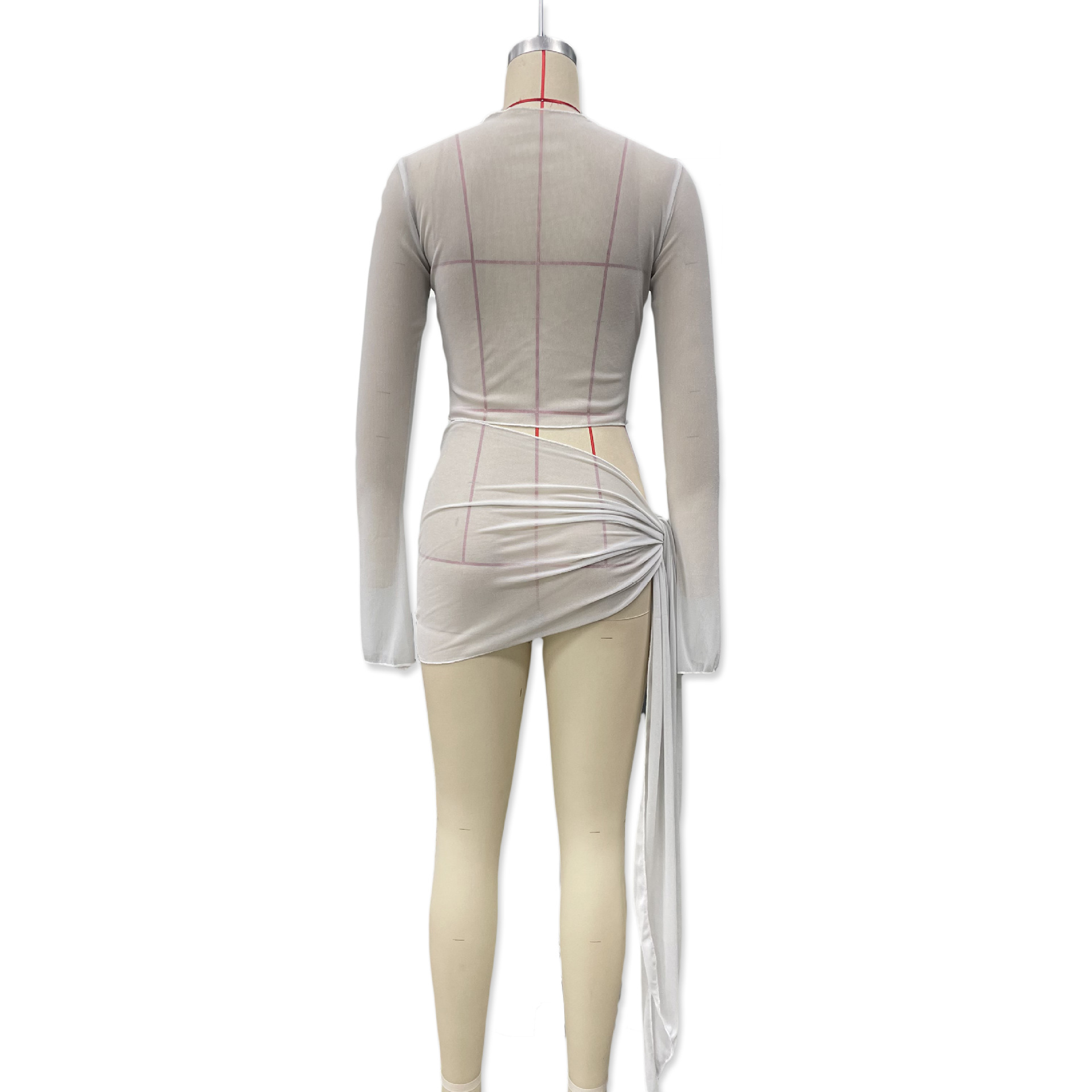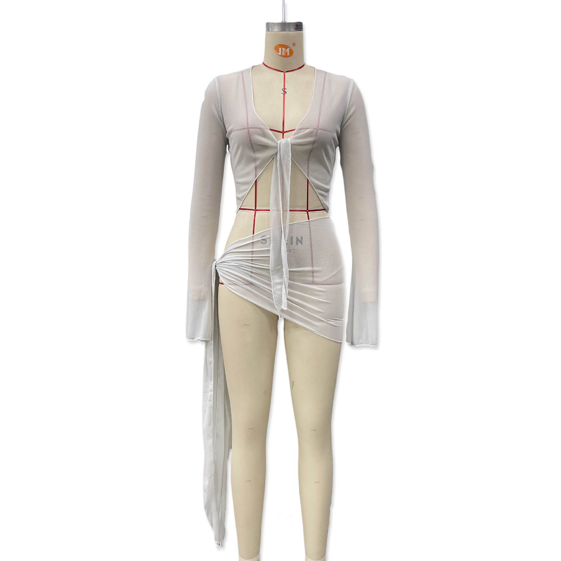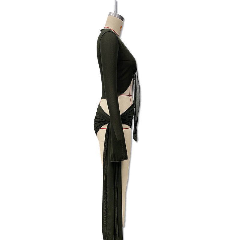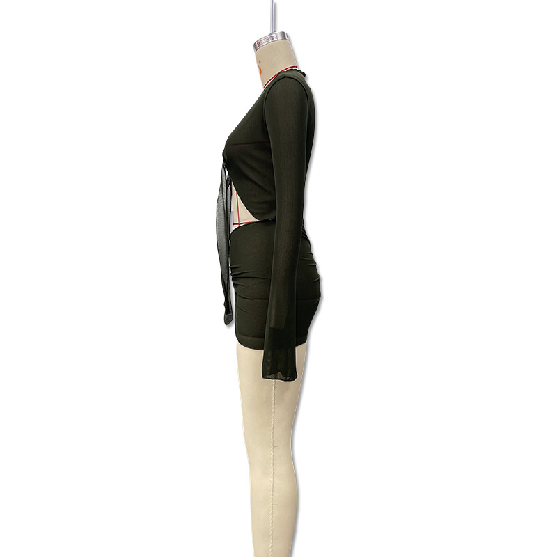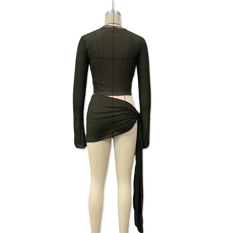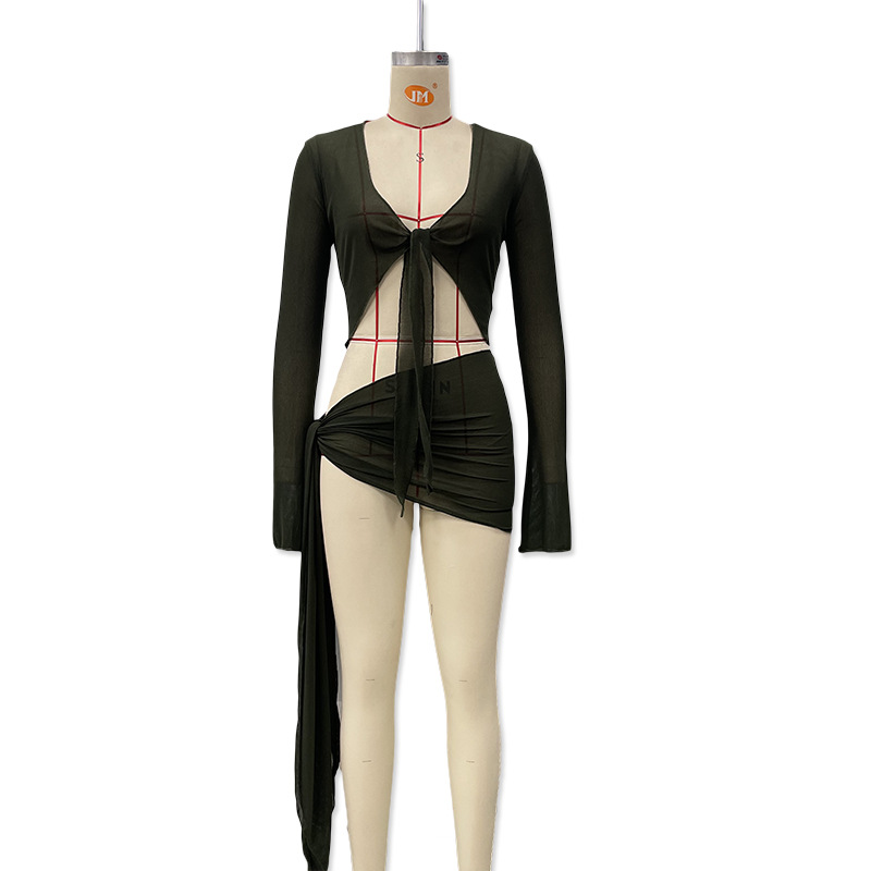 유럽과 미국 의류 2025 새로운 여름 스타일 약간 반투명 스트랩 메쉬 긴팔 가슴 탑 캐주얼 스커트 정장 도매스토어 가기