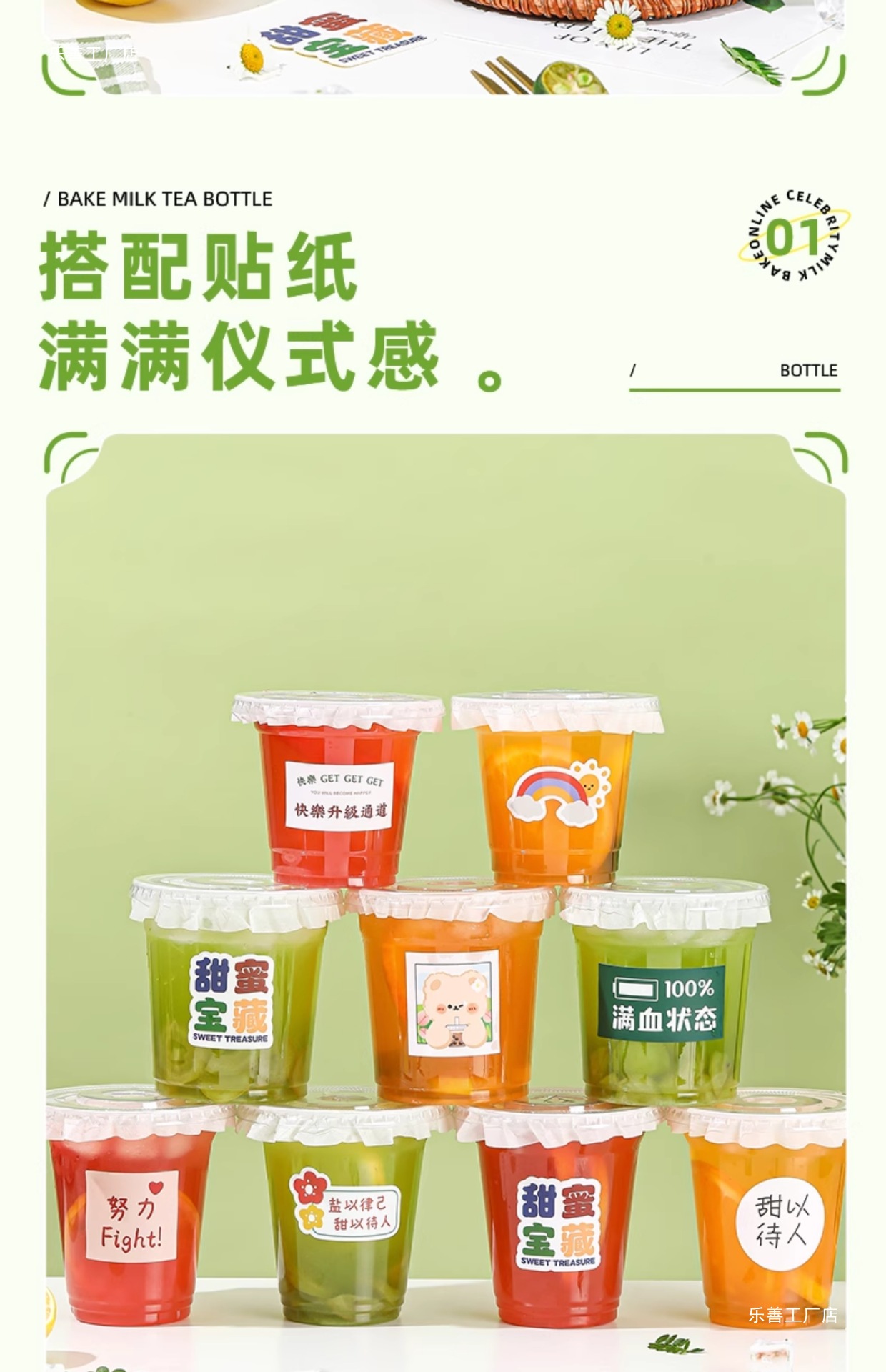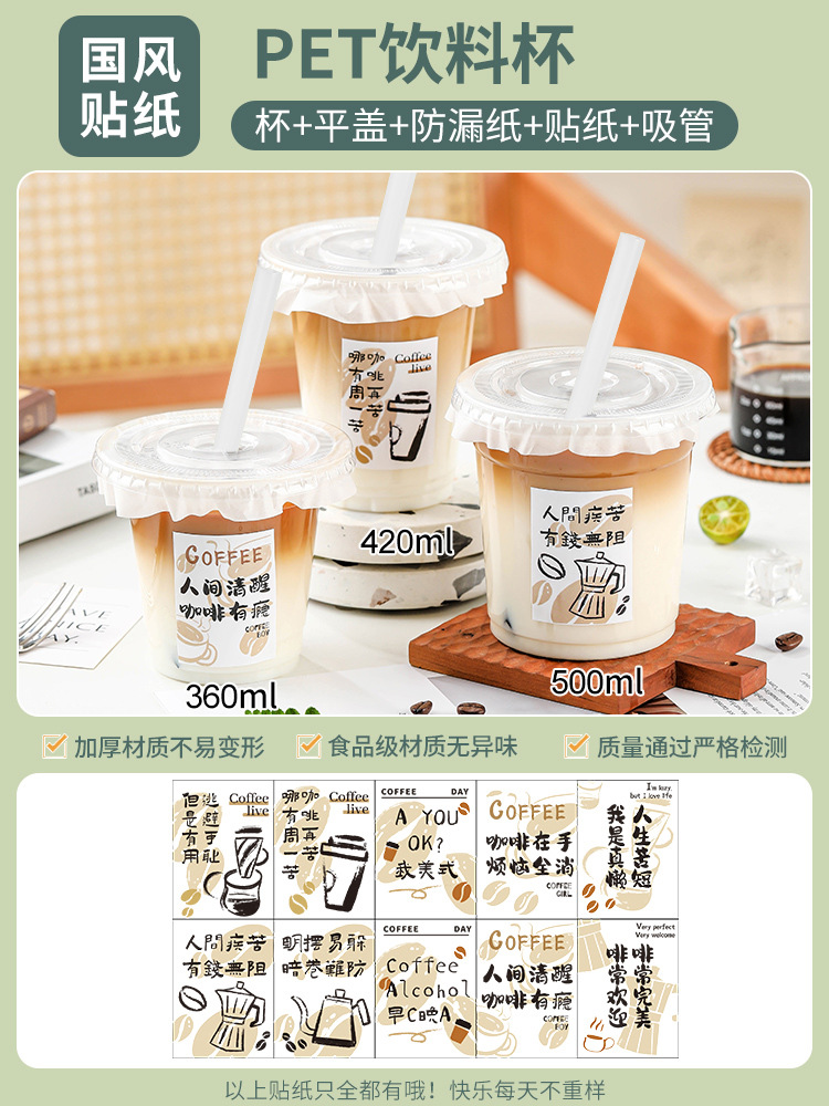• 당신이 좋아하는 스티커 컵 + 뚜껑 + 두꺼운 빨대 + 누수 방지 종이 - 50개 - 500ml