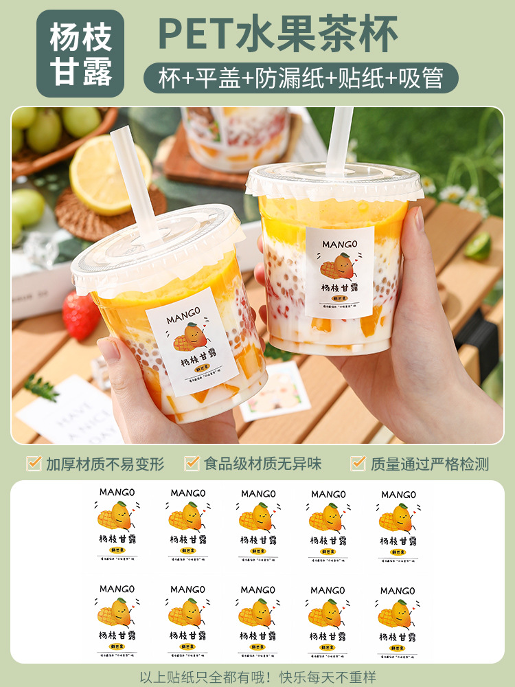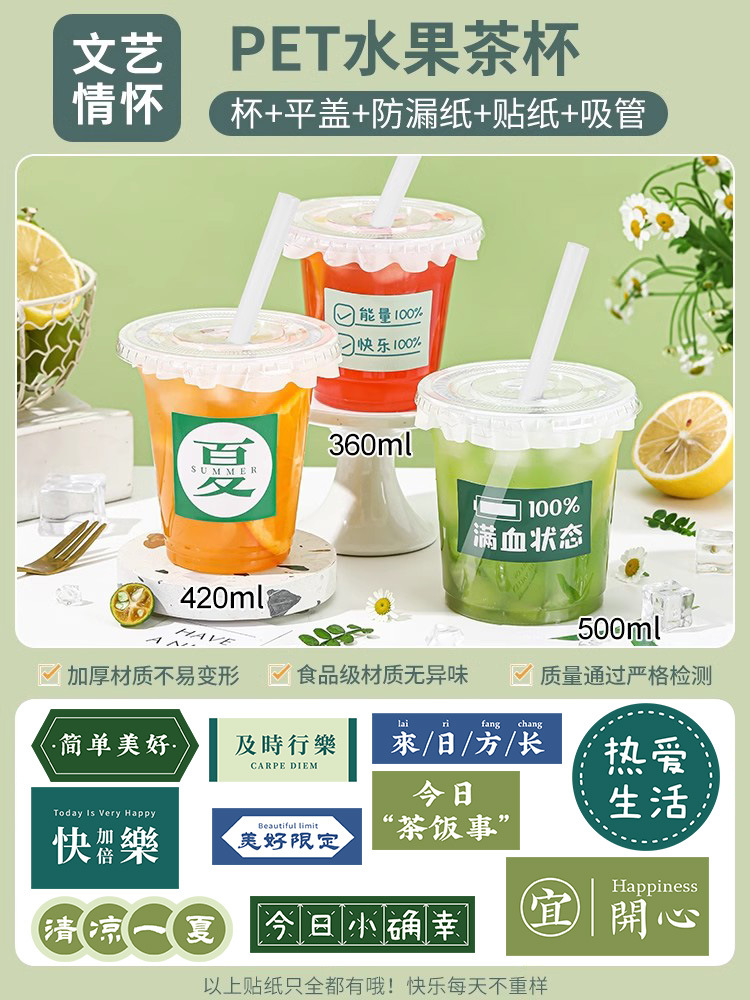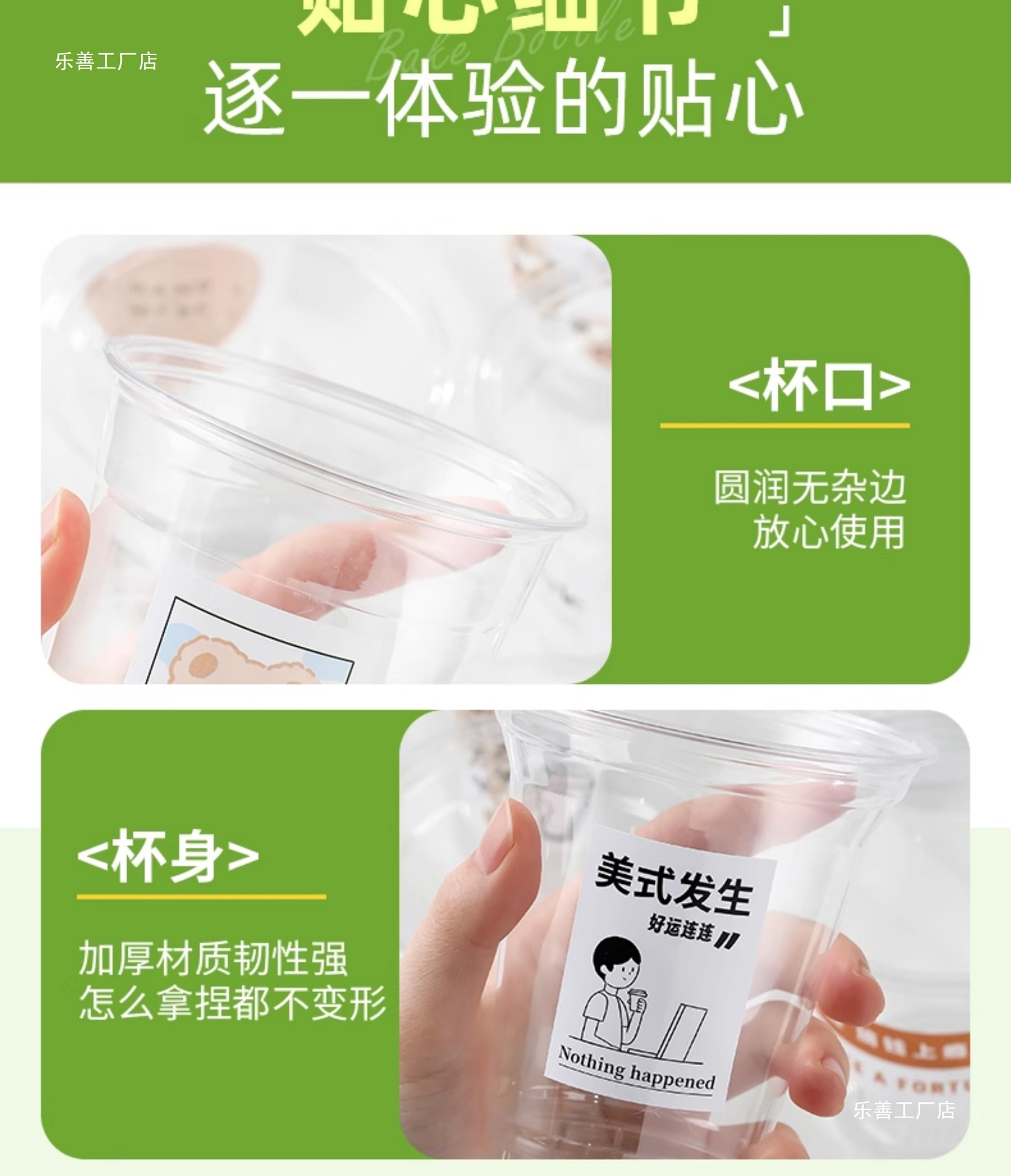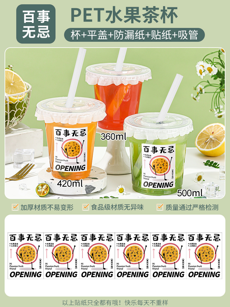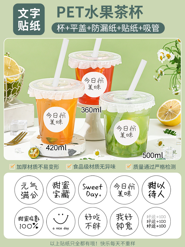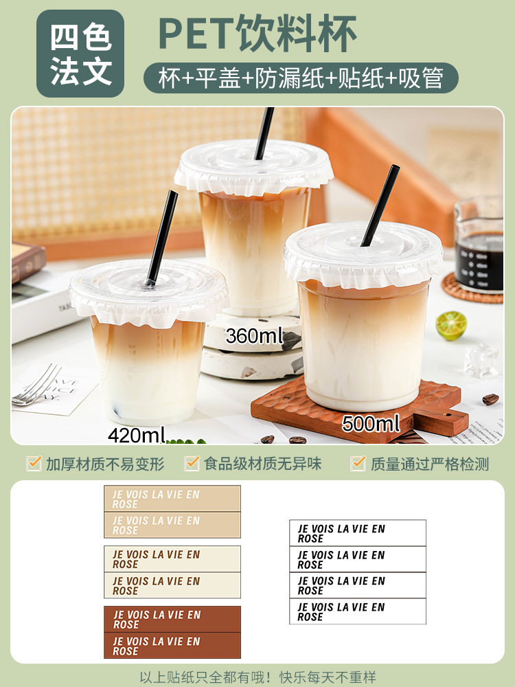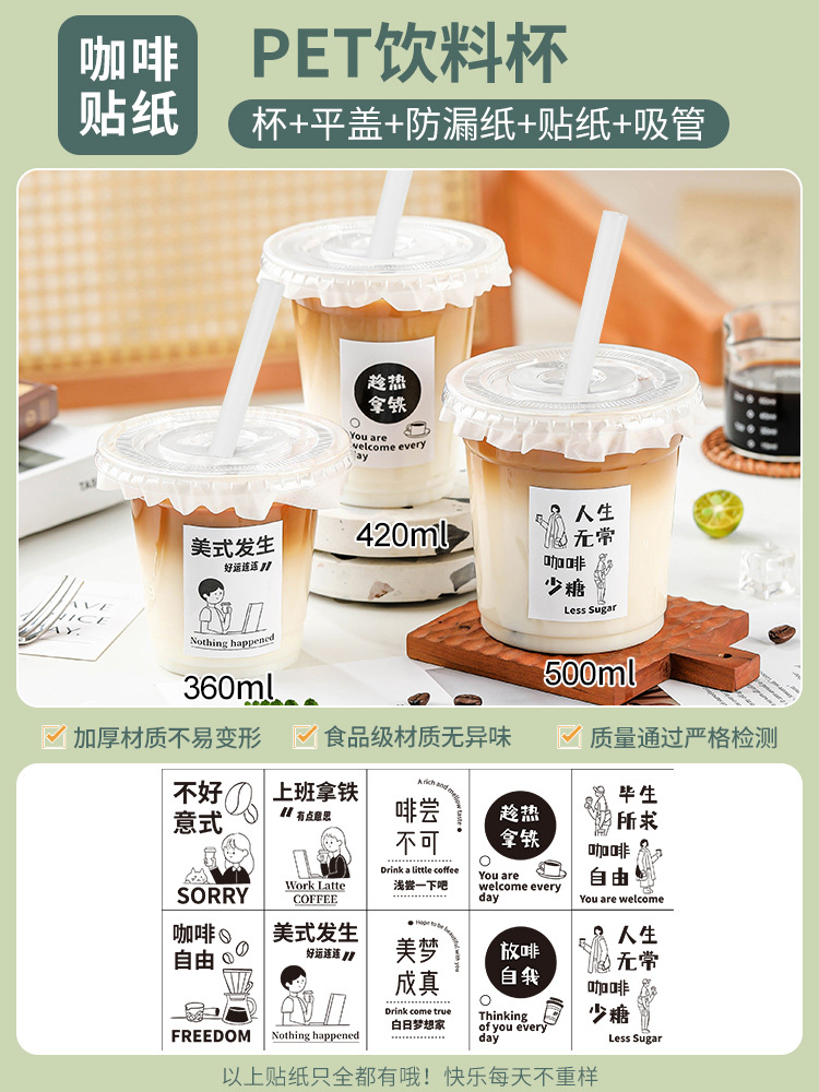 • 당신이 좋아하는 스티커 컵 + 뚜껑 + 두꺼운 빨대 + 누수 방지 종이 - 50개 - 420ml