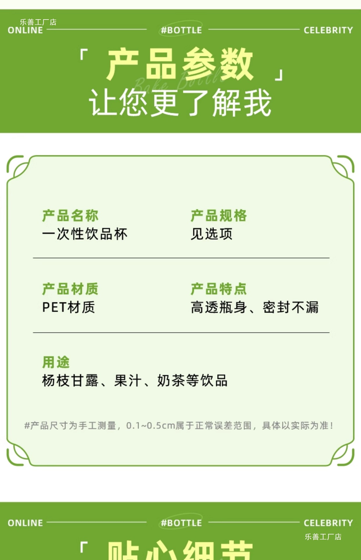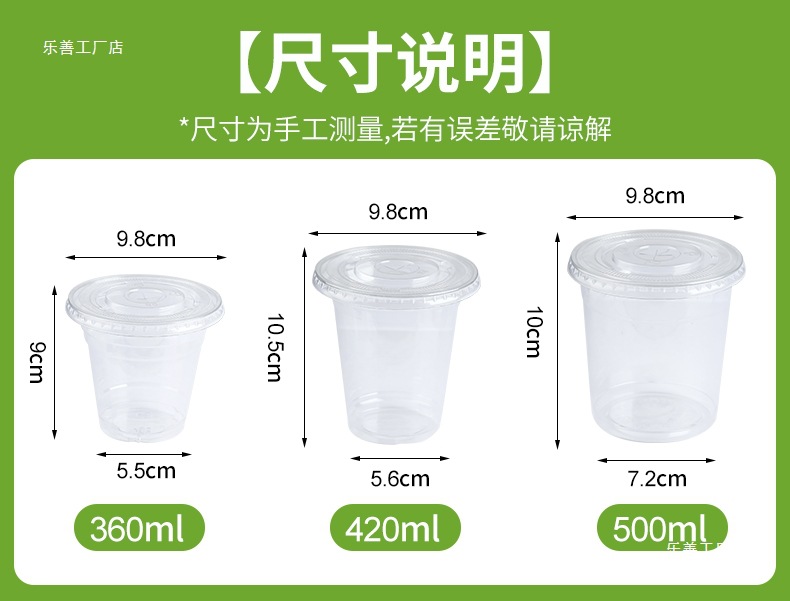 Leshan 500 밀크 티 컵 일회용 뚜껑이있는 수제 커피 음료 차가운 음료 컵 상업용 포장 플라스틱스토어 가기