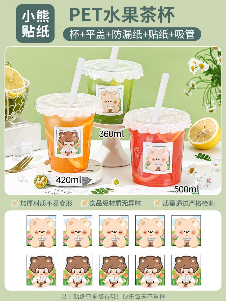 • 곰스티커컵+뚜껑+두꺼운 빨대+누수방지지-50개-420ml