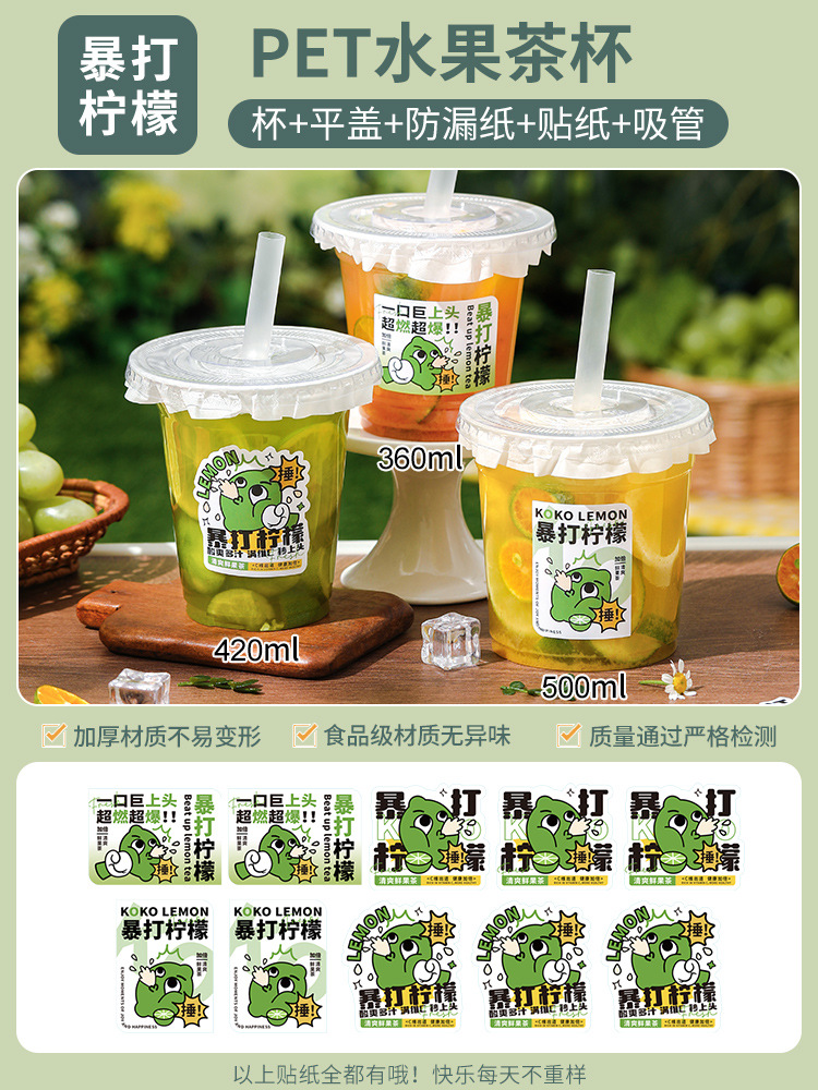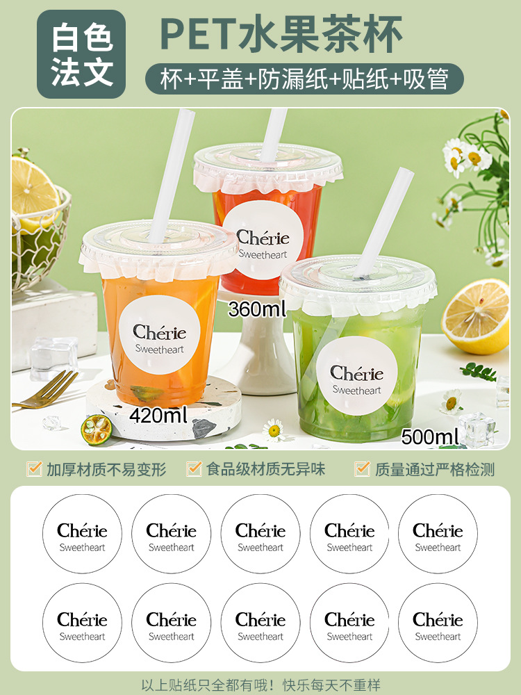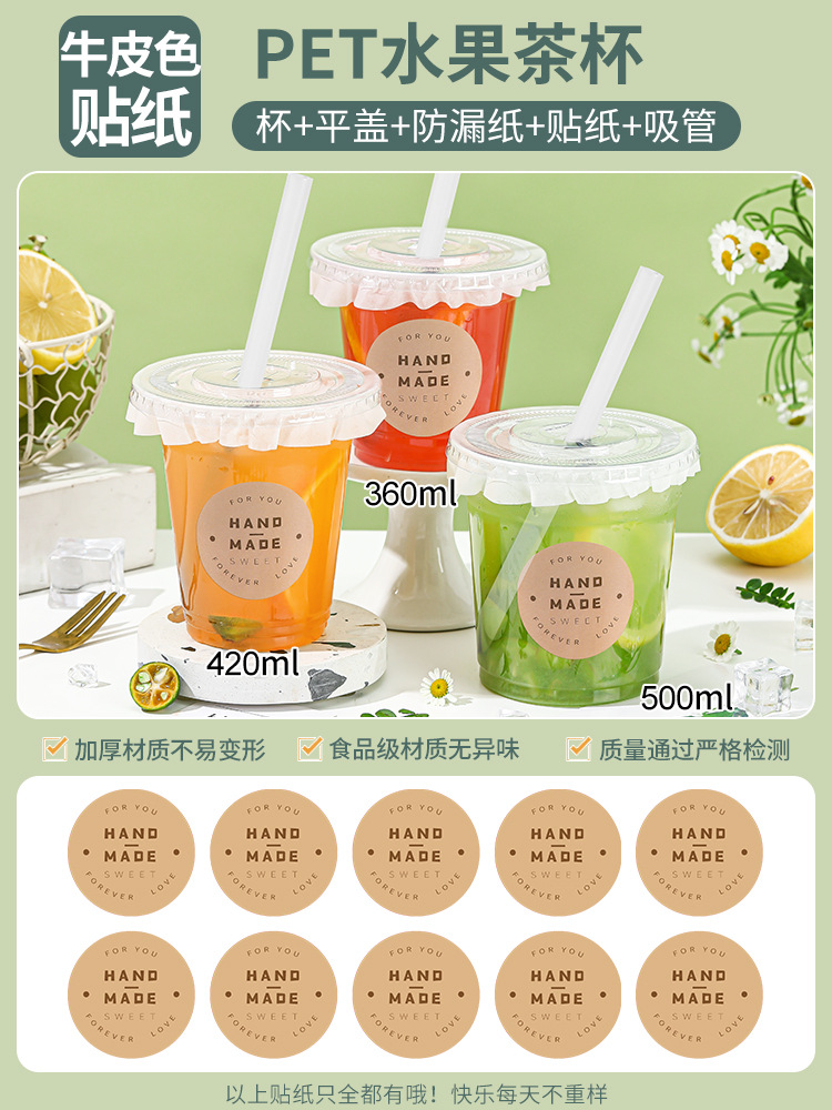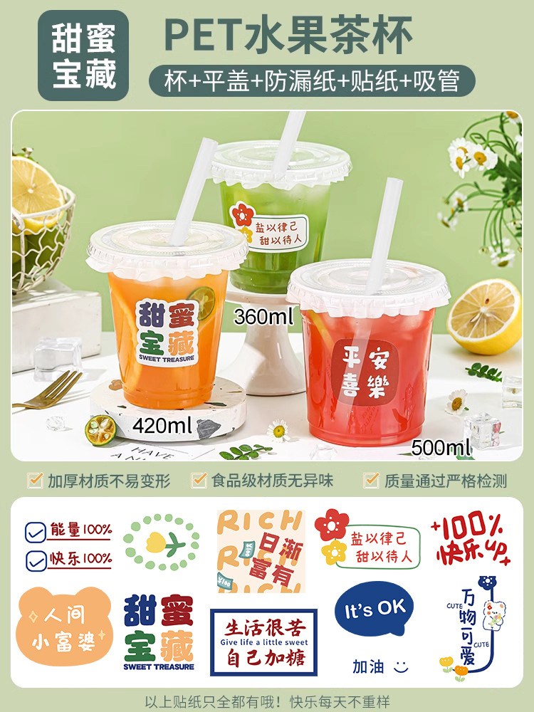 • 당신이 좋아하는 스티커 컵 + 뚜껑 + 두꺼운 빨대 + 누수 방지 종이 - 100개 - 420ml
