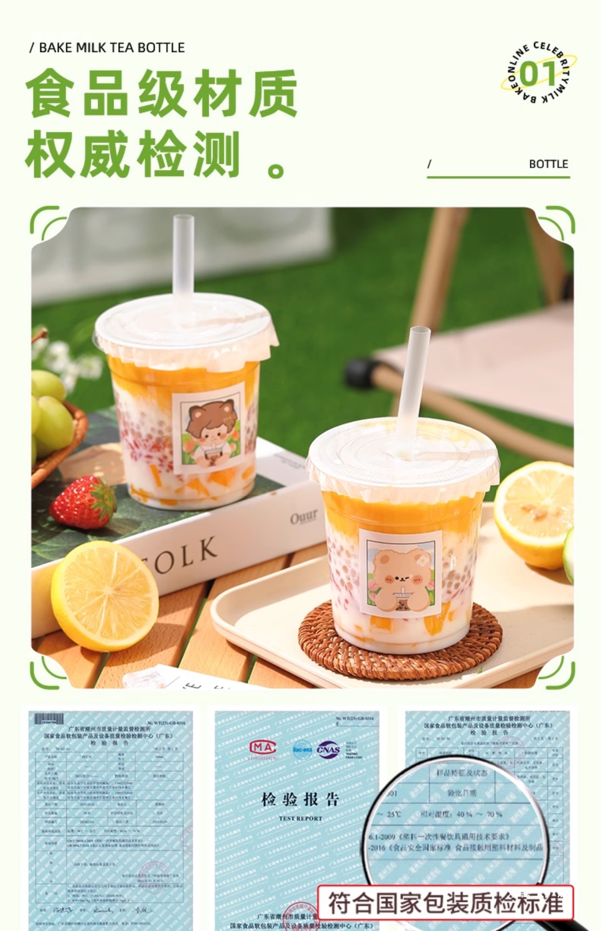 • 당신이 좋아하는 스티커 컵 + 뚜껑 + 두꺼운 빨대 + 누수 방지 종이 - 100개 - 500ml