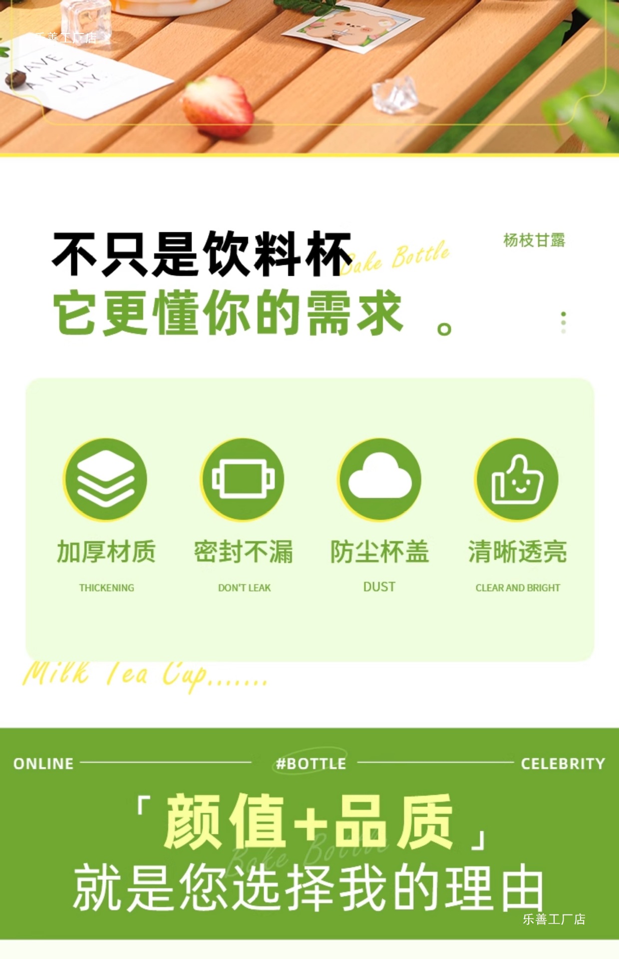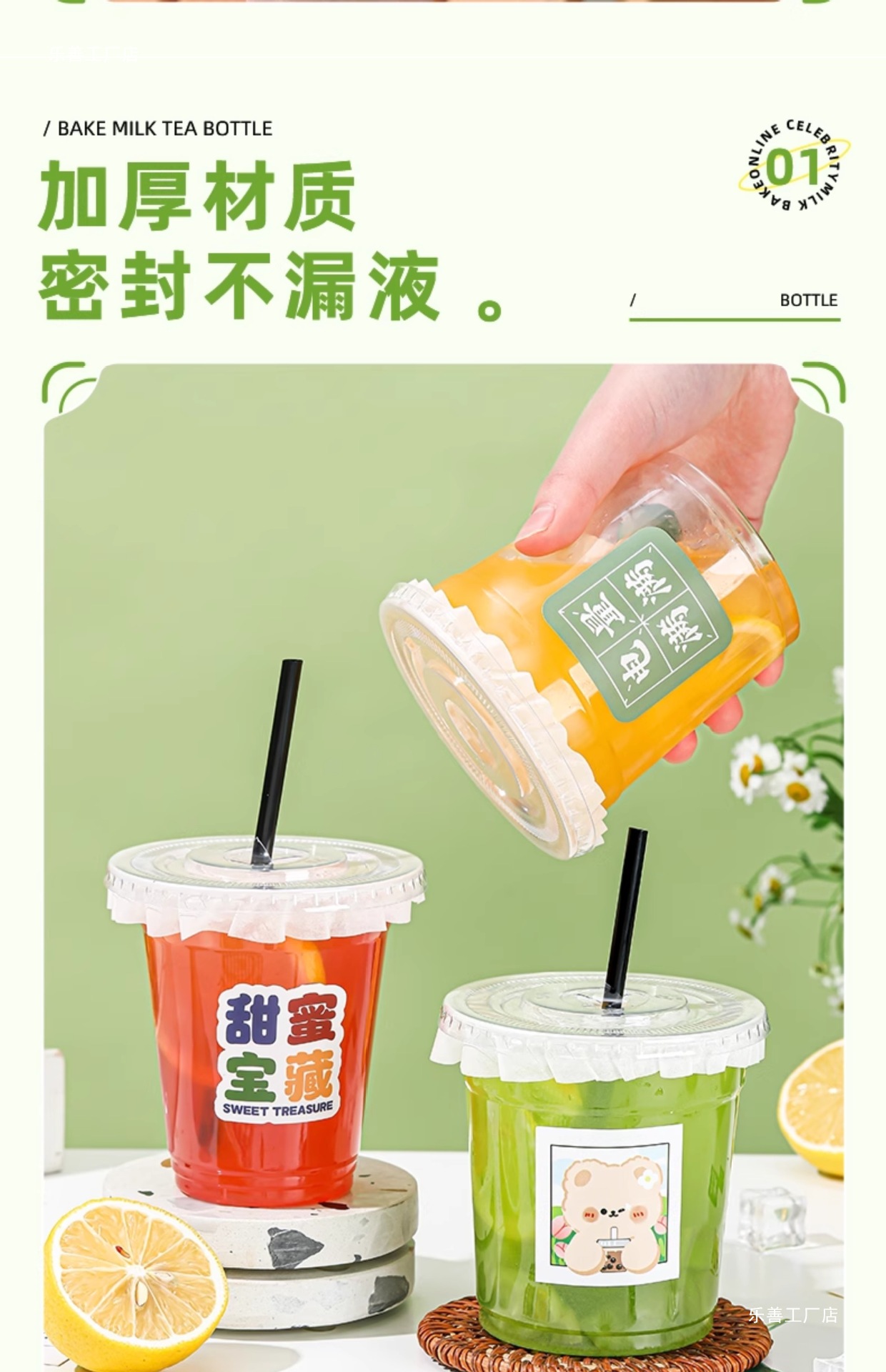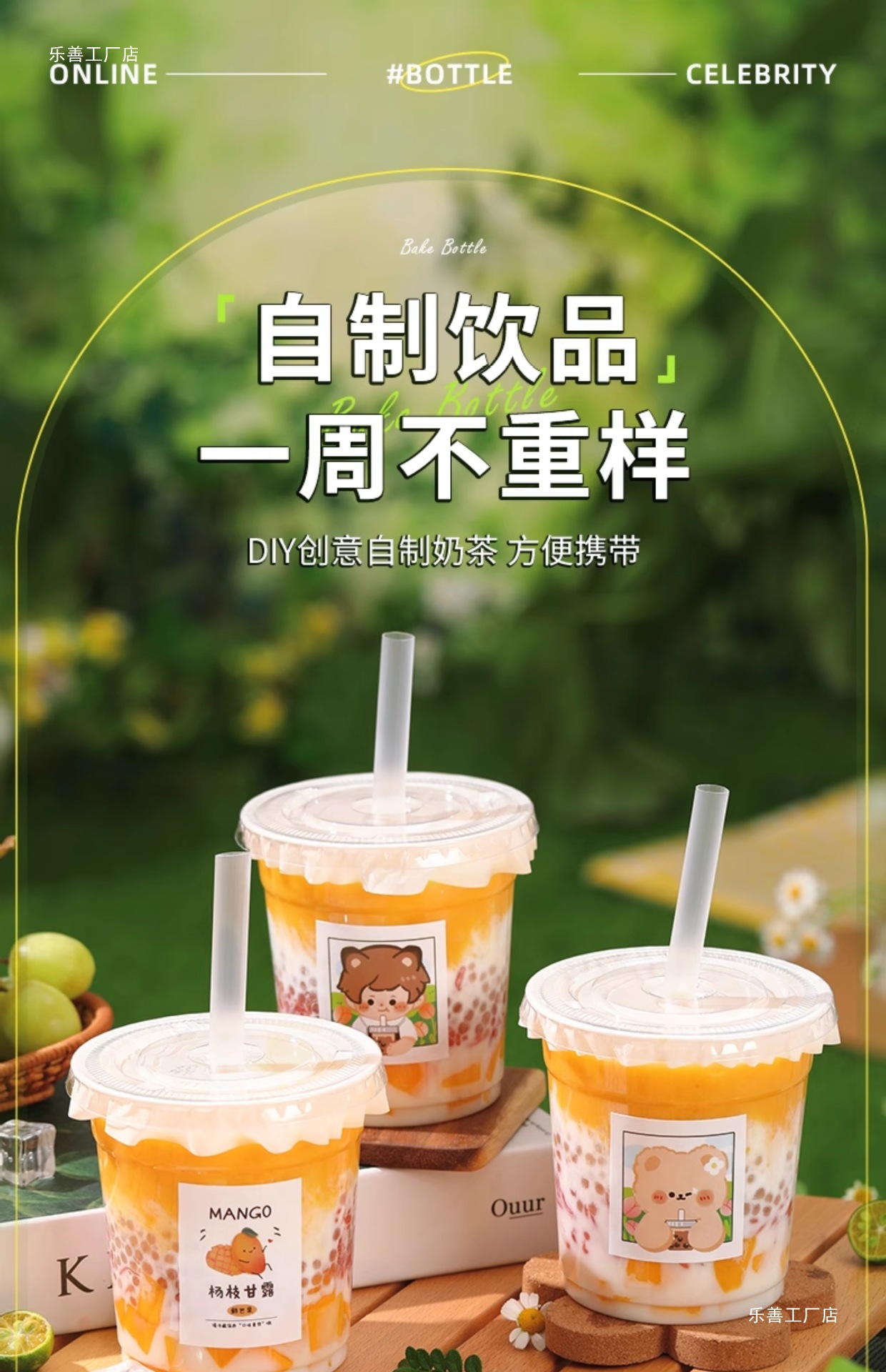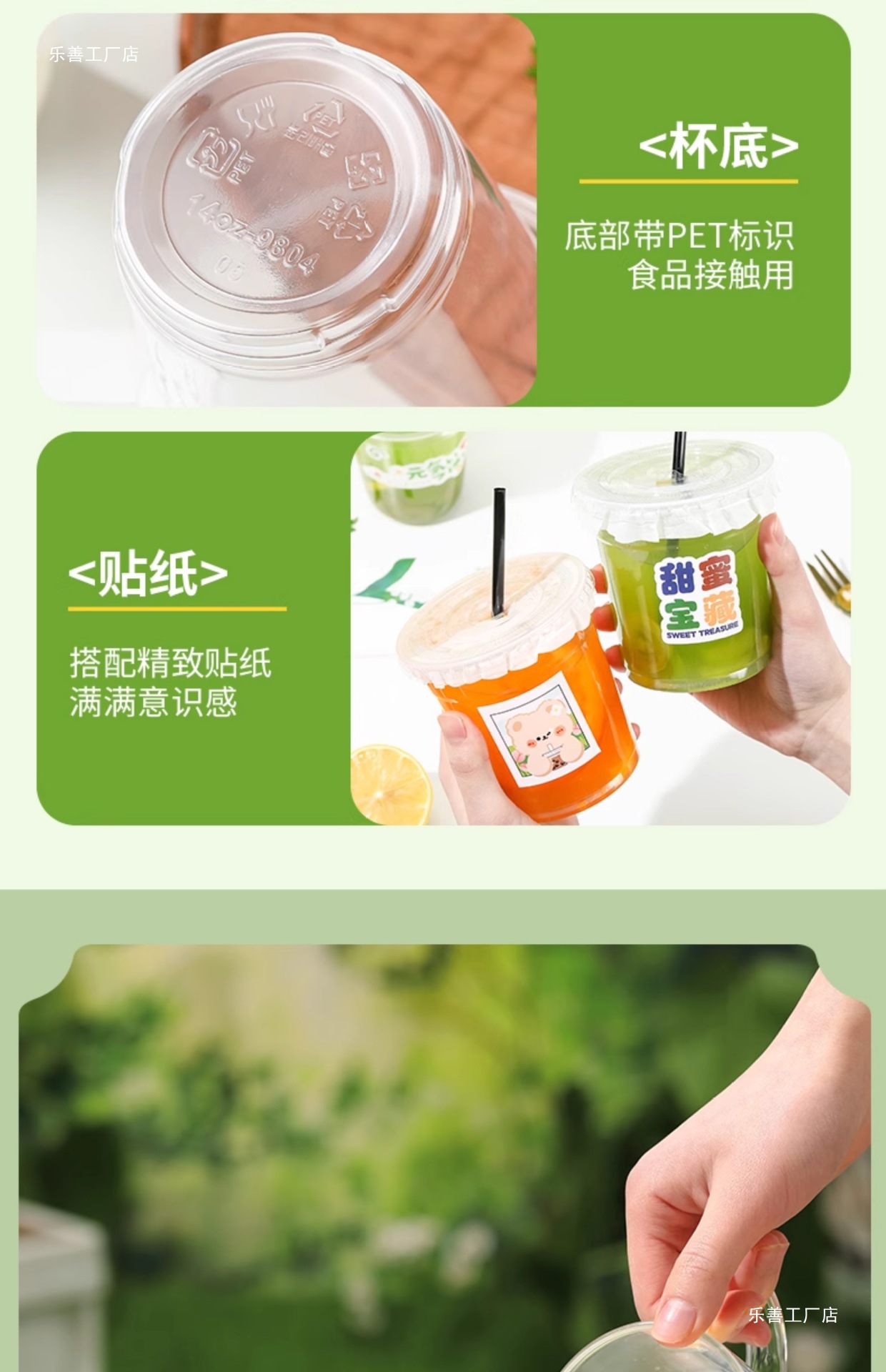 Leshan 500 밀크 티 컵 일회용 뚜껑이있는 수제 커피 음료 차가운 음료 컵 상업용 포장 플라스틱